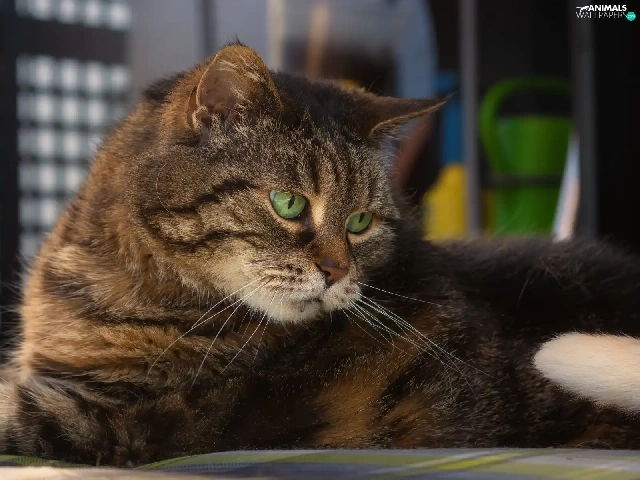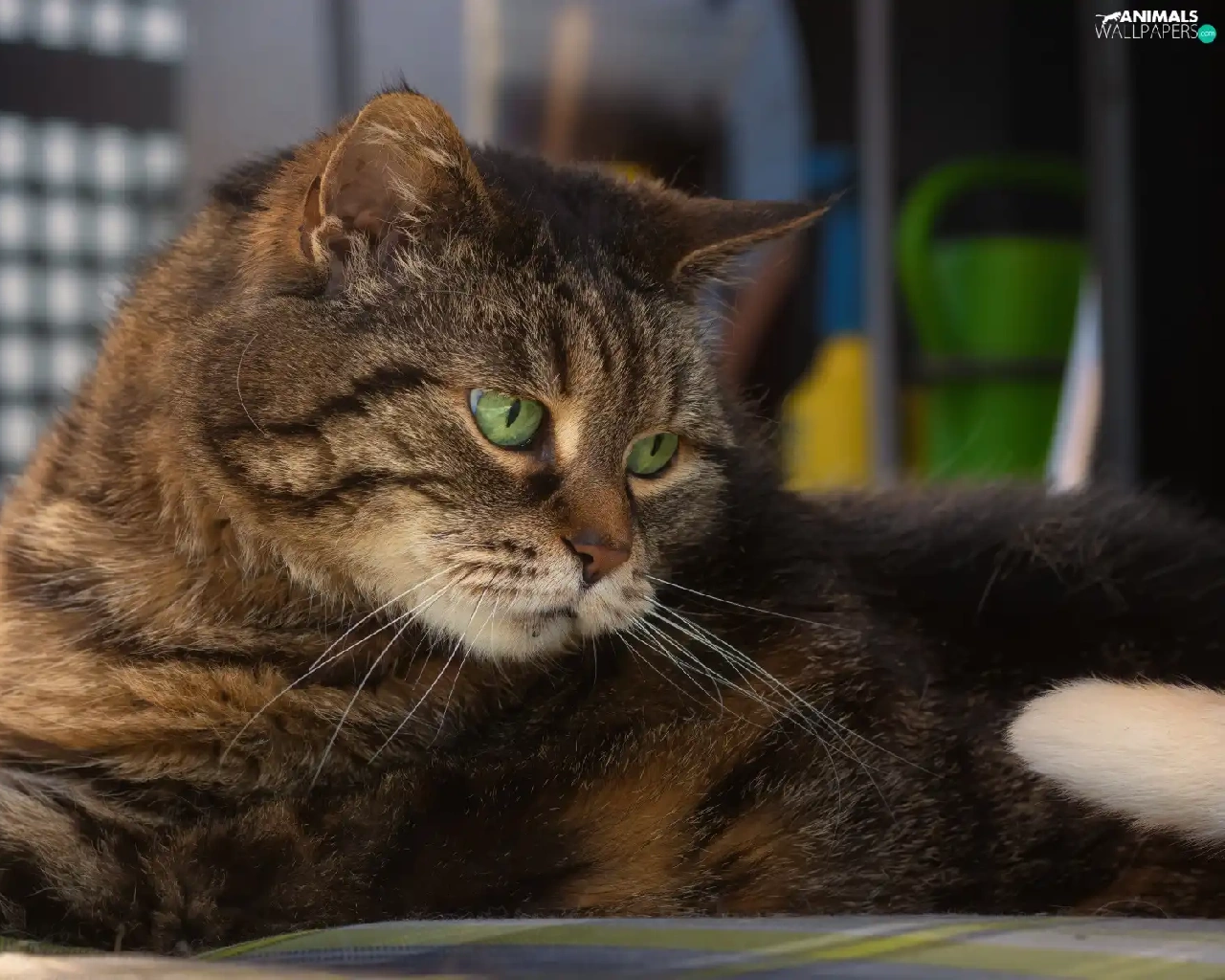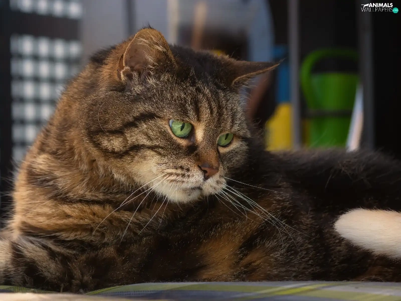 lying, cat, The look, dun