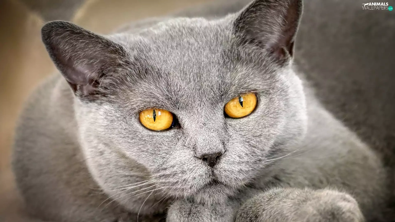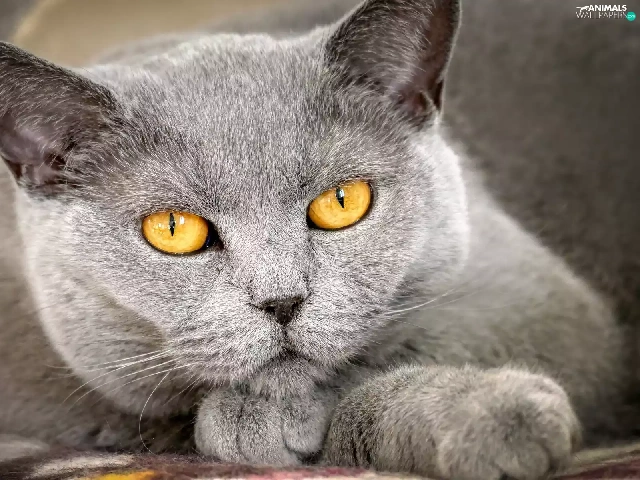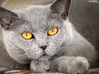 Eyes, rapprochement, The look, Yellow, British Shorthair Cat