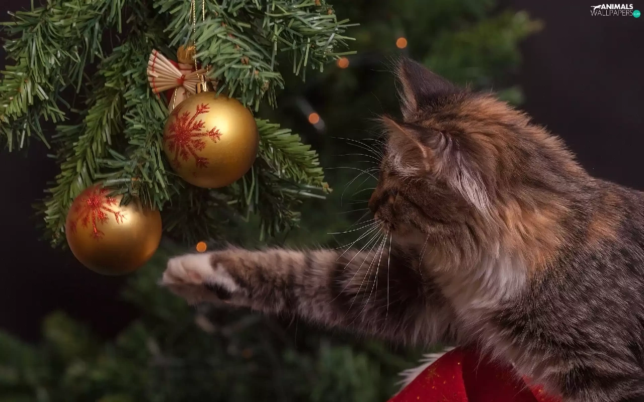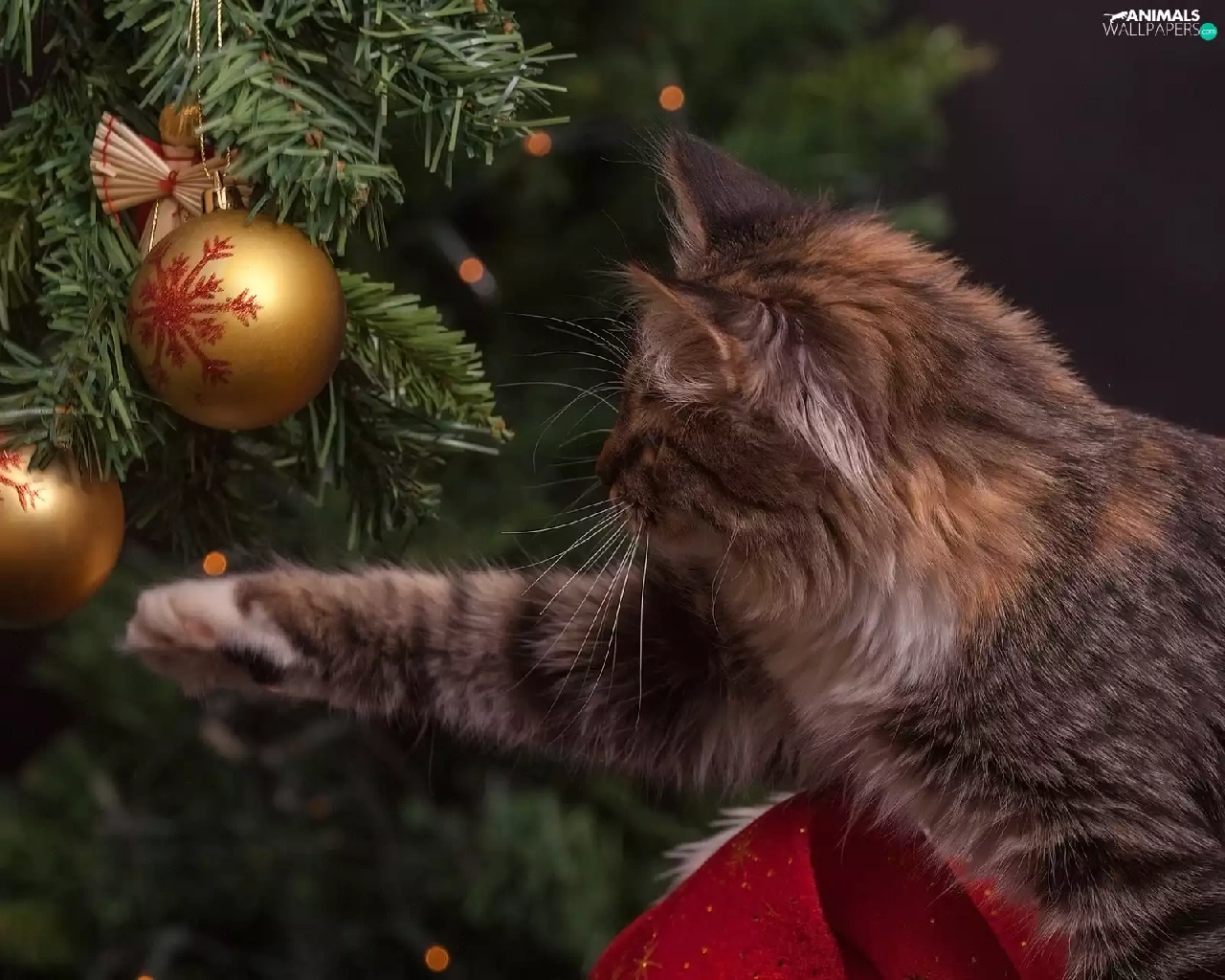 cat, christmas tree