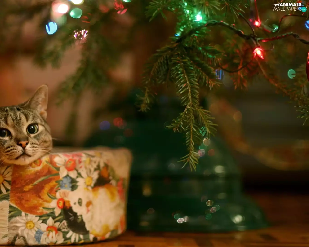 under, Christmas Tree, ##, gift, cat