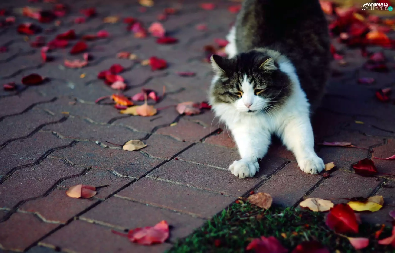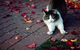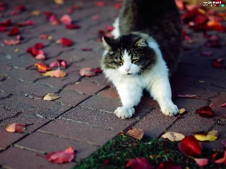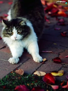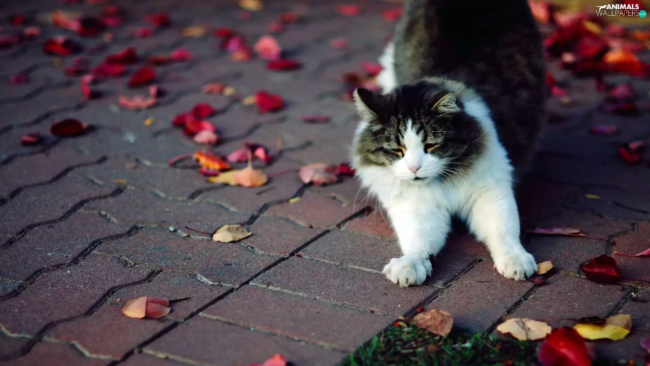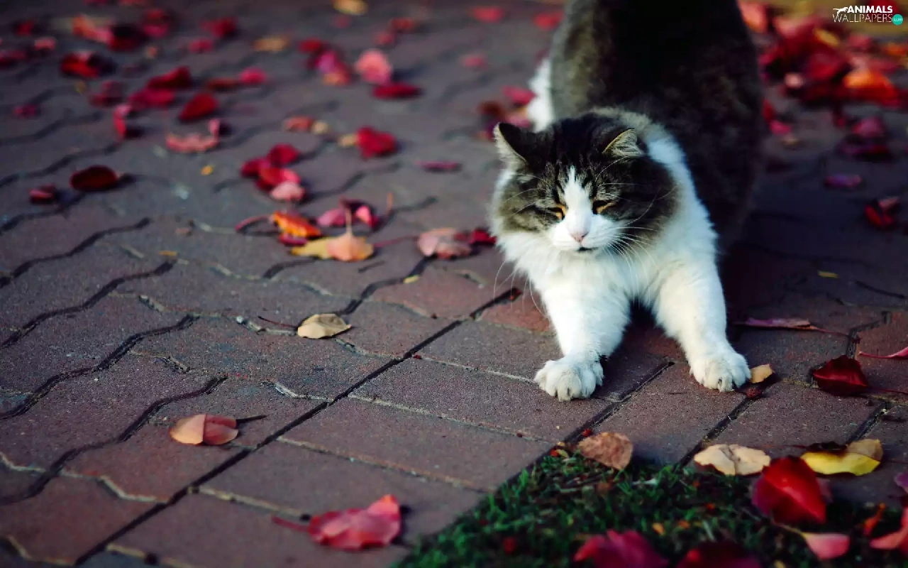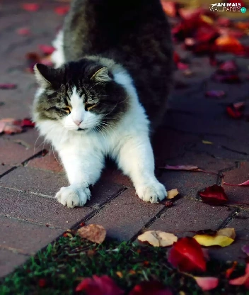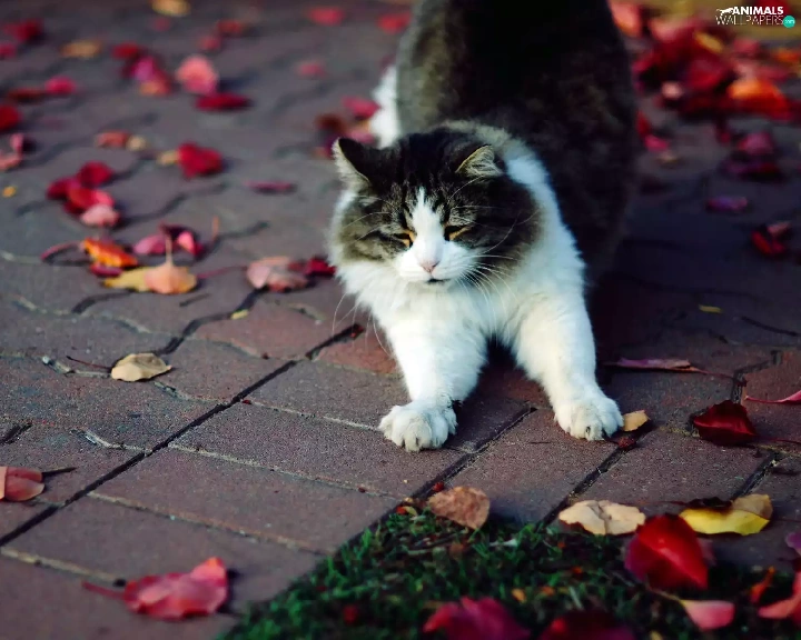 walking, Autumn, Leaf, cat