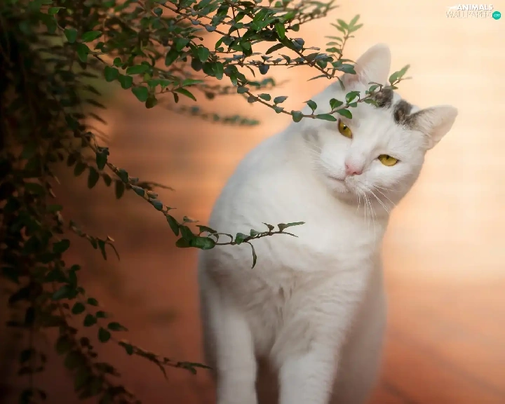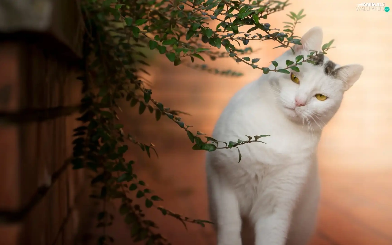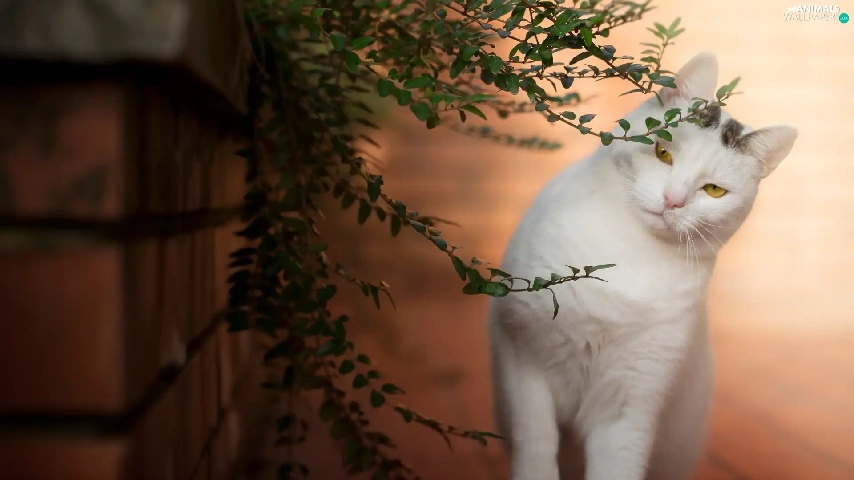 White, ledge, Twigs, cat