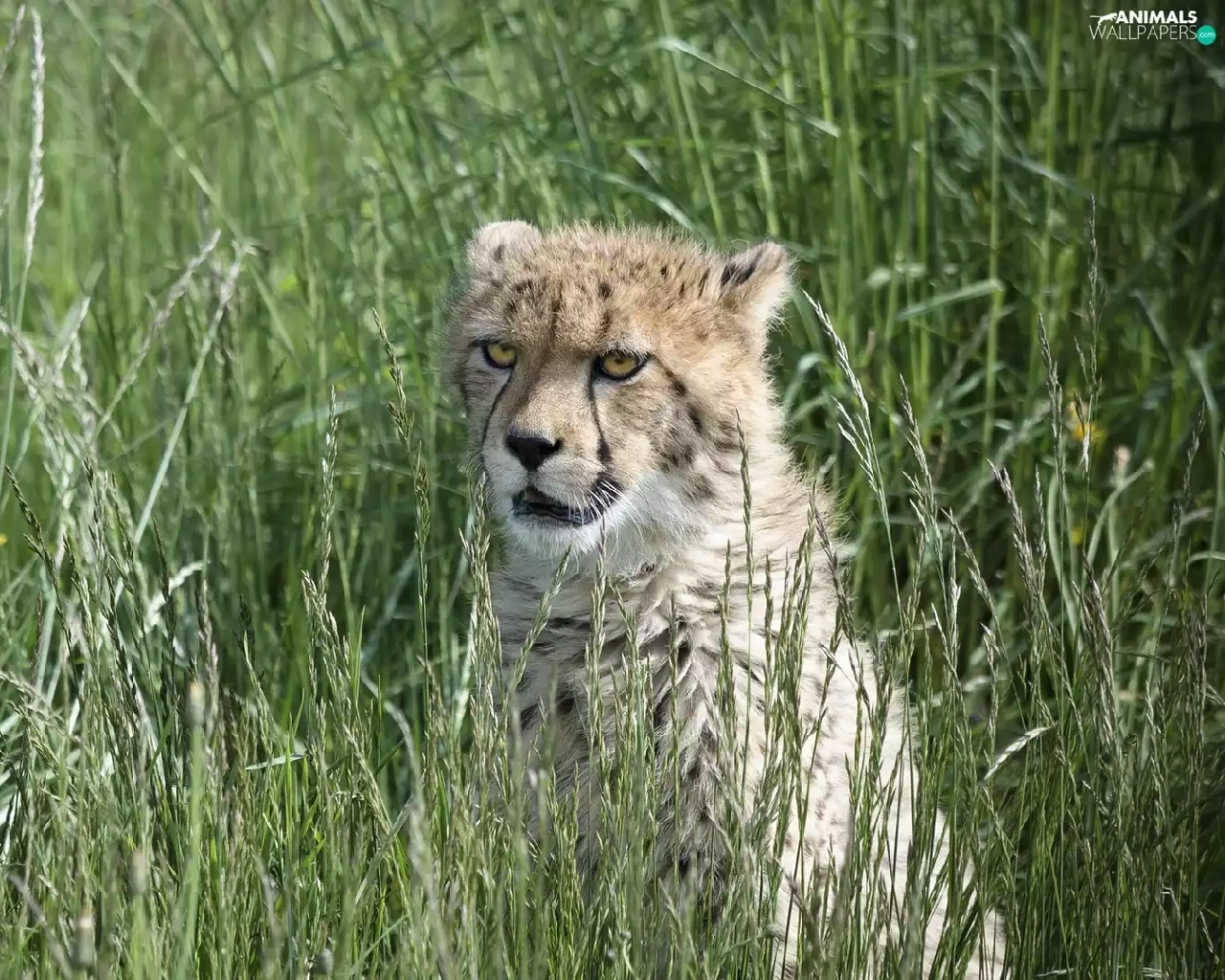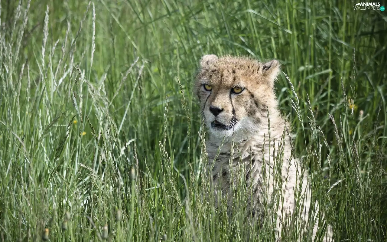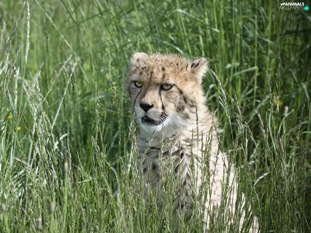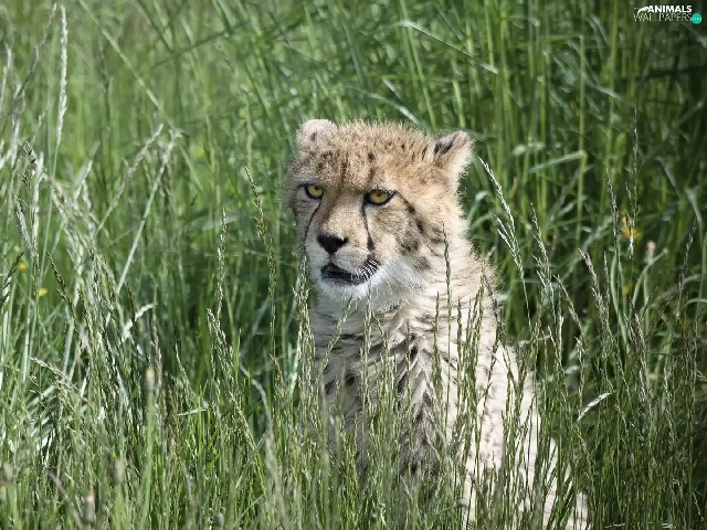 wild, Cheetah, grass, cat