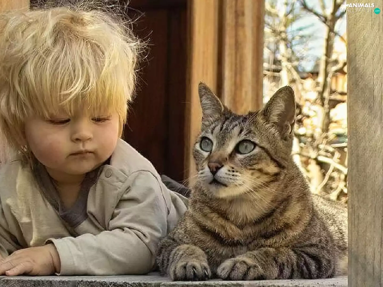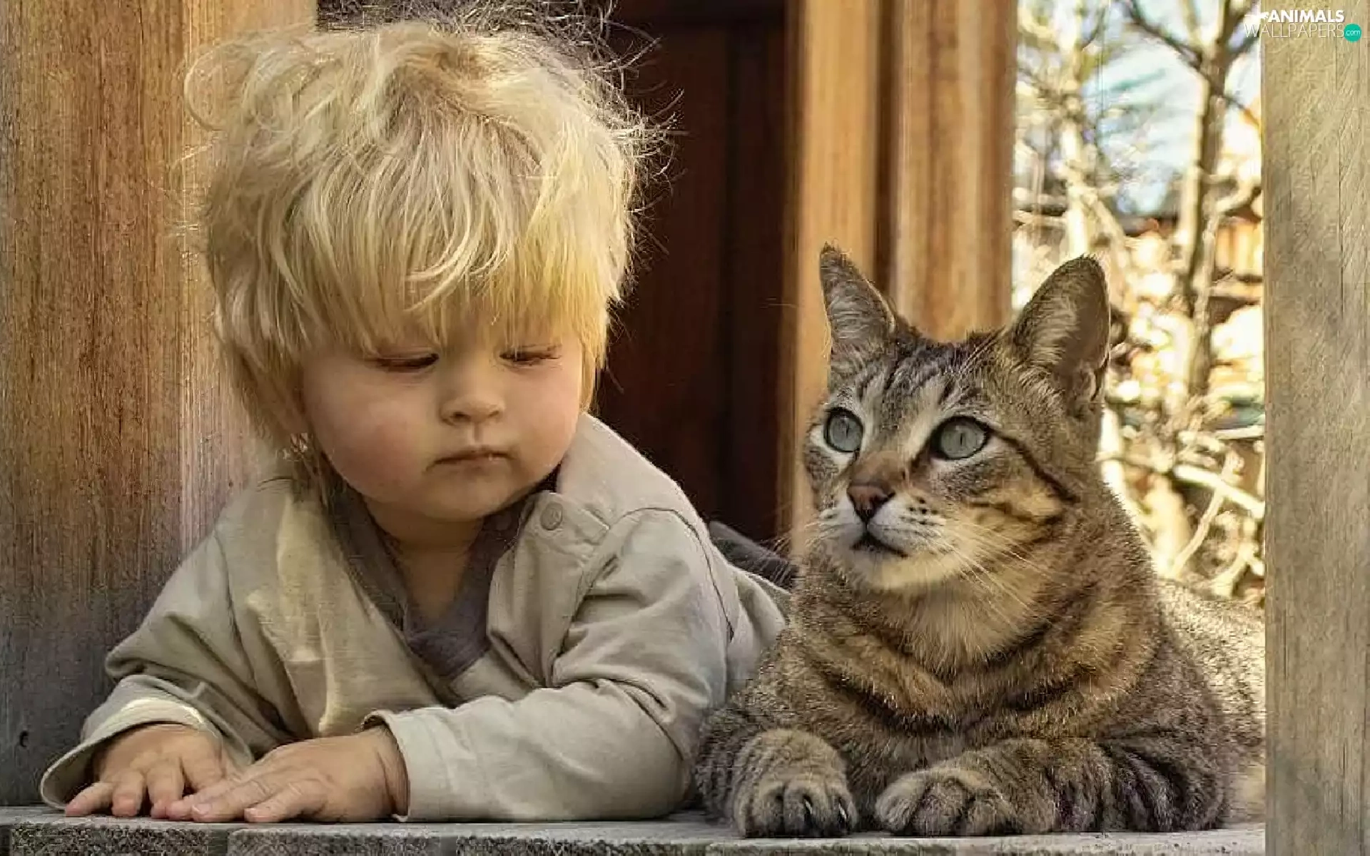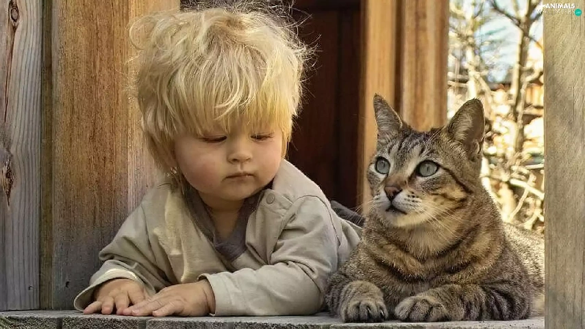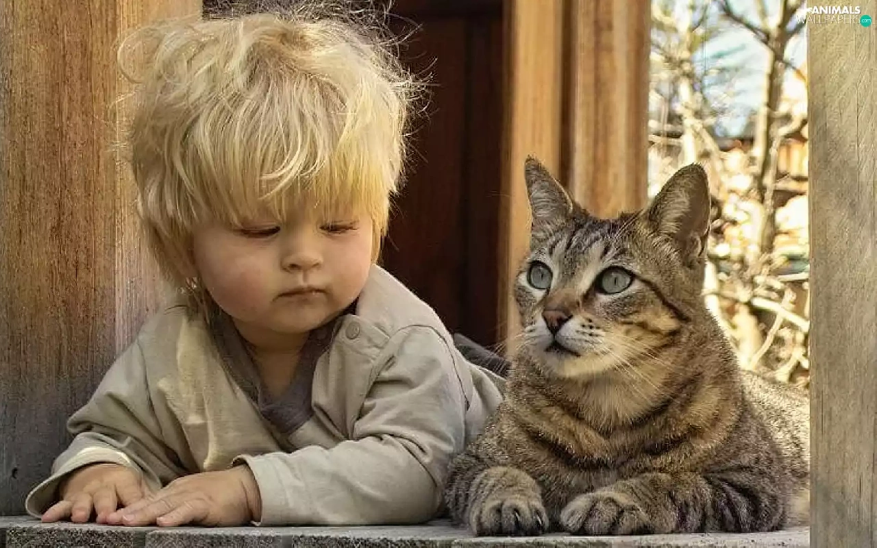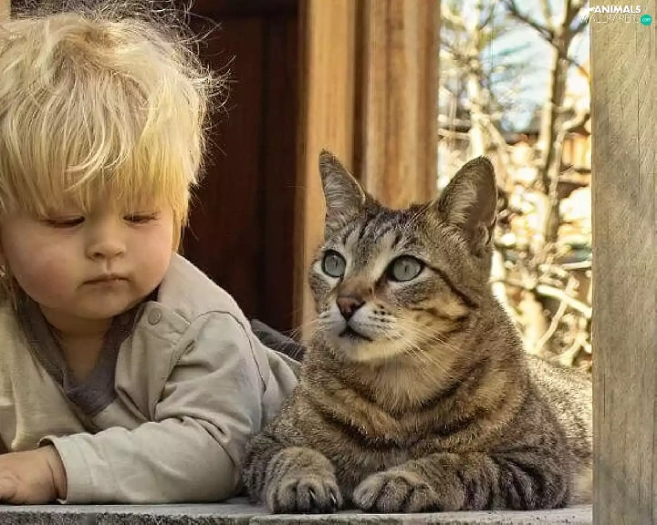 cat, Kid, Window