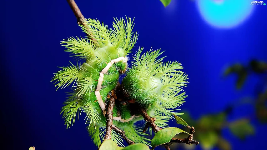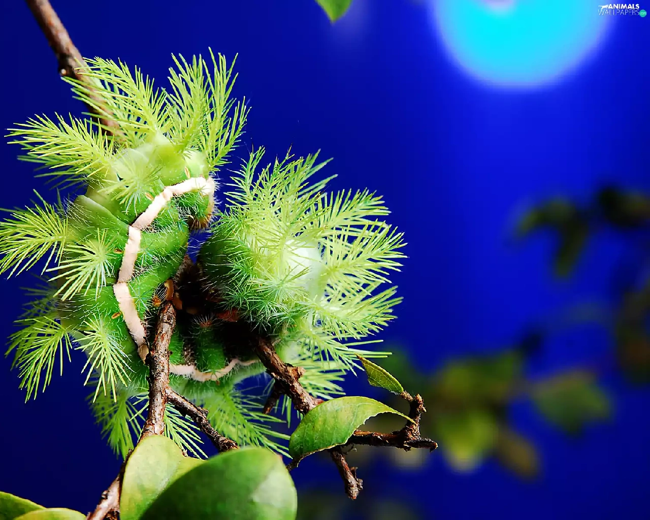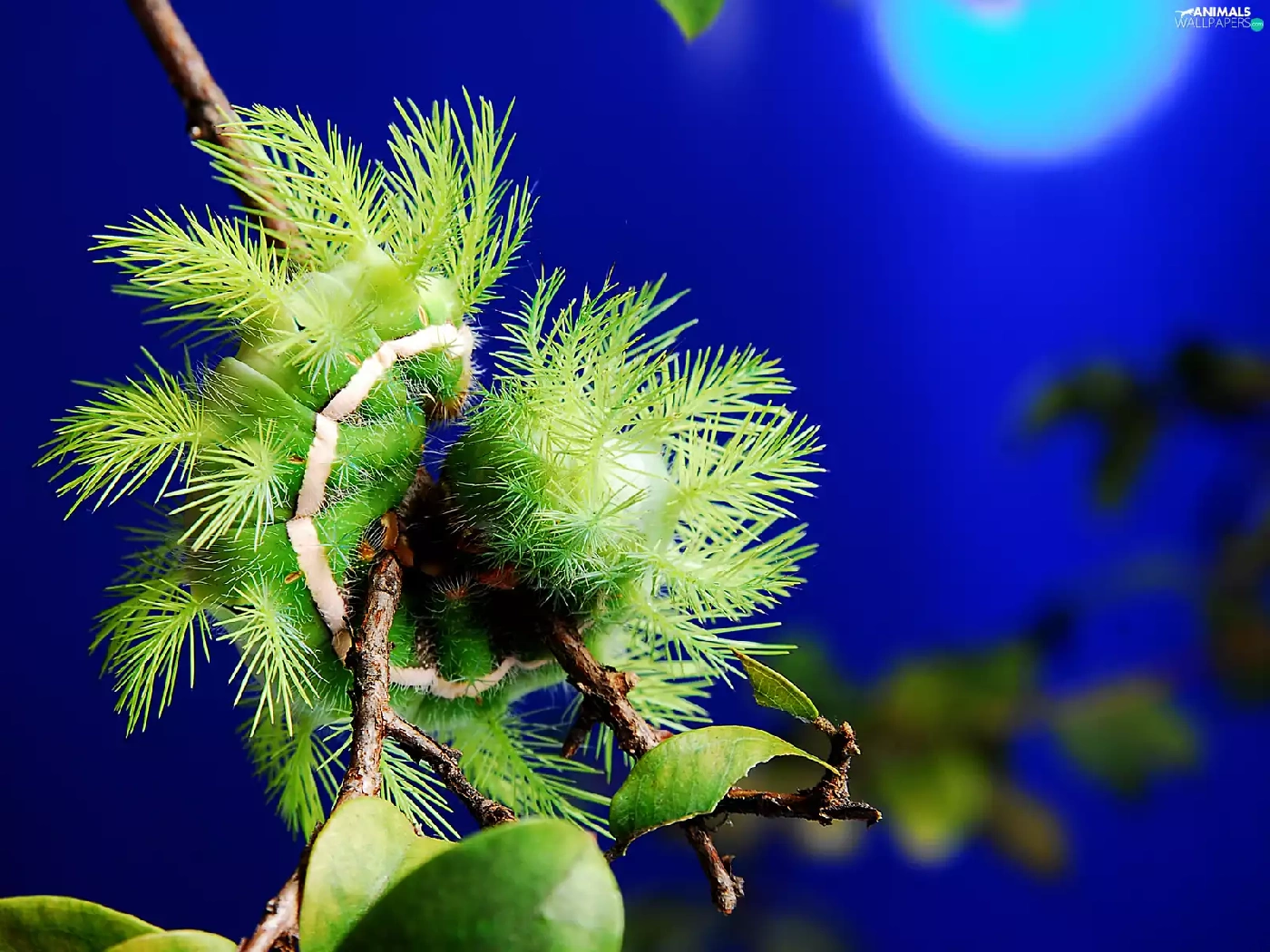 Green, Leaf, twig, caterpillar