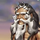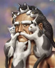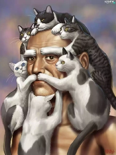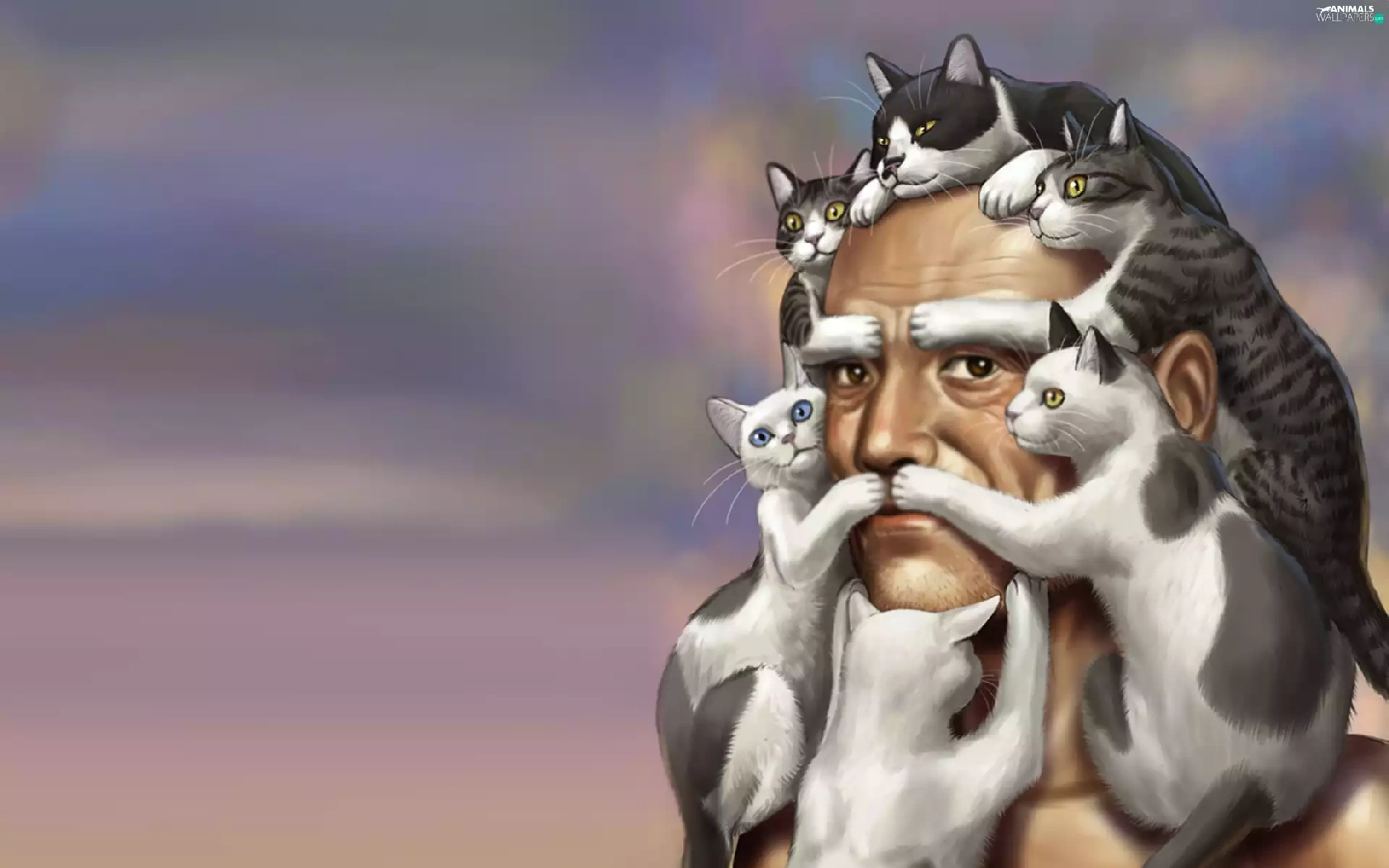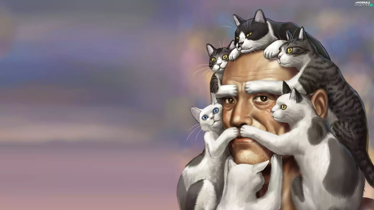 Art, a man, cats