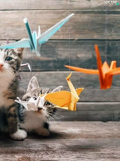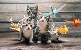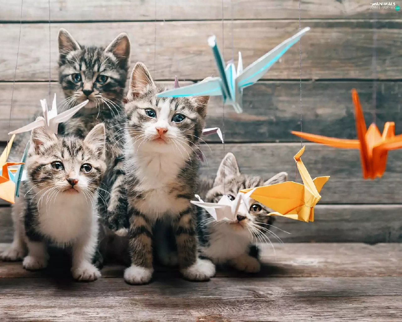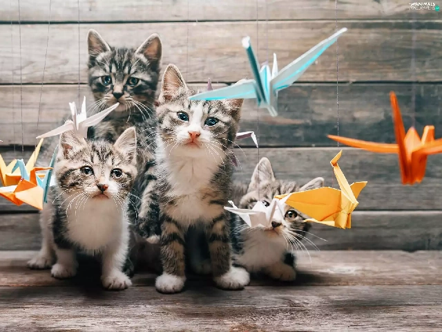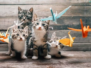 Paper, Origami, puss, Birds on the log, cats