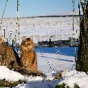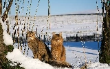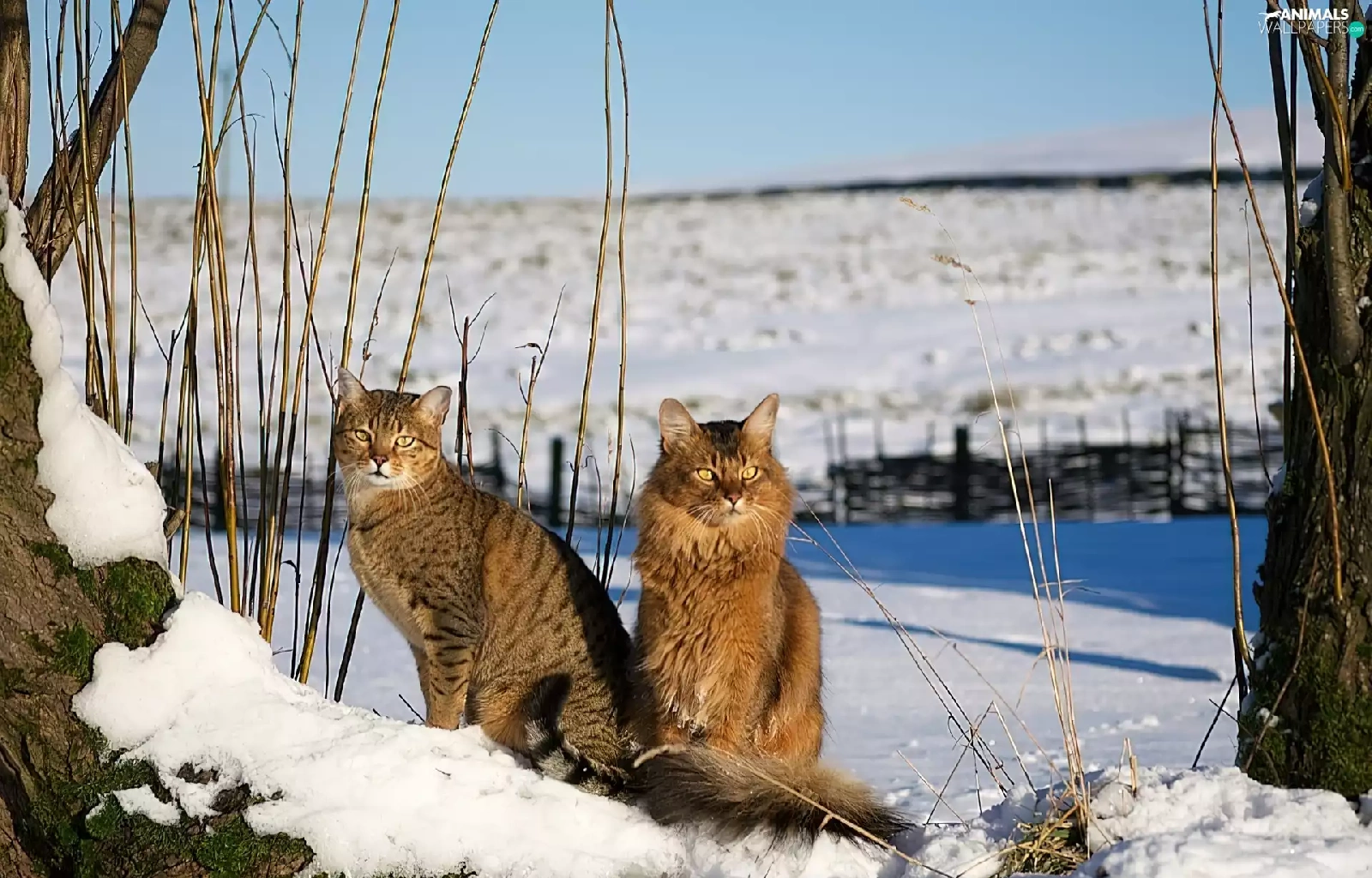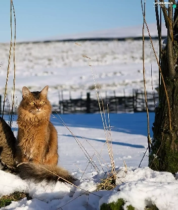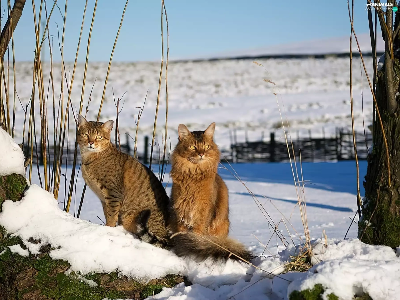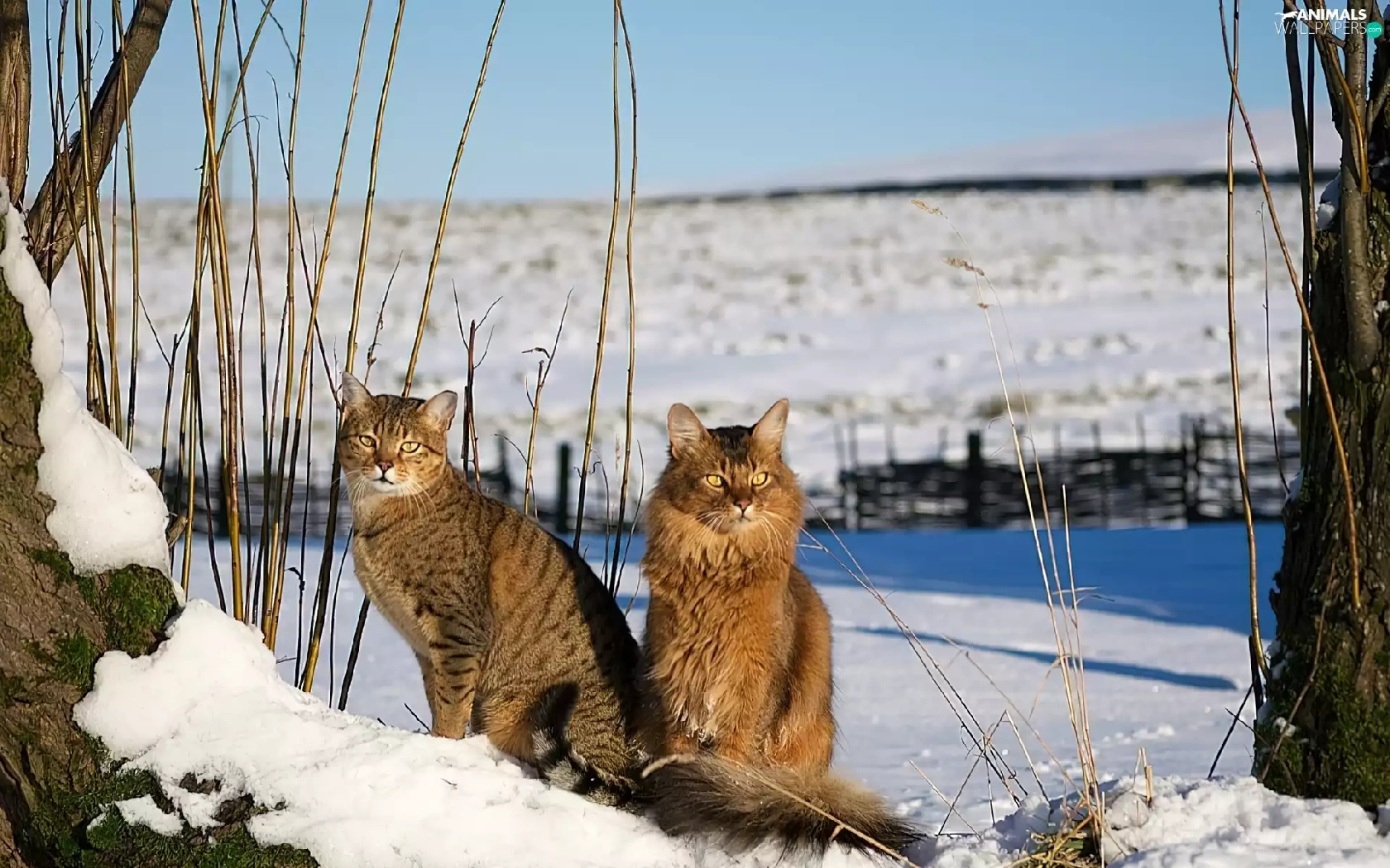snow, Two cars, cats