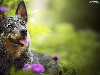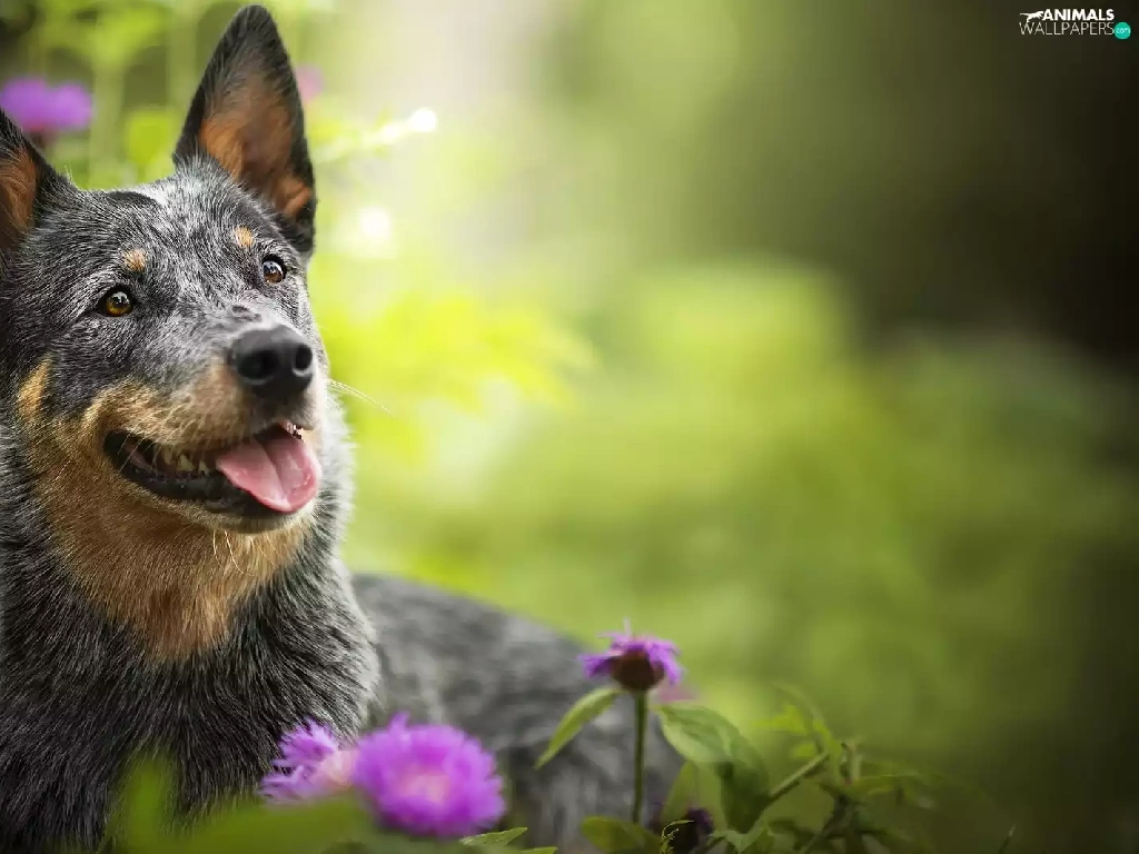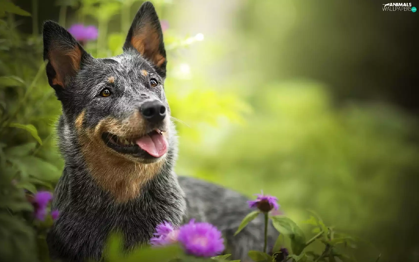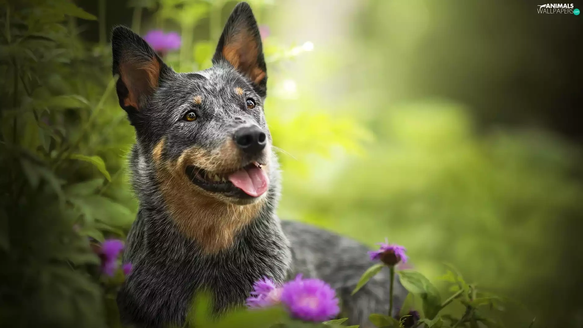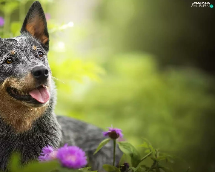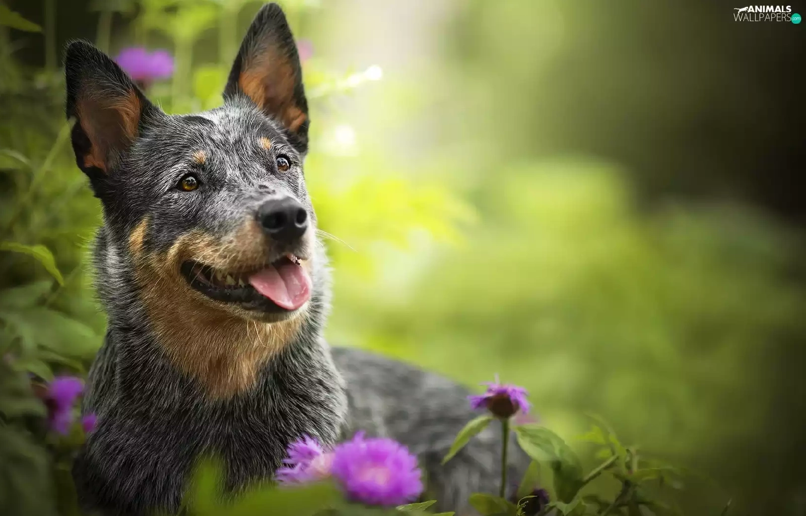 Flowers, Plants, Australian cattle dog, muzzle, dog