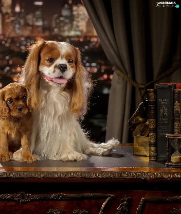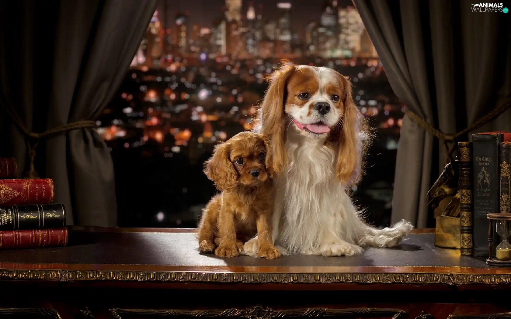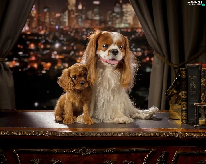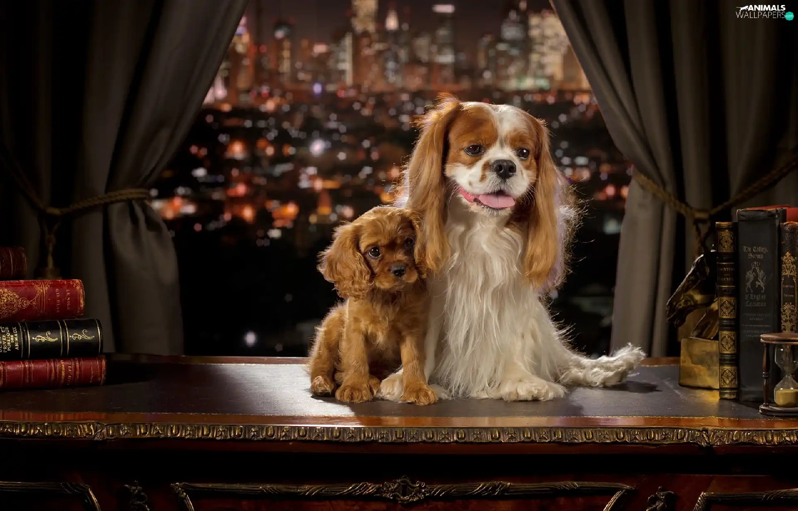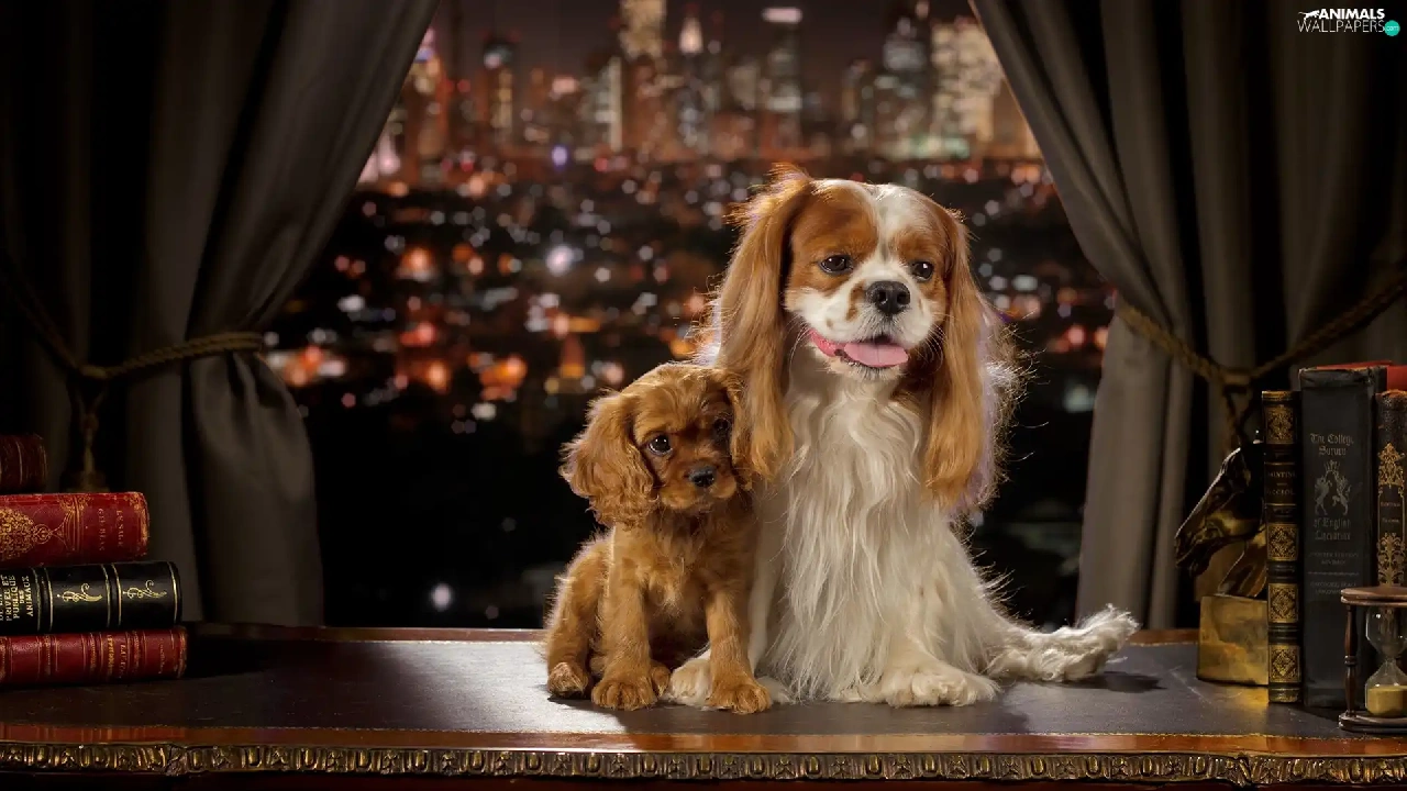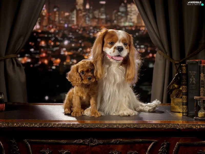 Puppy, Cavalier King Charles spaniel, Town, English Cocker Spaniel, Dogs, Window, Night