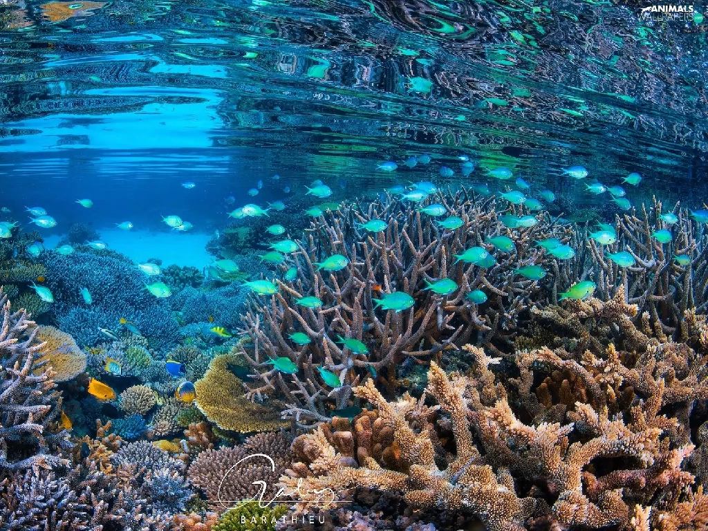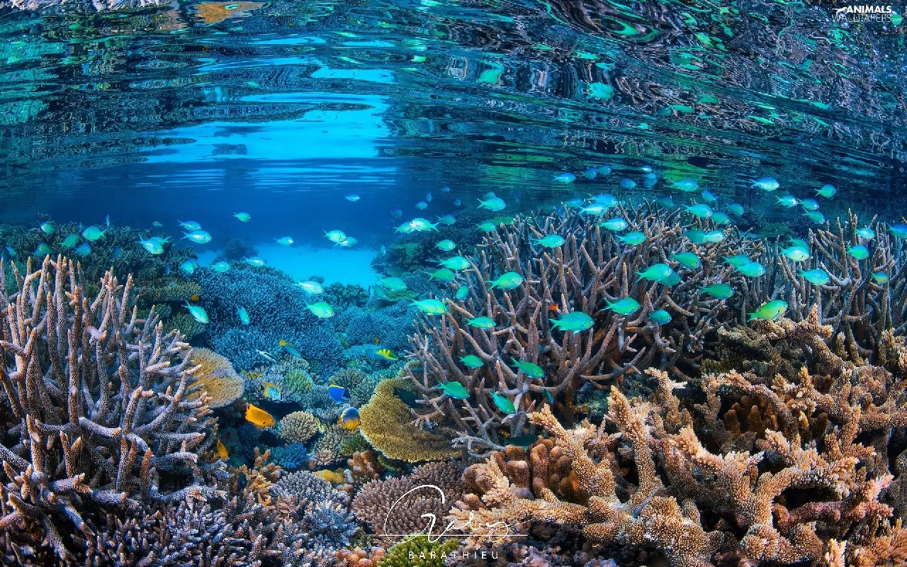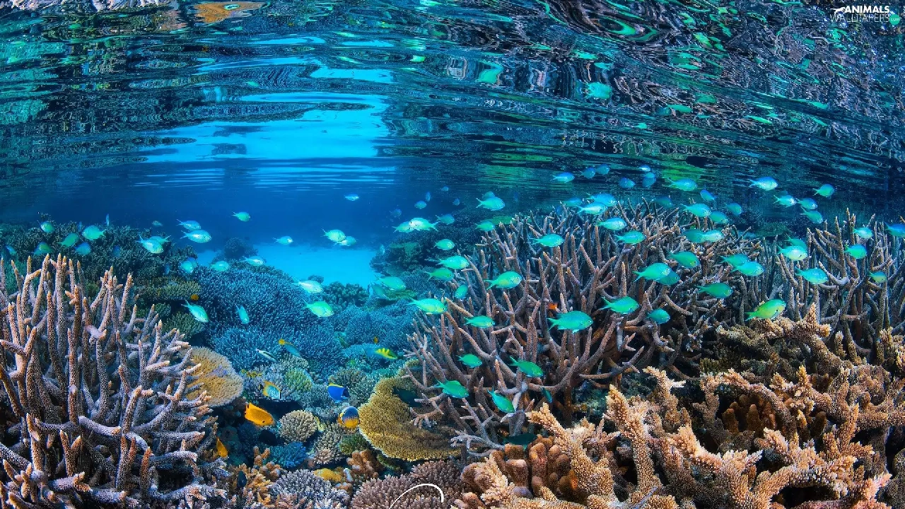 sea, Corals, fish, cay