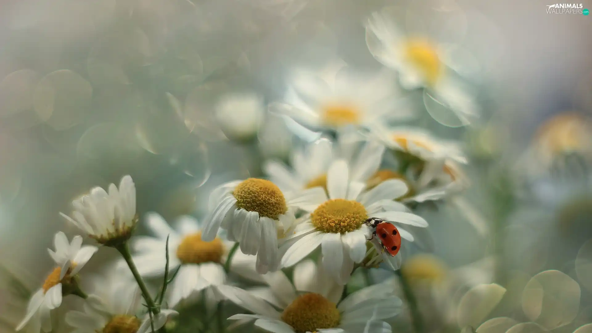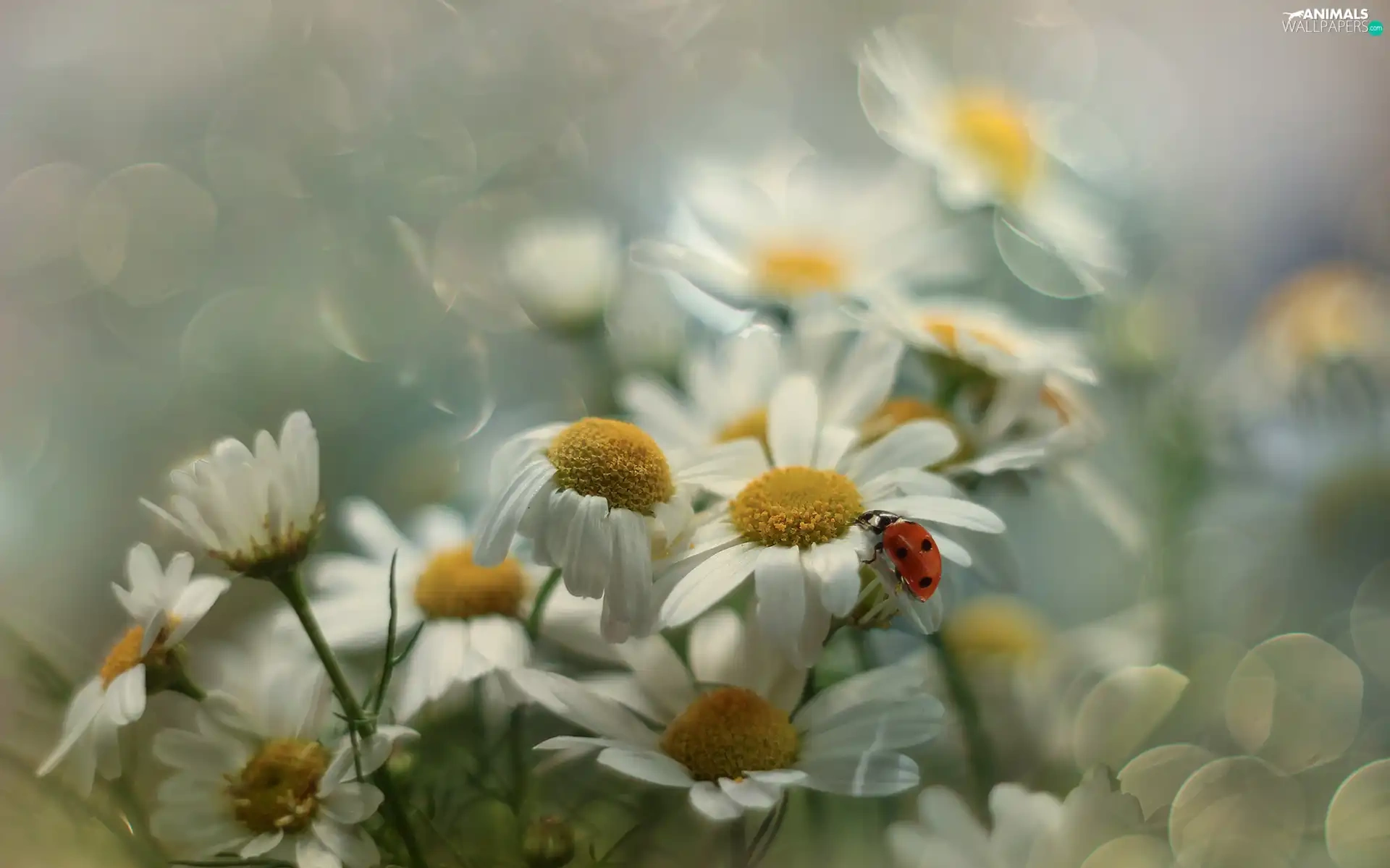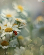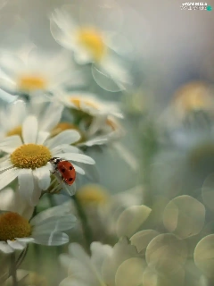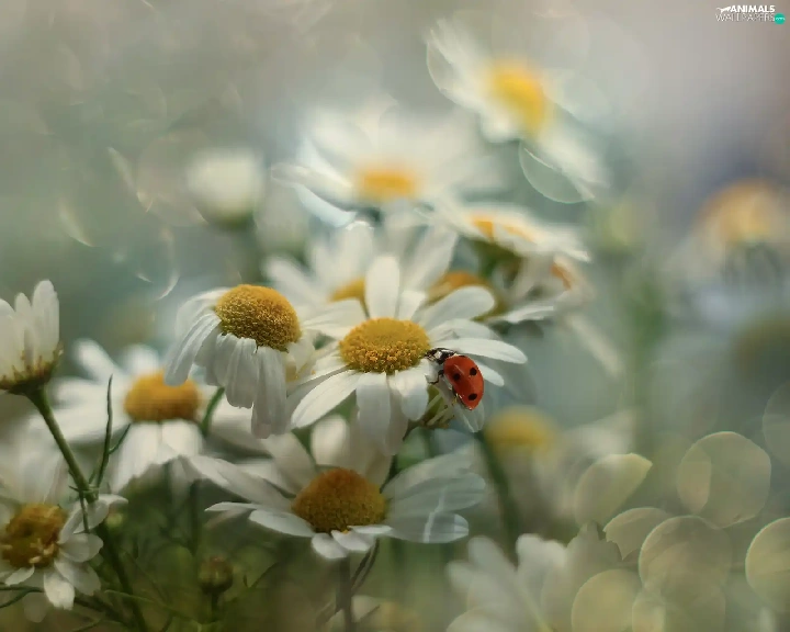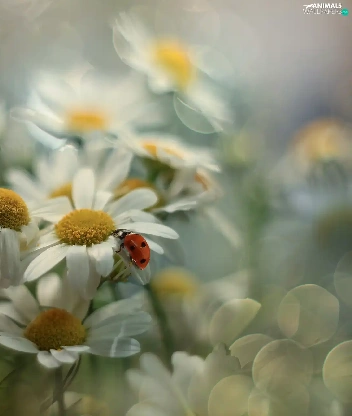 Corn Chamomile, Flowers, Insect, ladybird