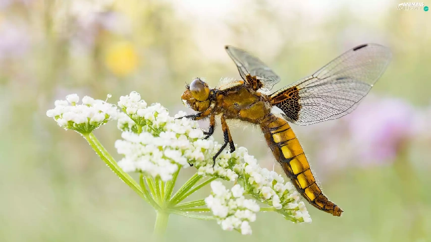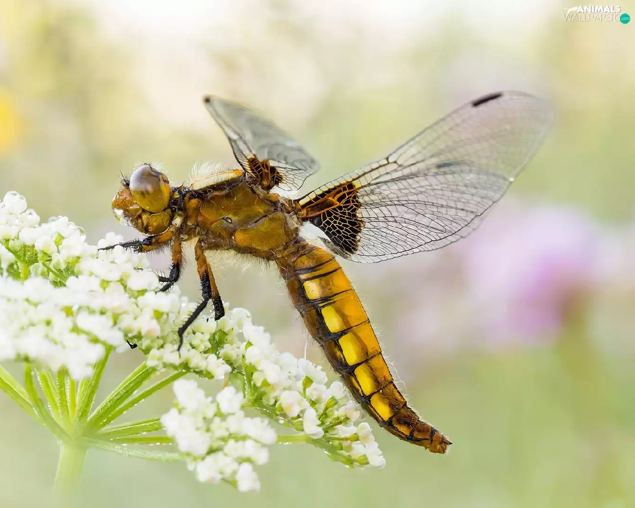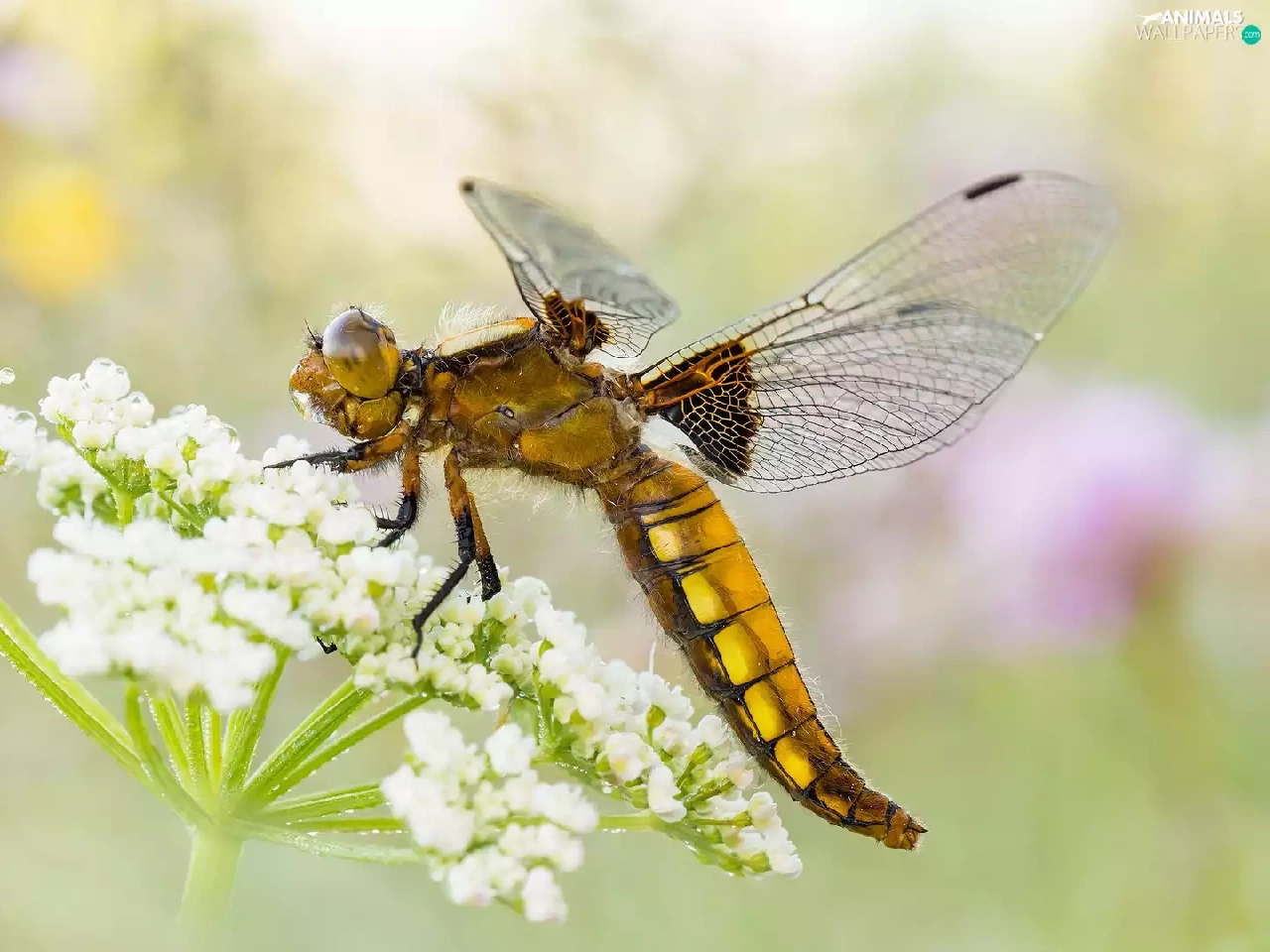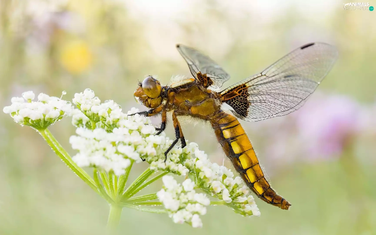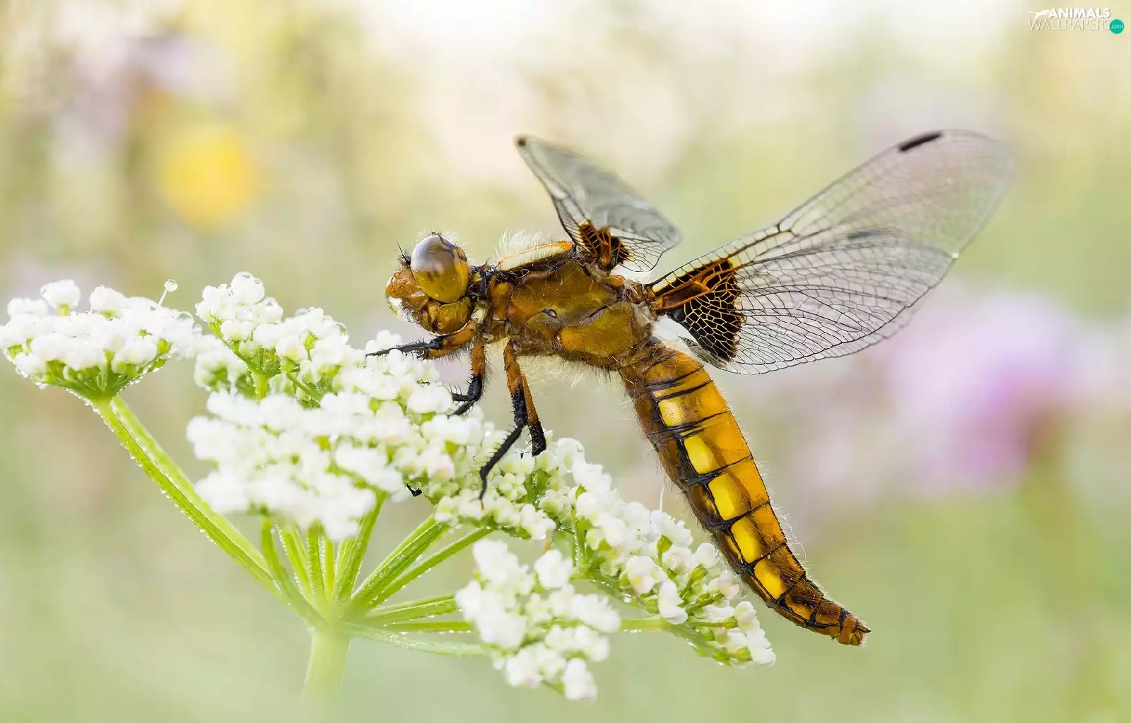 Colourfull Flowers, Close, plant, White, Broad-bodied Chaser