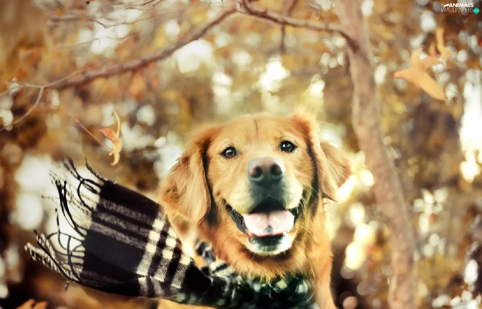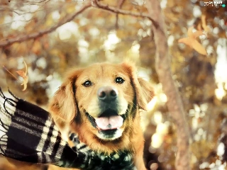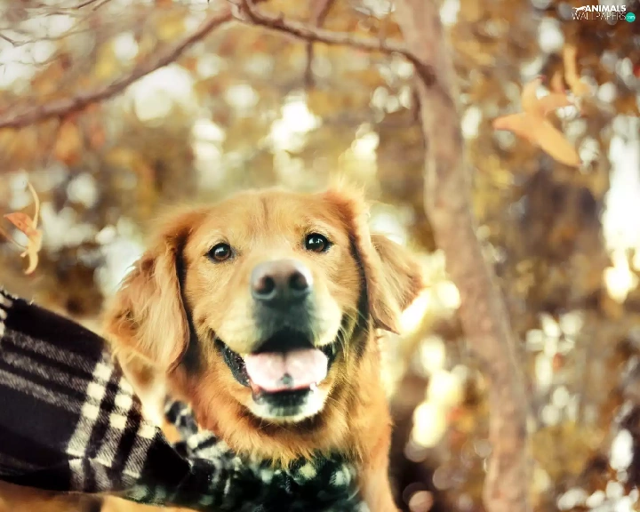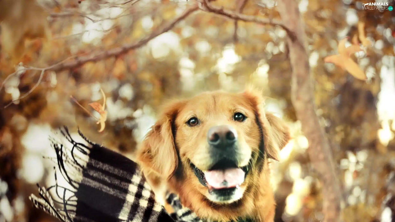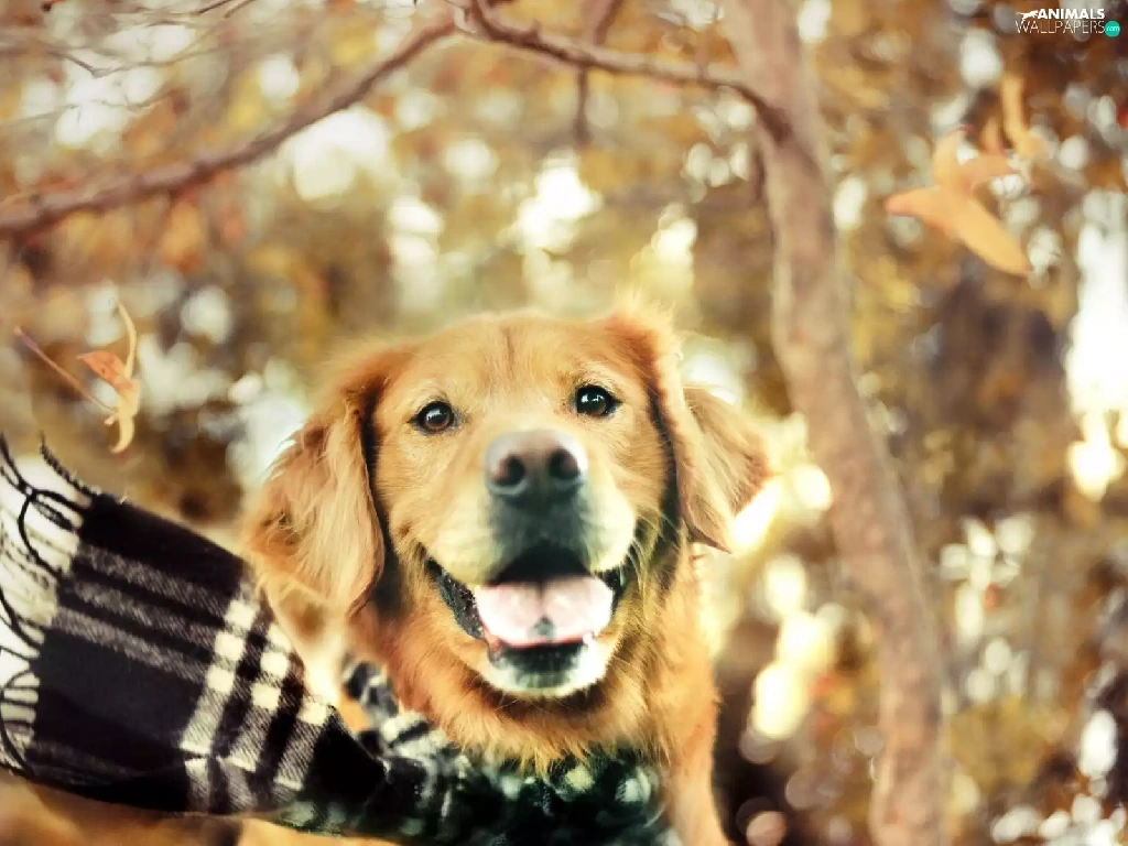 retriever, autumn, ##, Checked, Scarf, golden