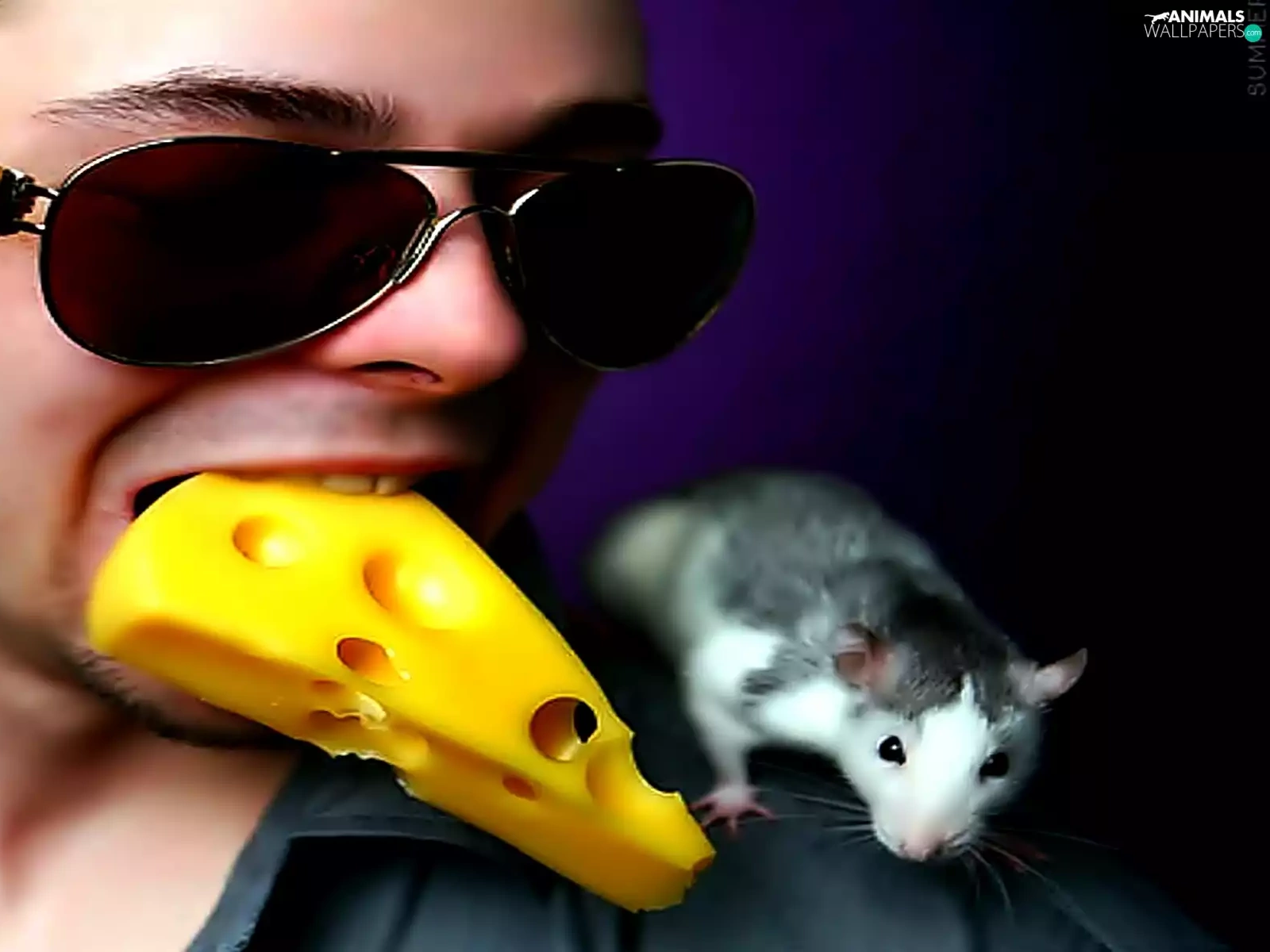 rat, a man, cheese