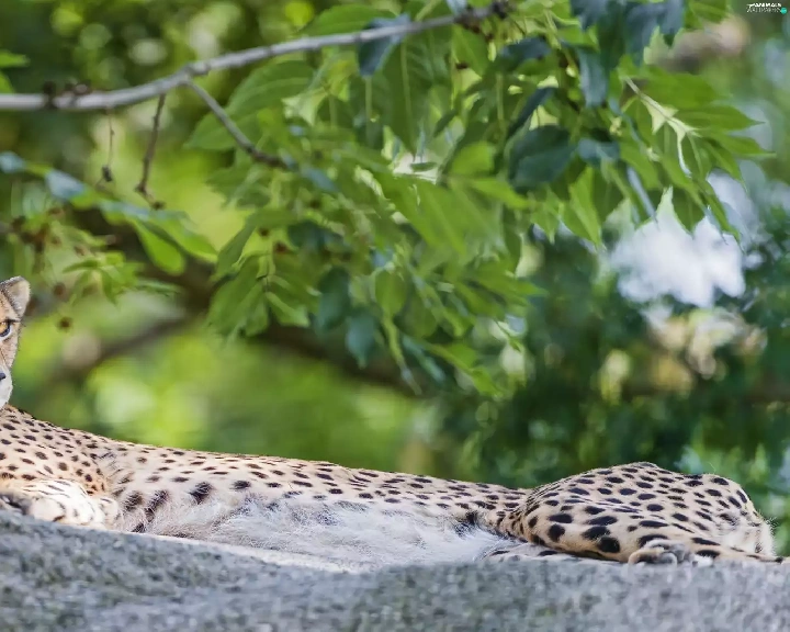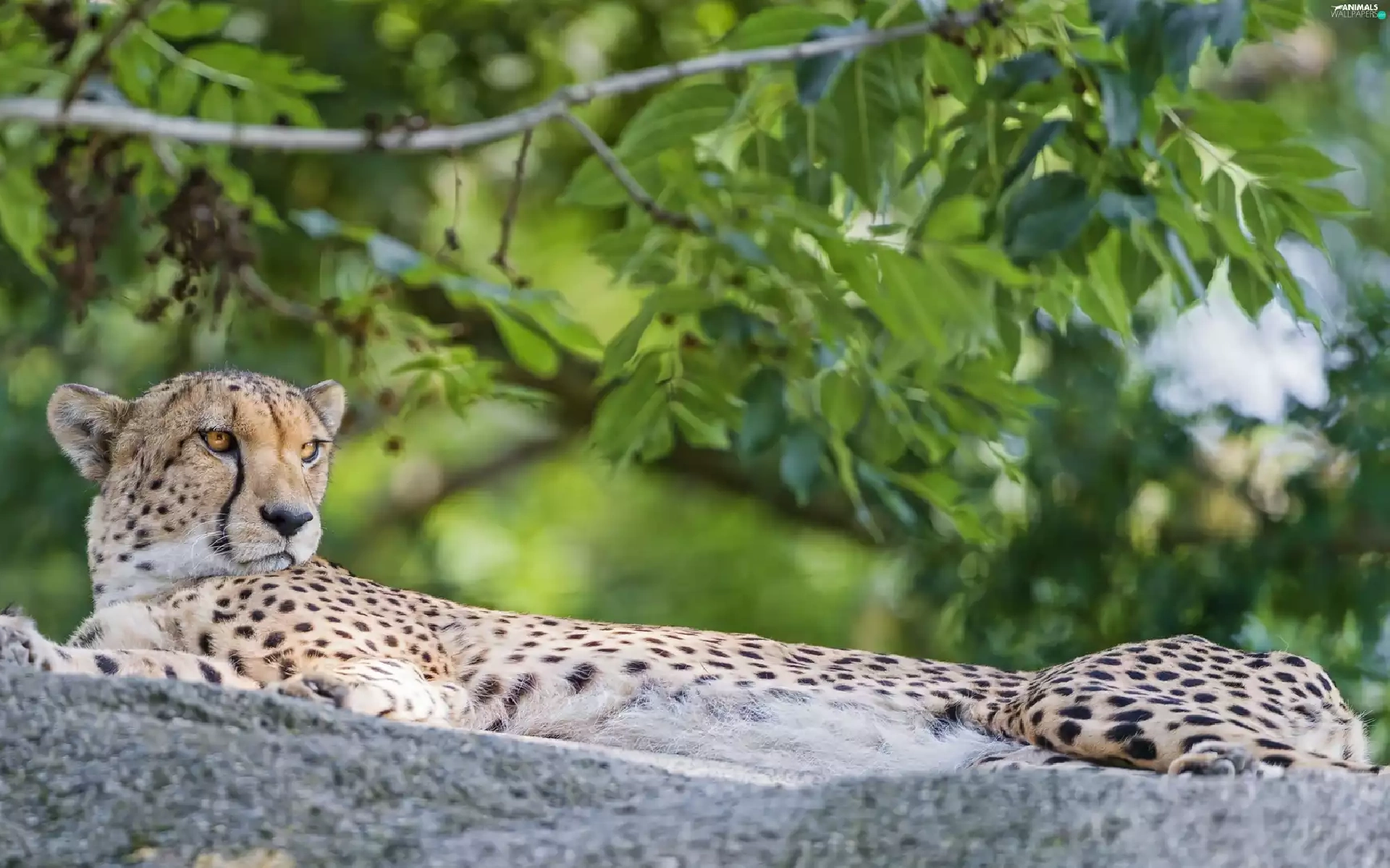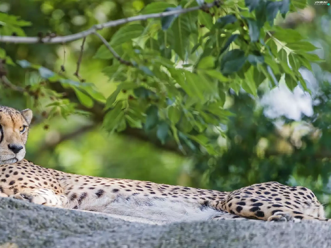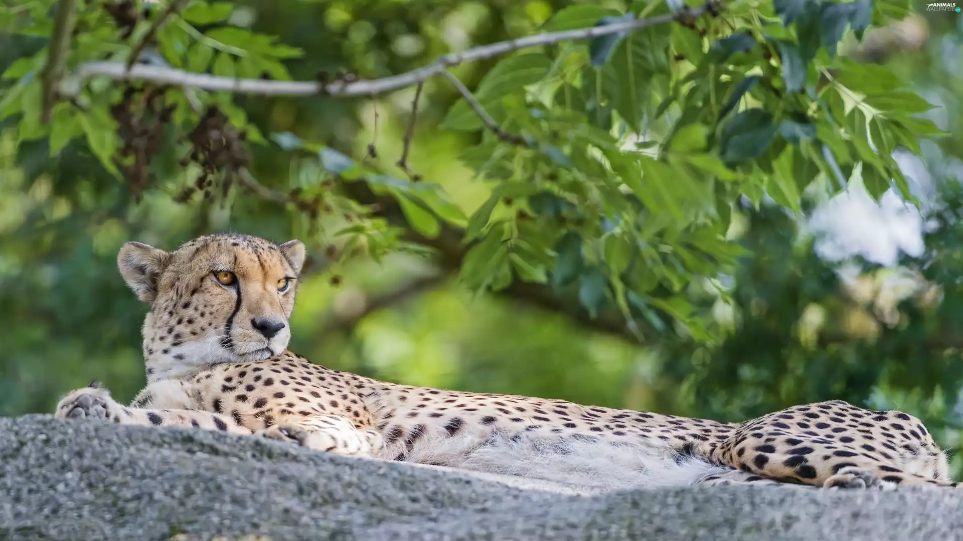 lying, Rocks, Plants, Cheetah