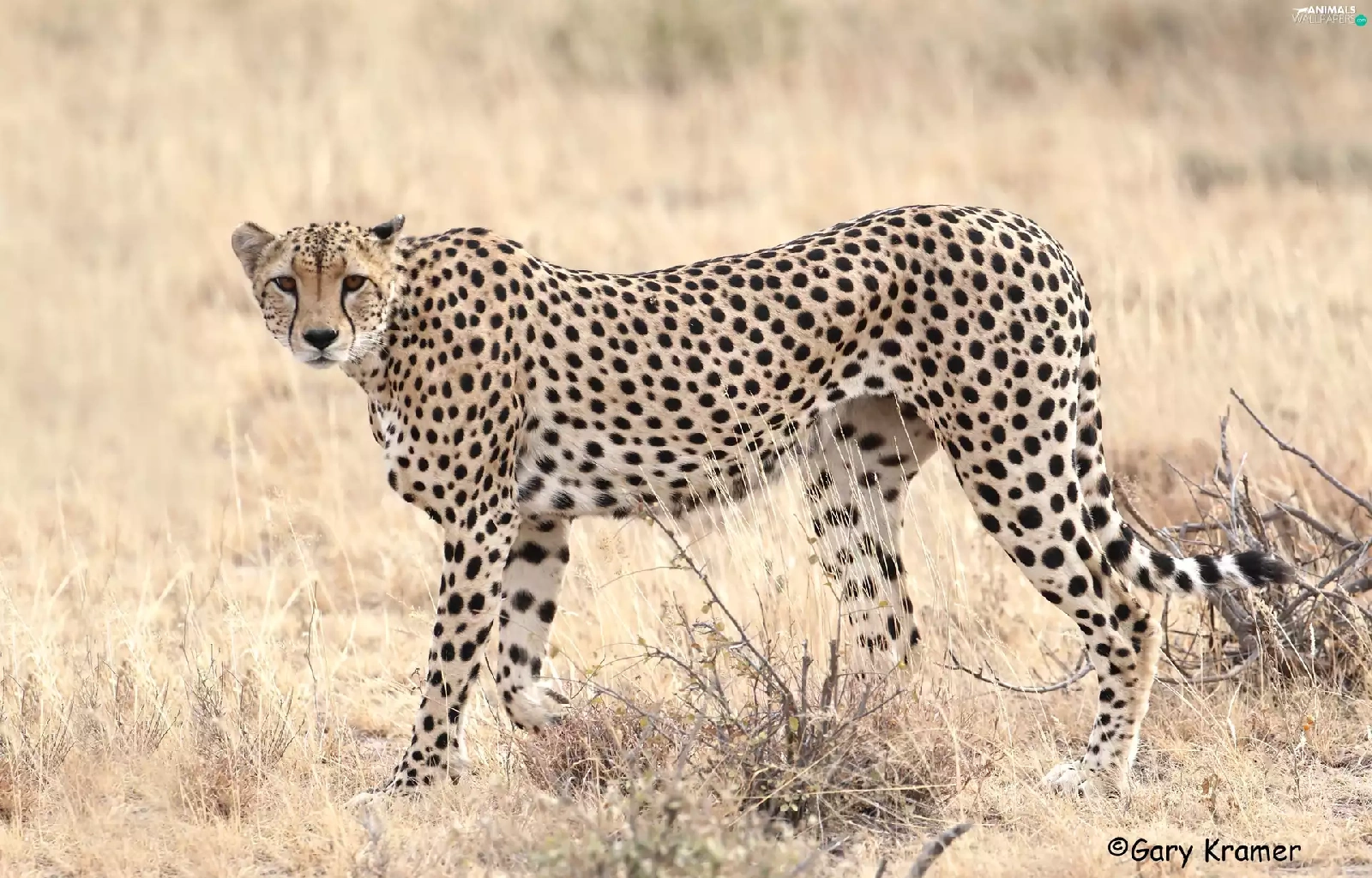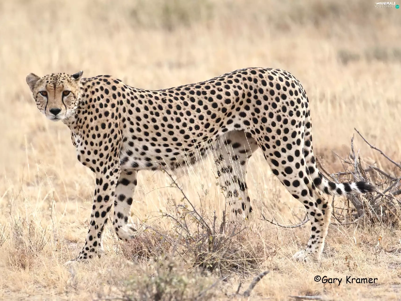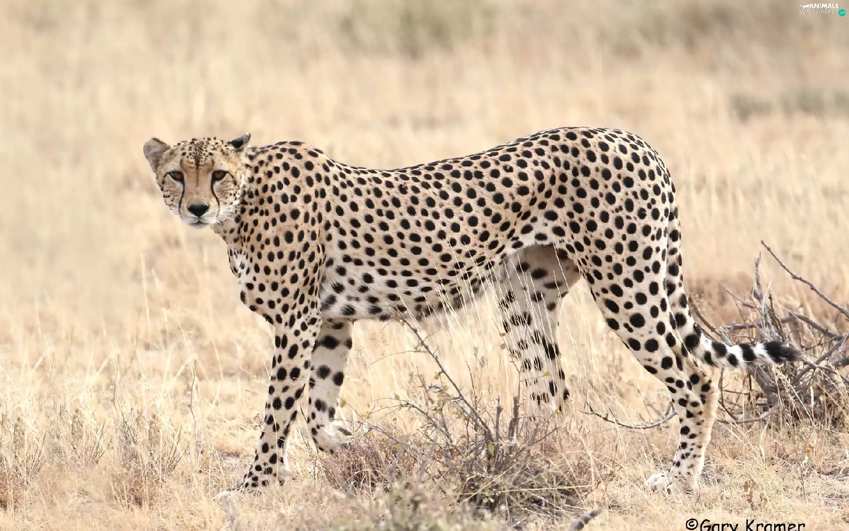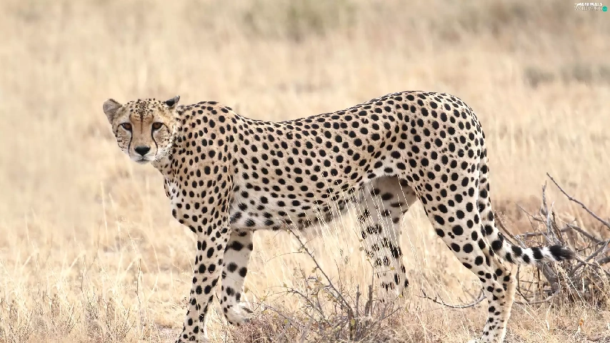 standing, dry, grass, Cheetah