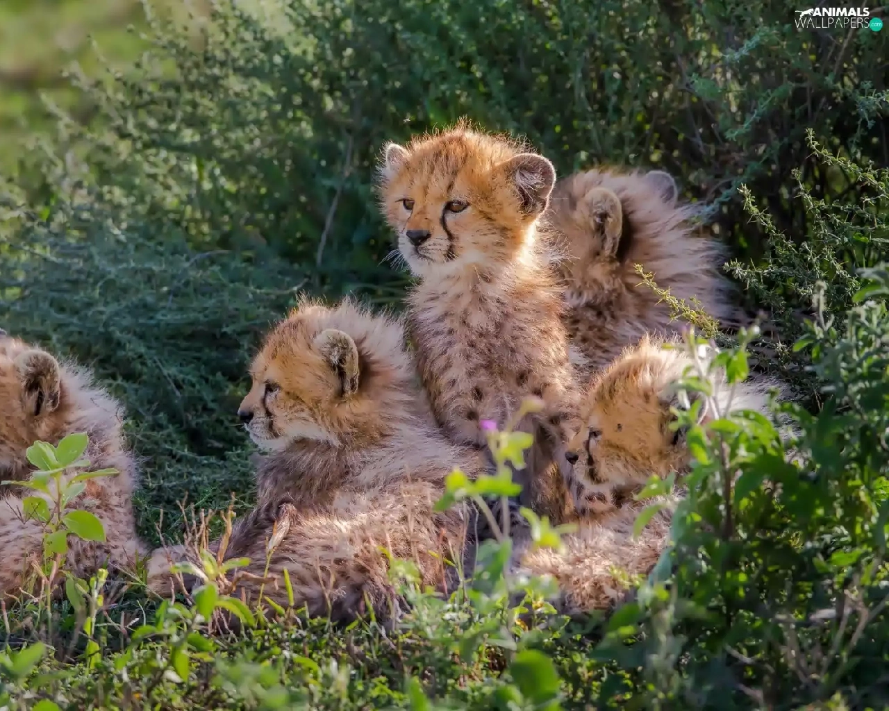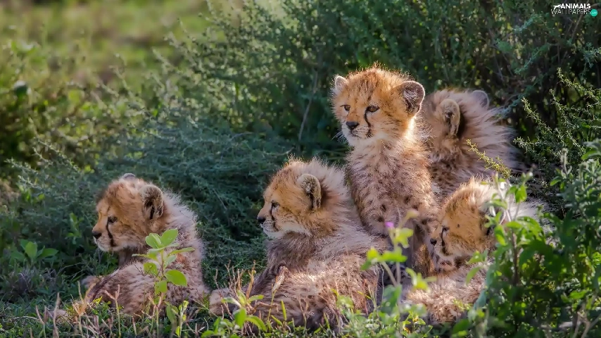 young, Bush, grass, Cheetah