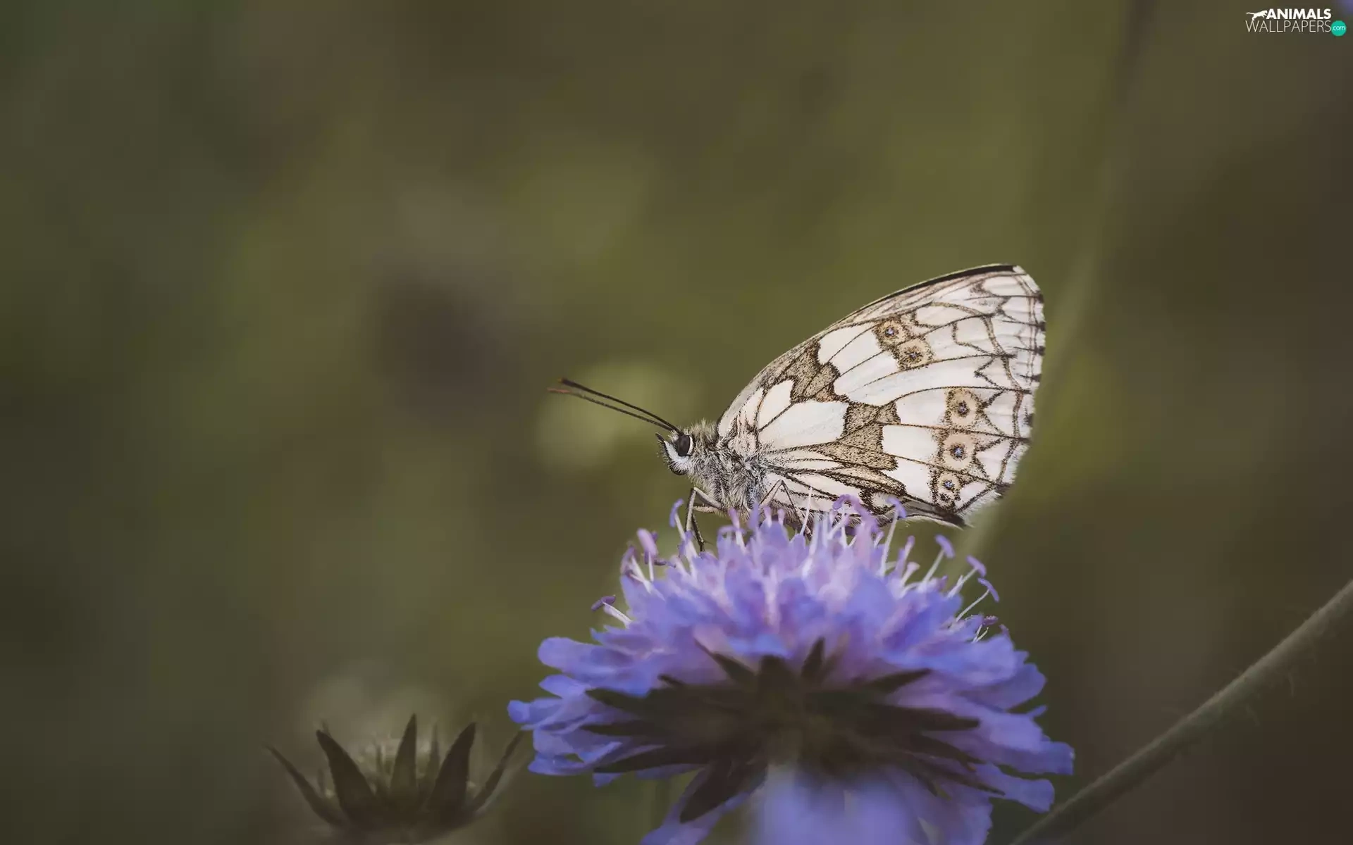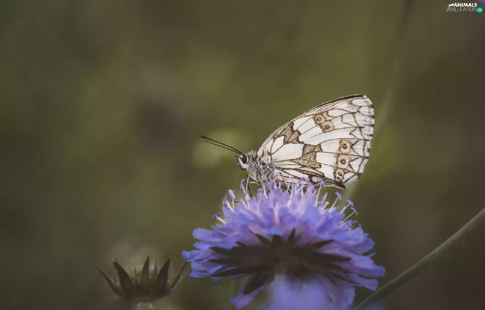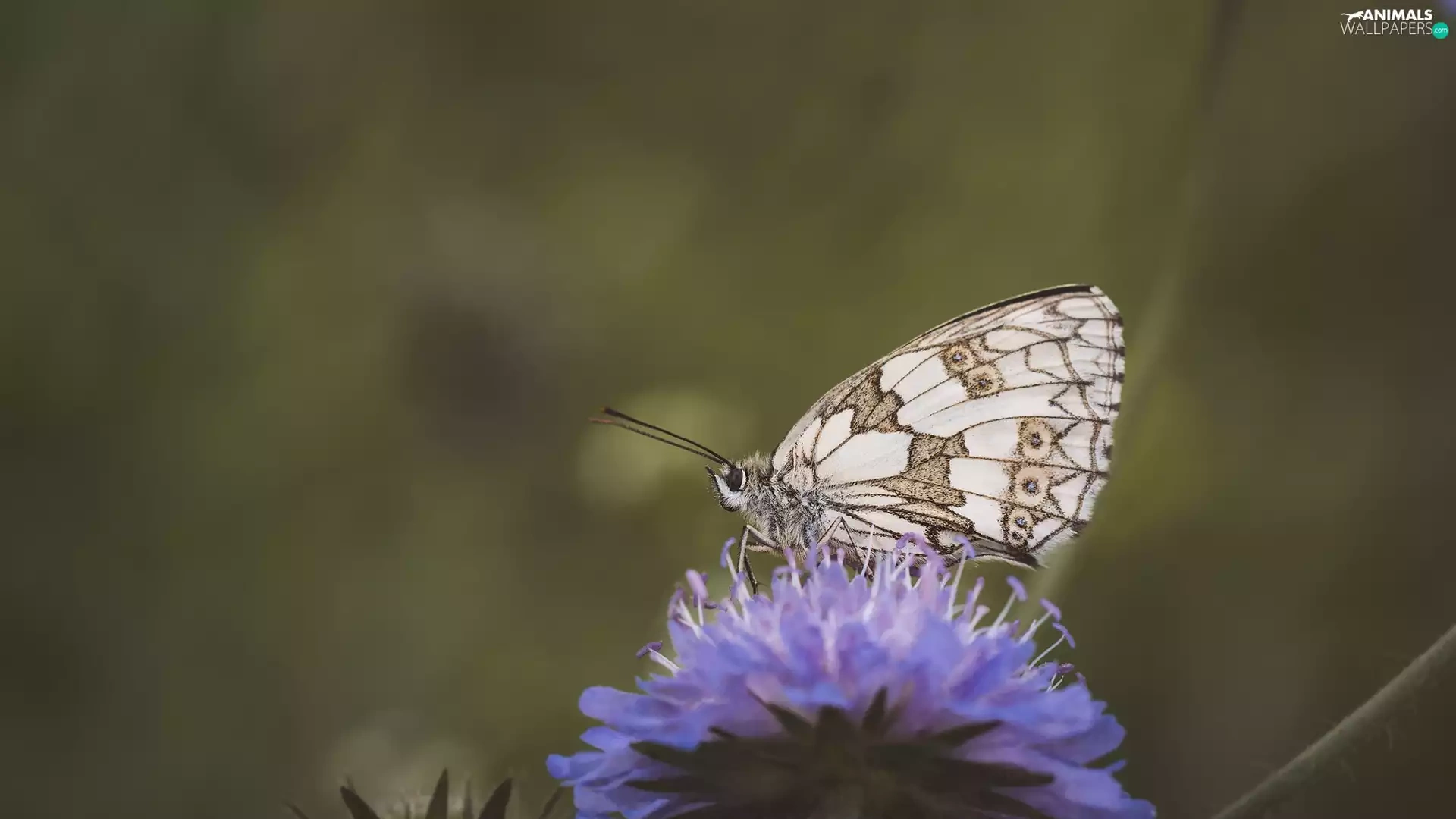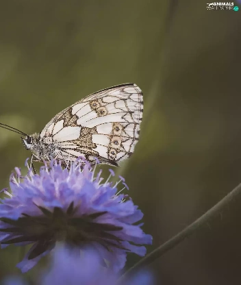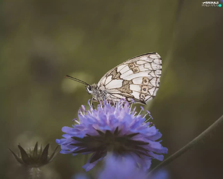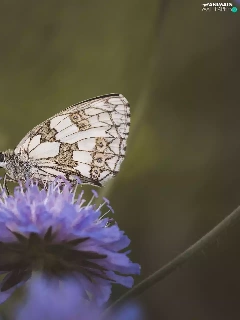 Colourfull Flowers, marbled chessboard, Close, butterfly