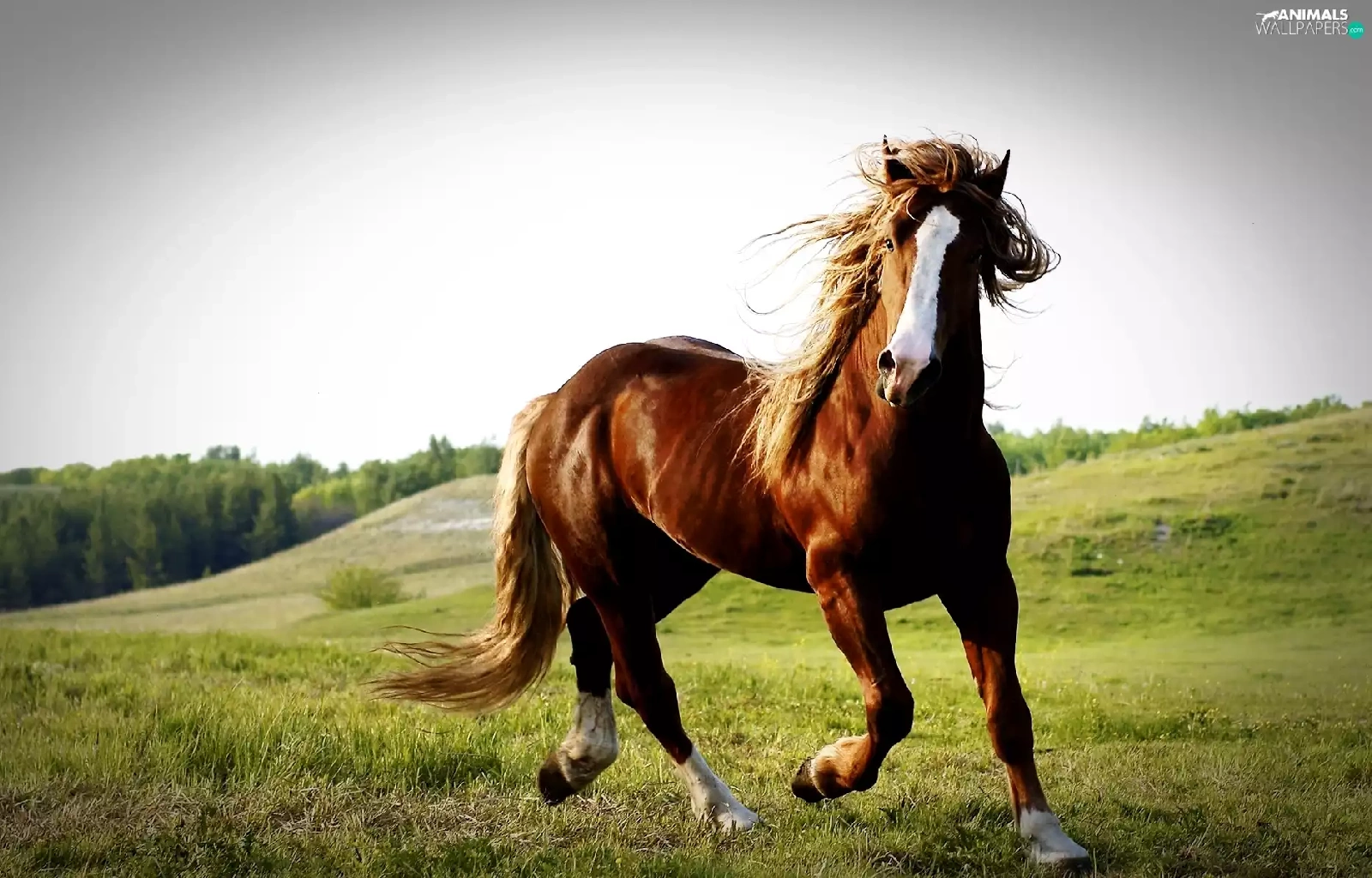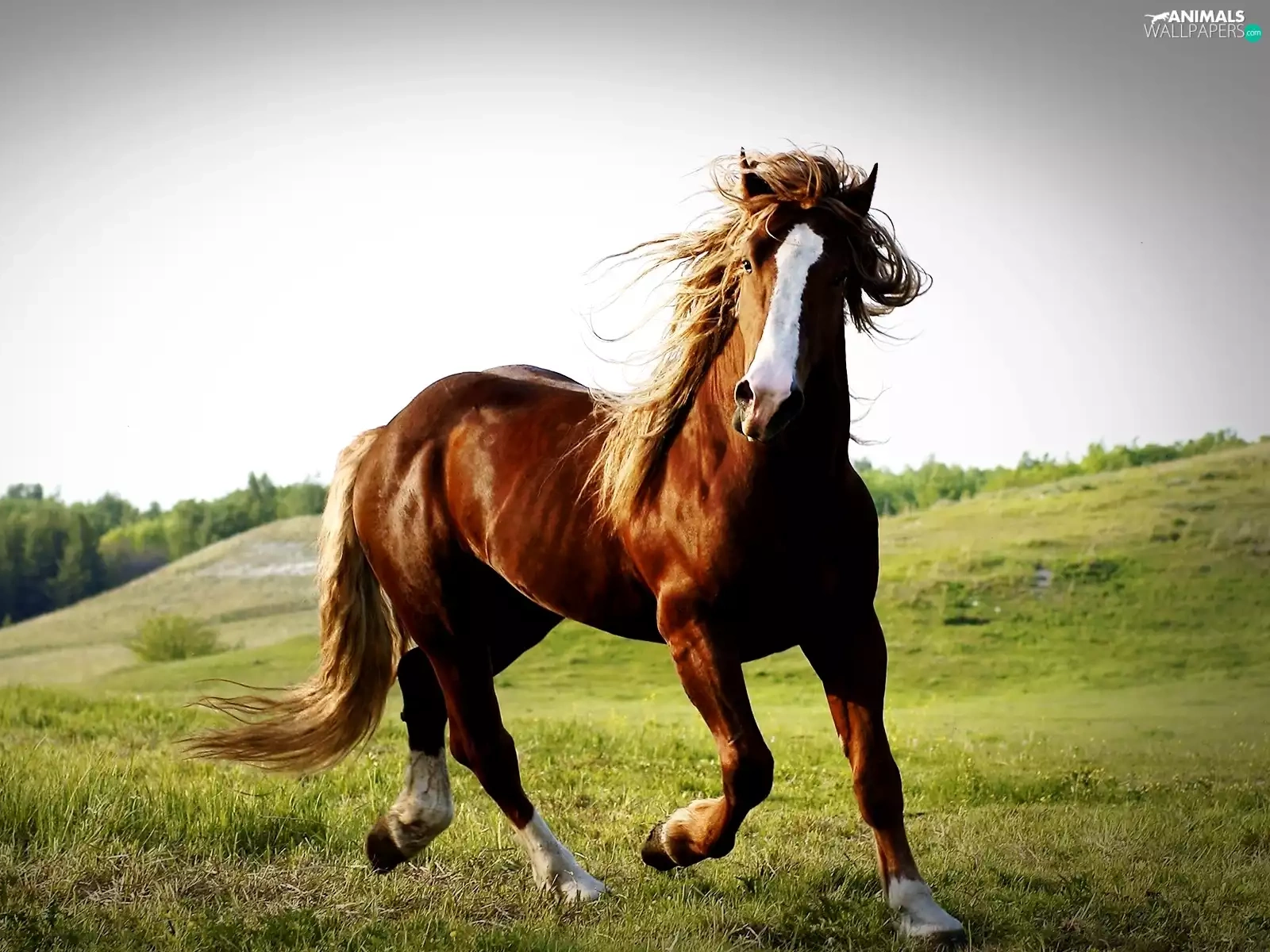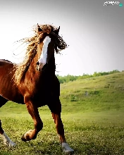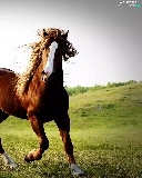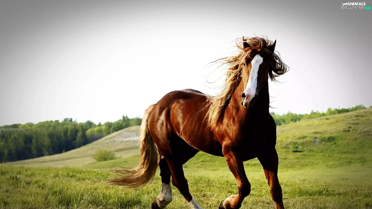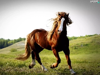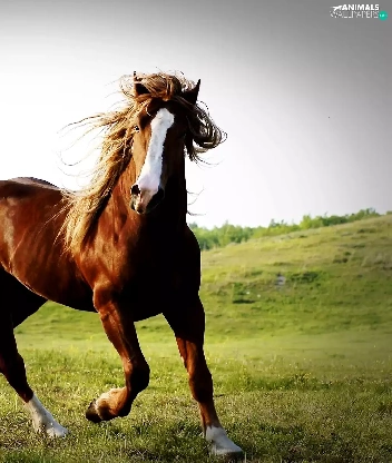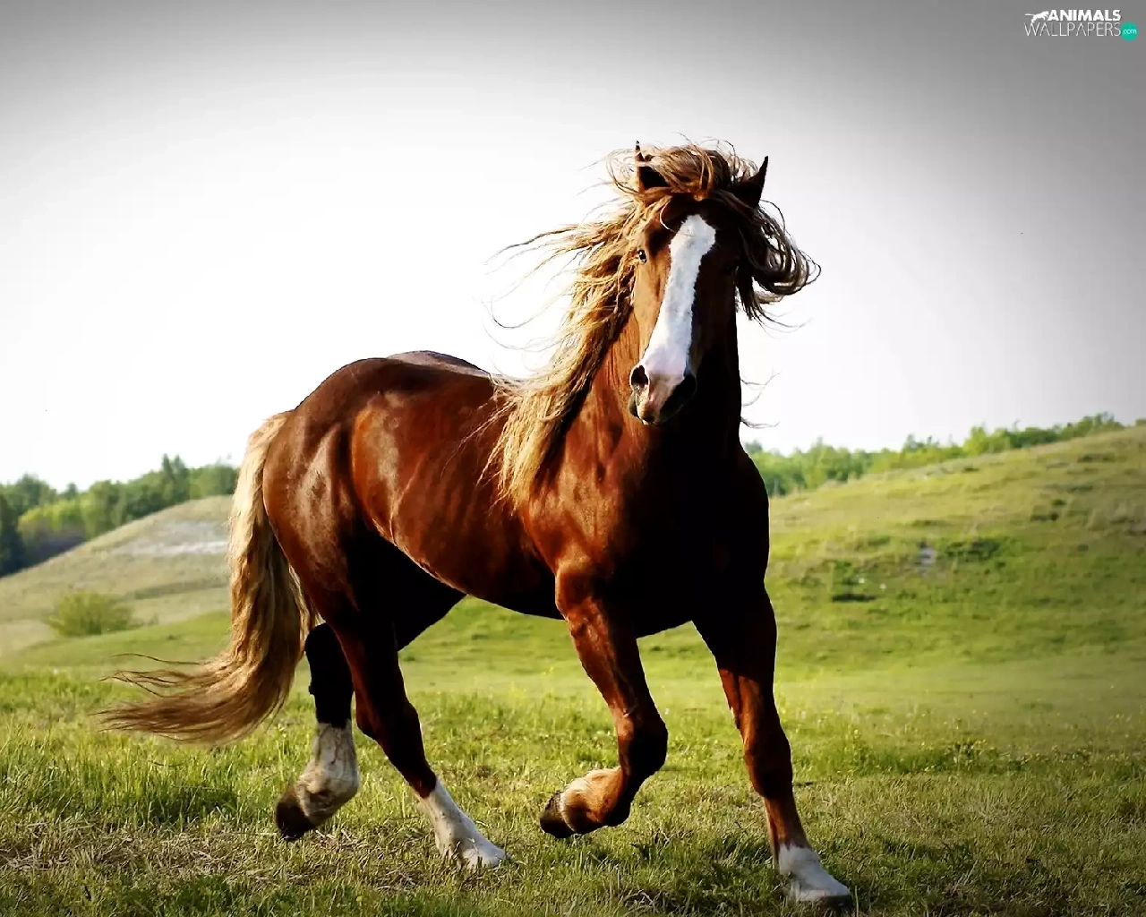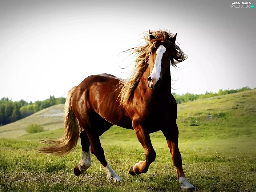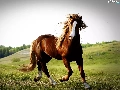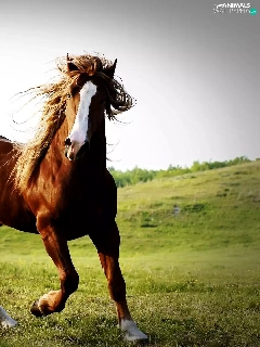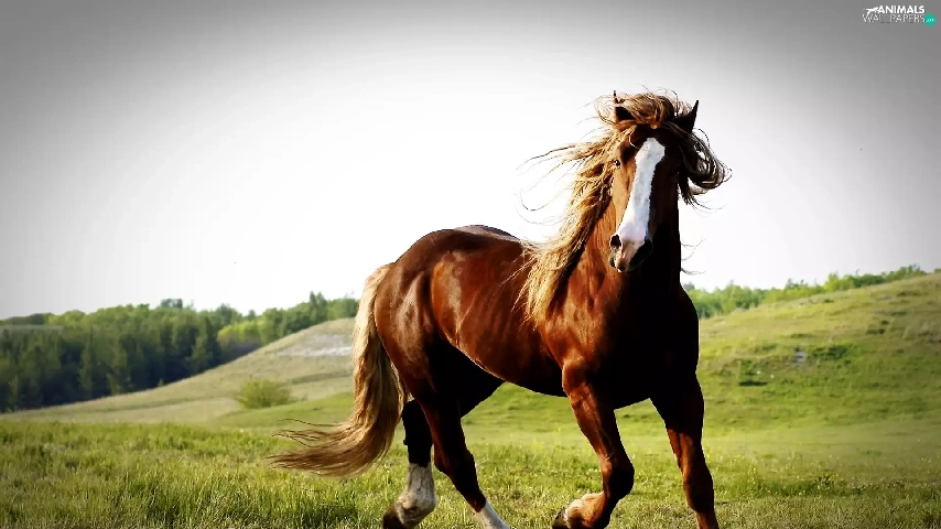 Horse, pasture, hills, chestnut