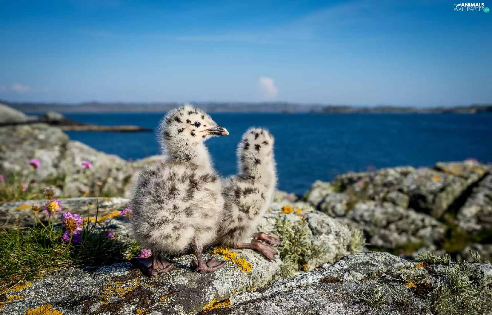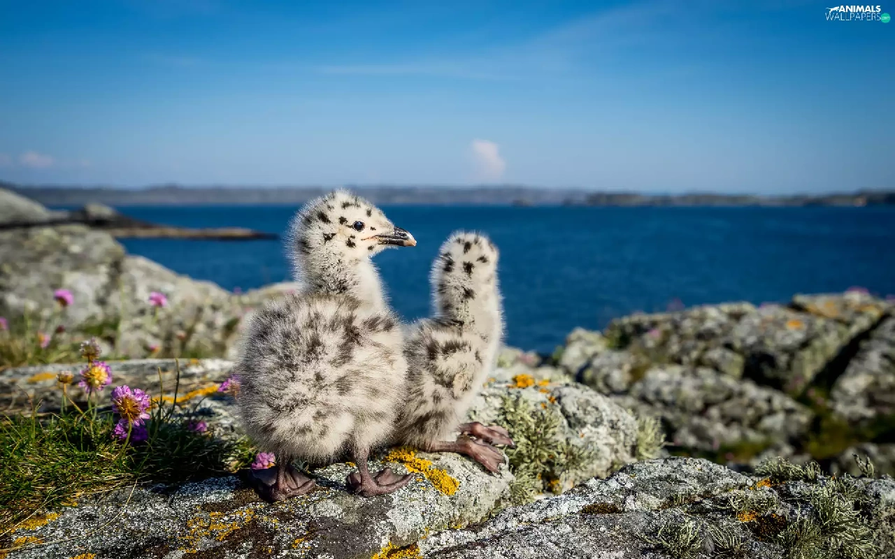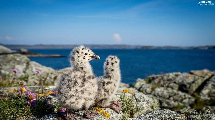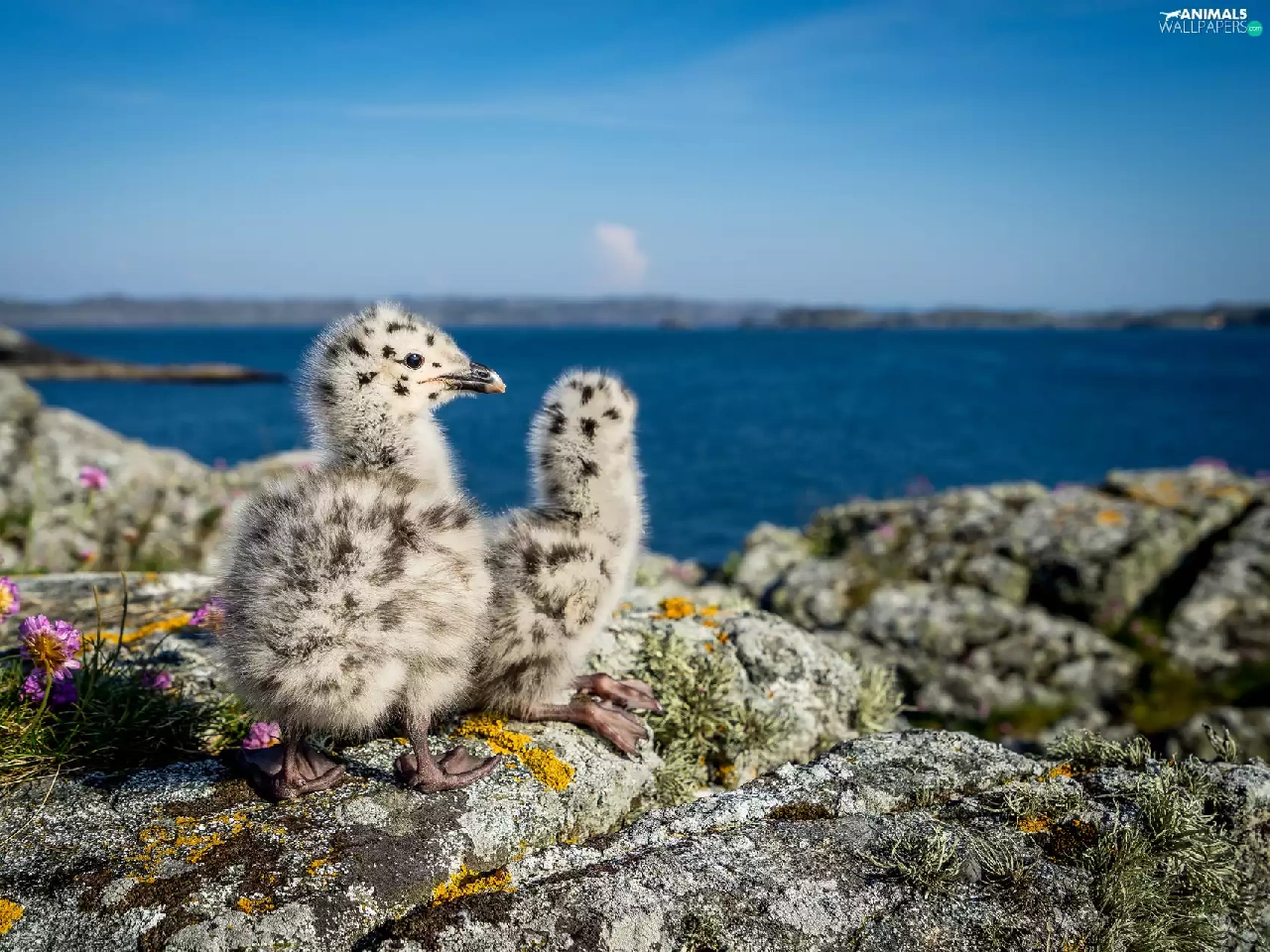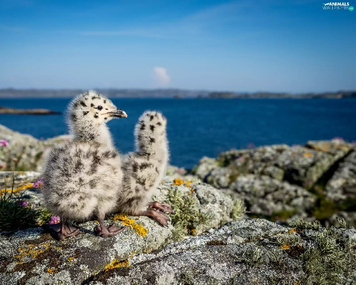 birds, rocks, water, chick
