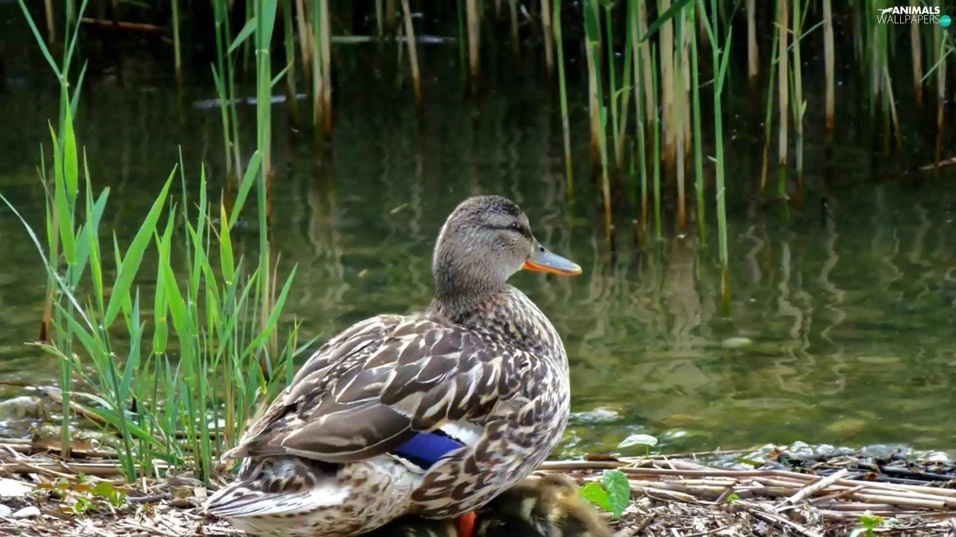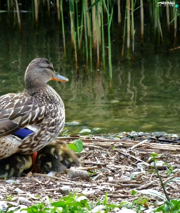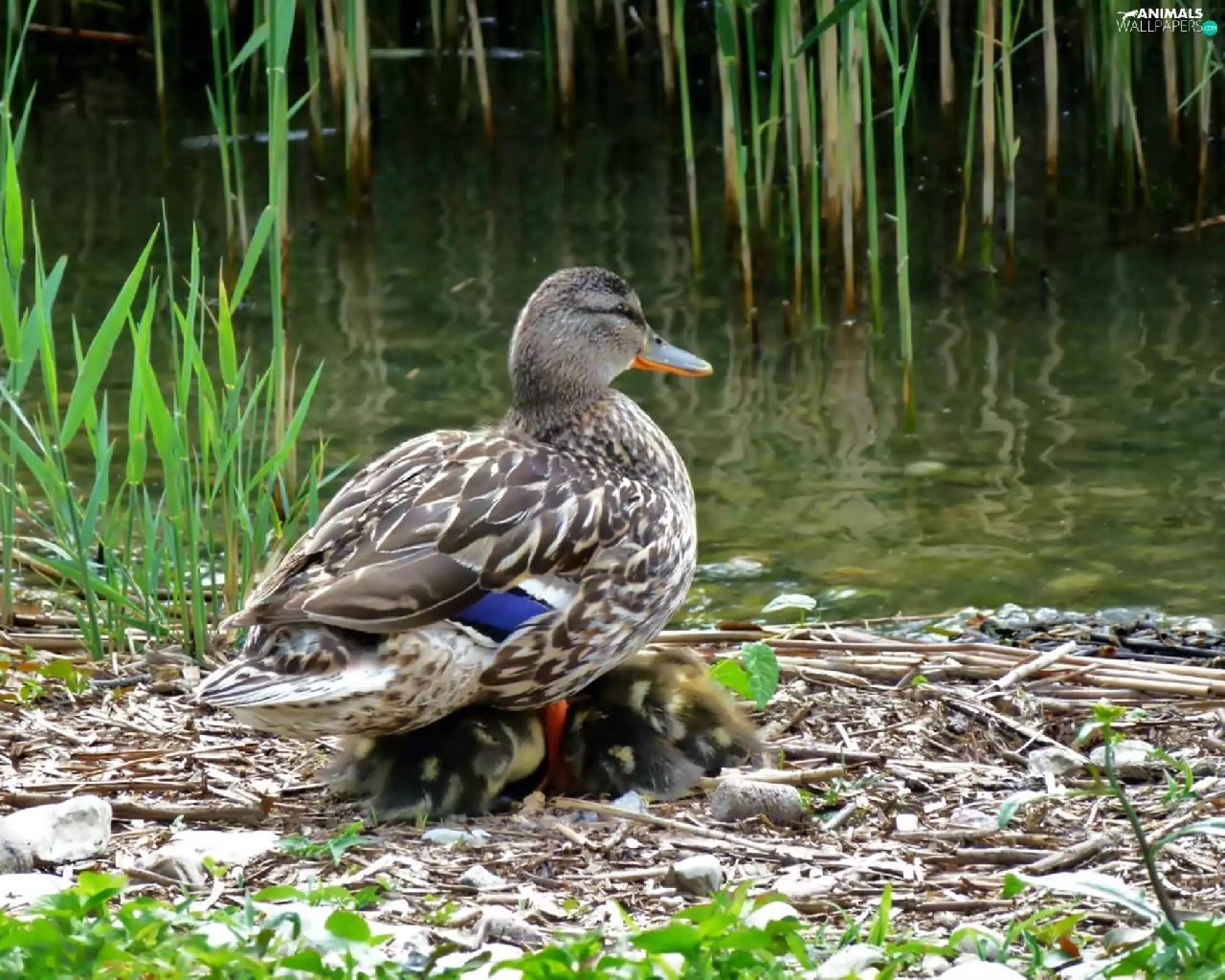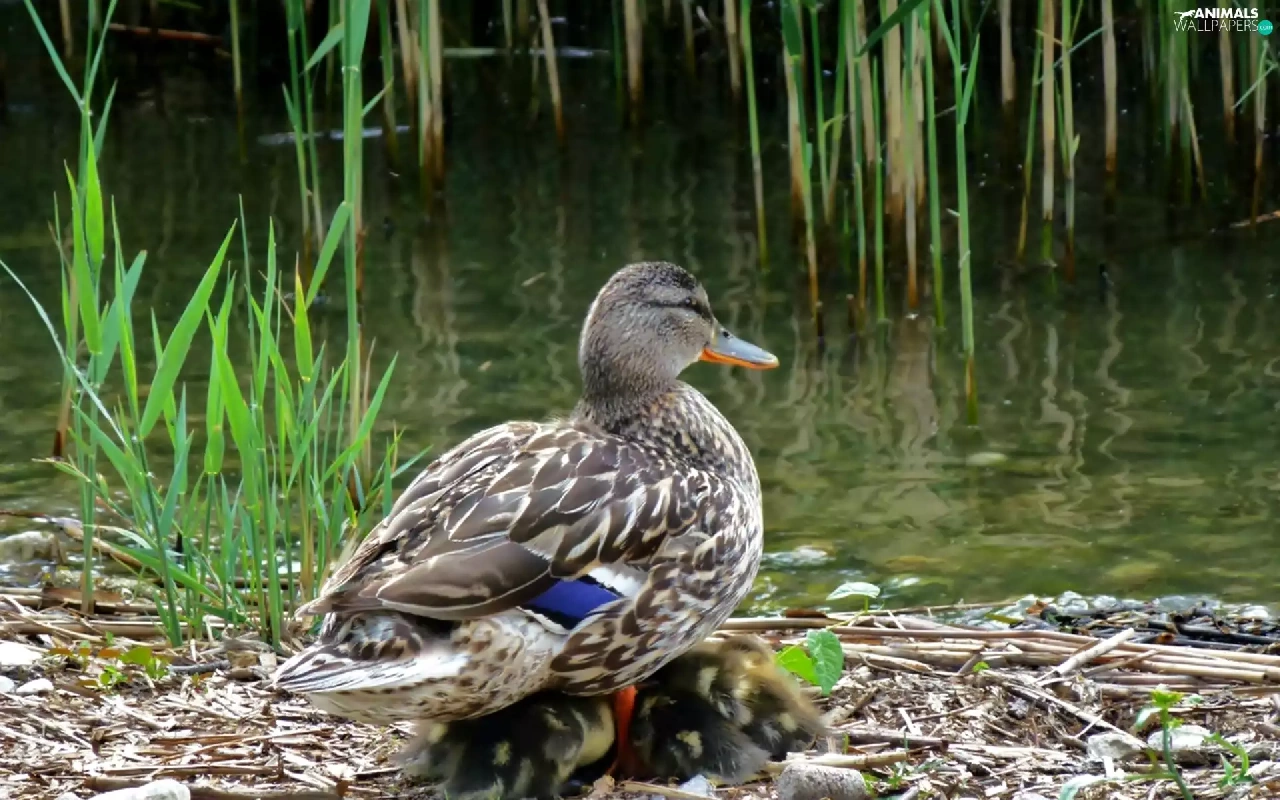 duck, water, Plants, chick