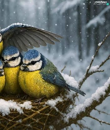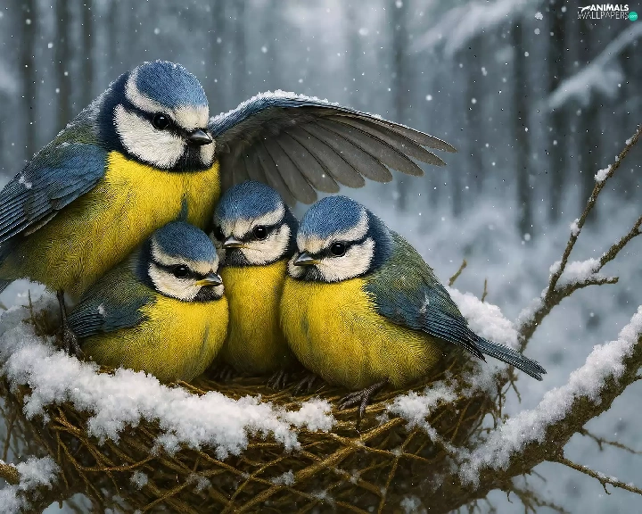 tit, winter, nest, chick, Tit Ordinary, birds