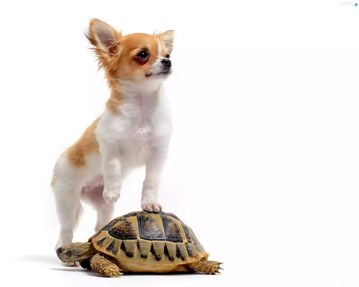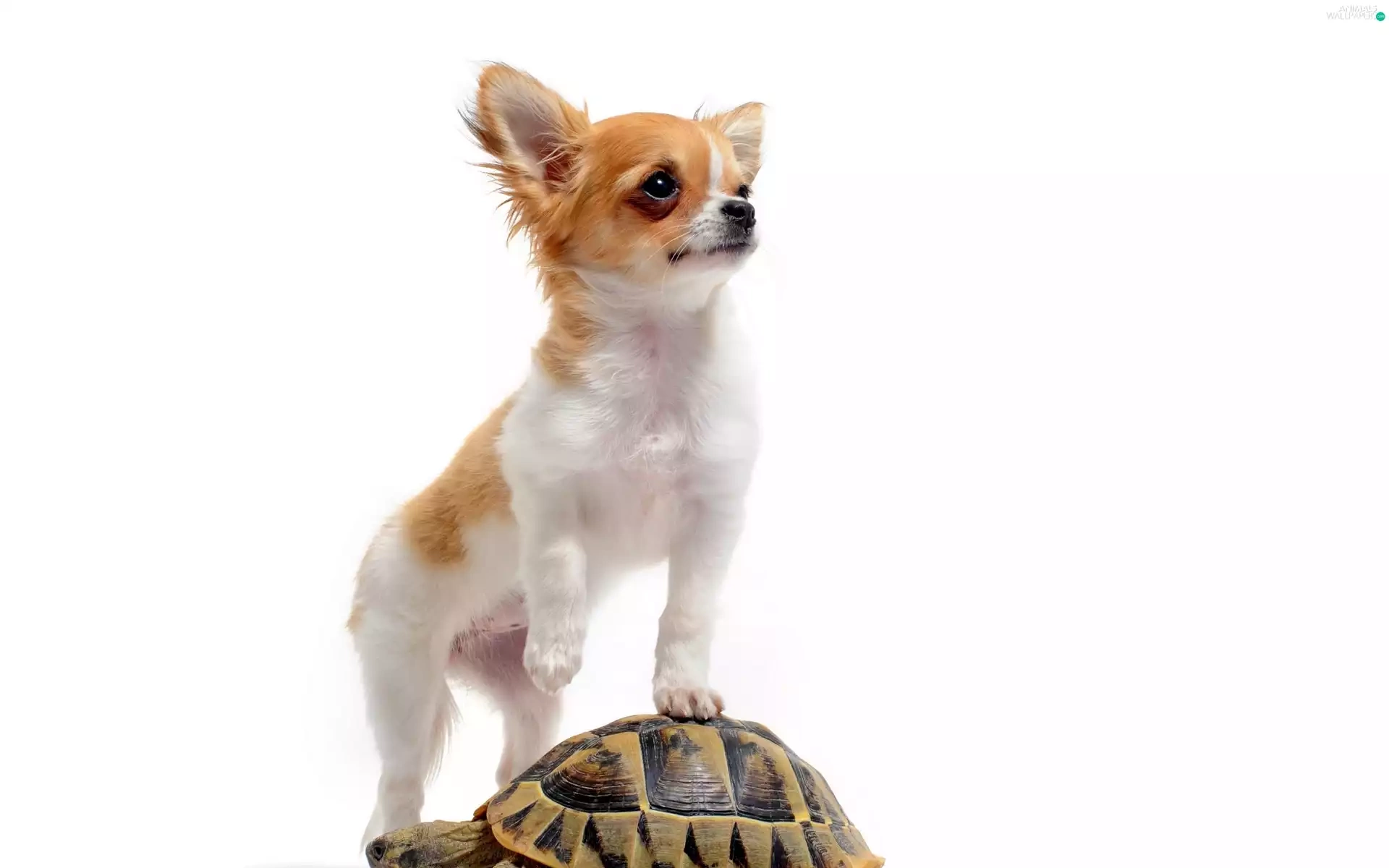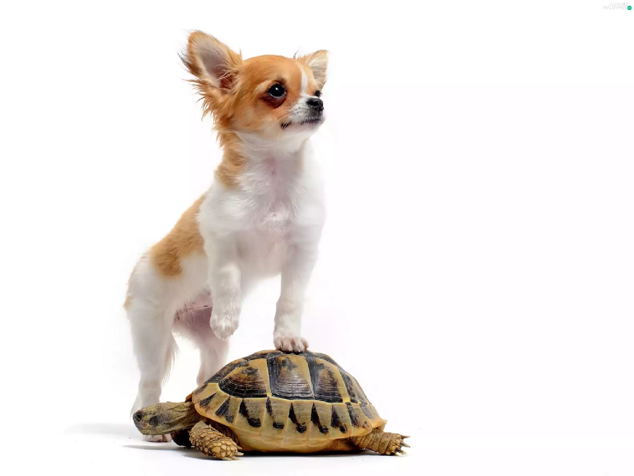 turtle, long-haired Chihuahua