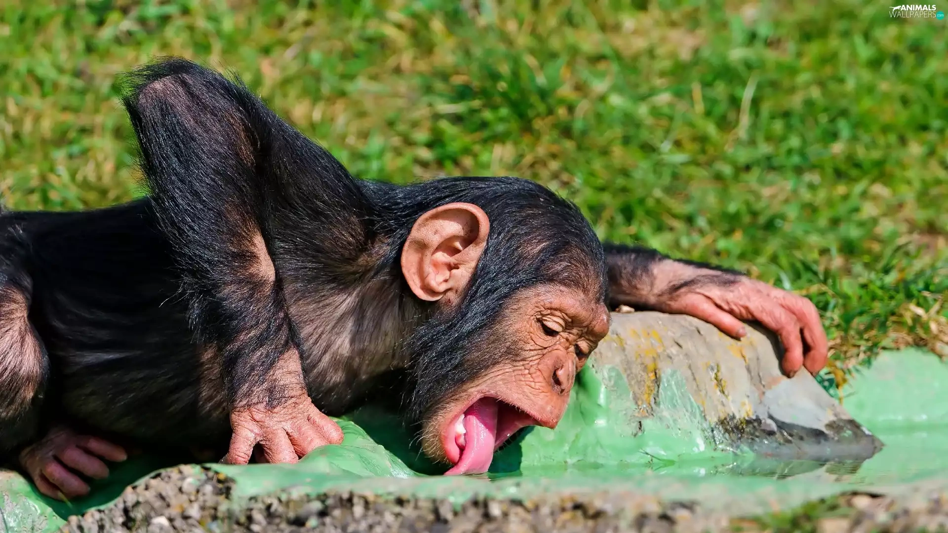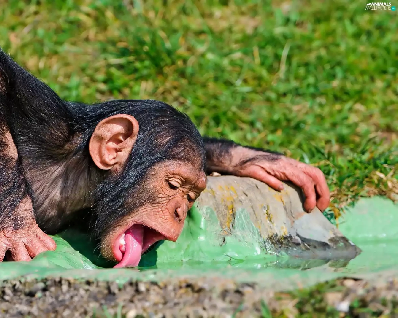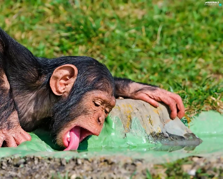 young, Tounge, water, chimpanzee