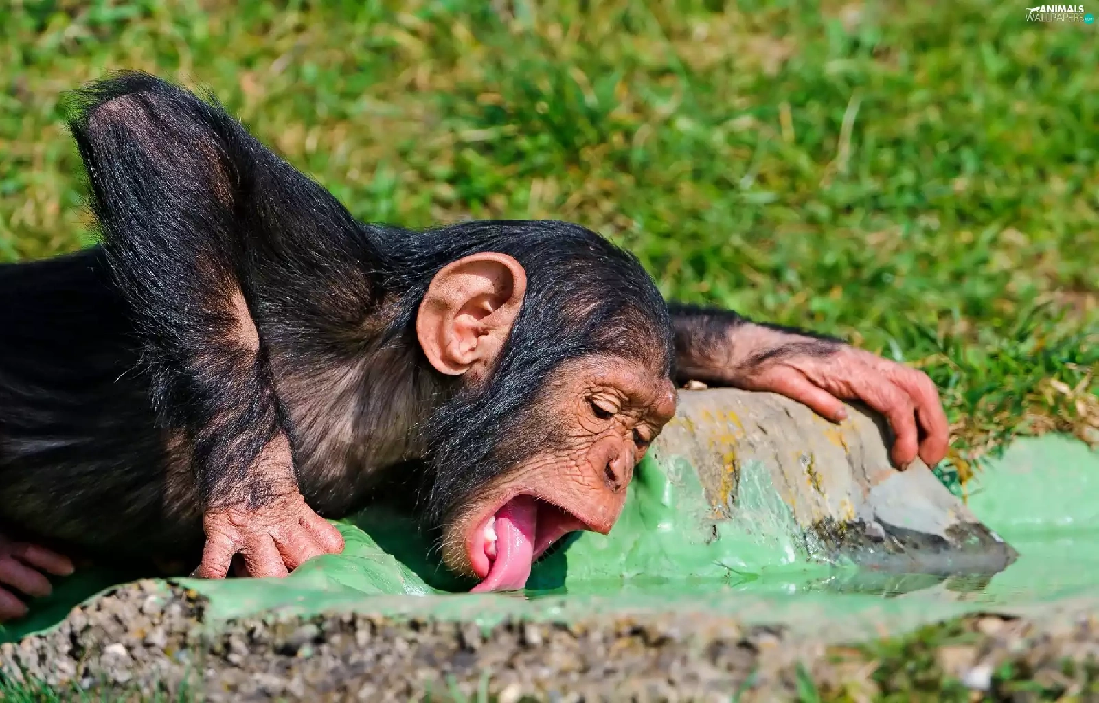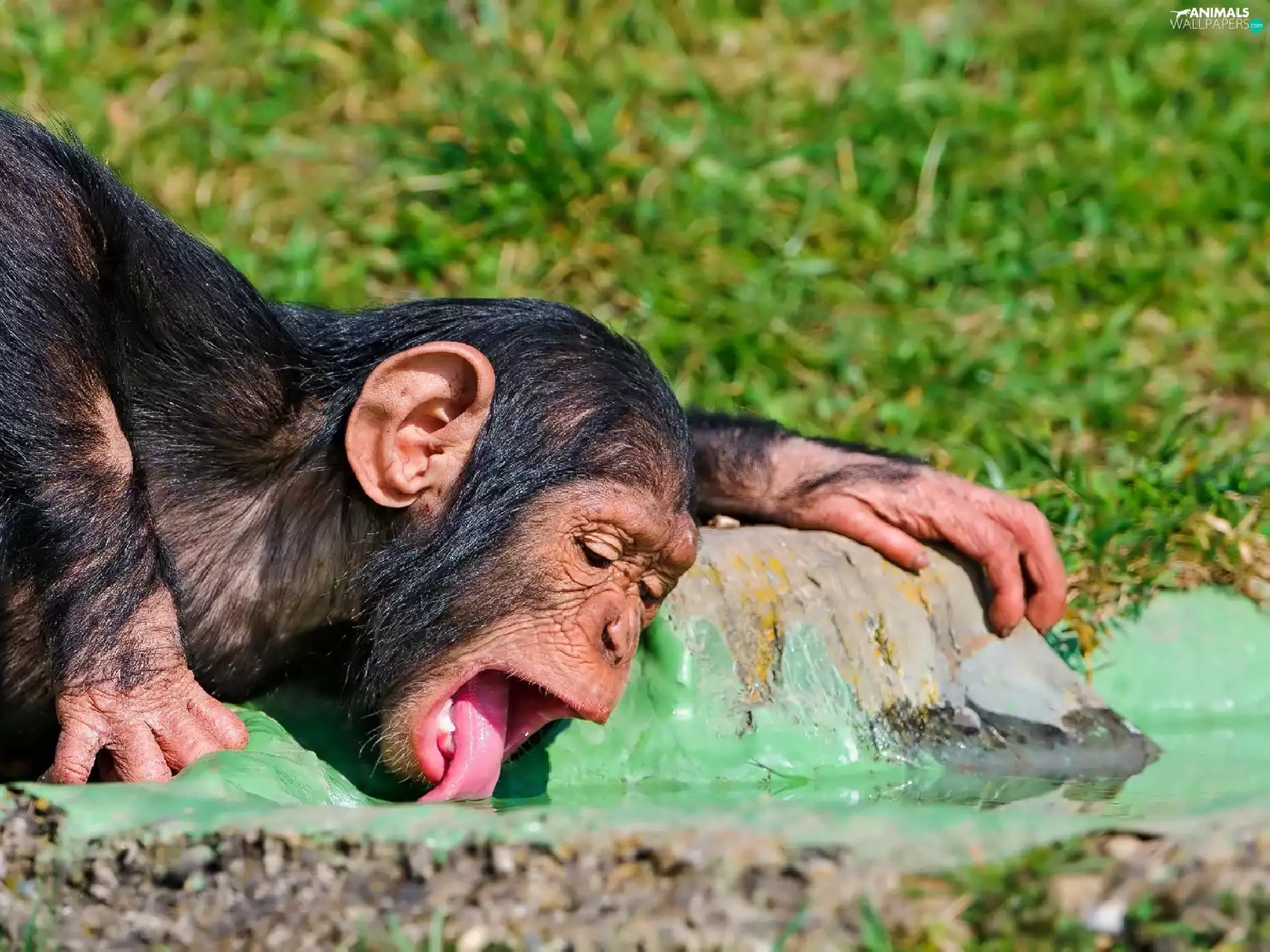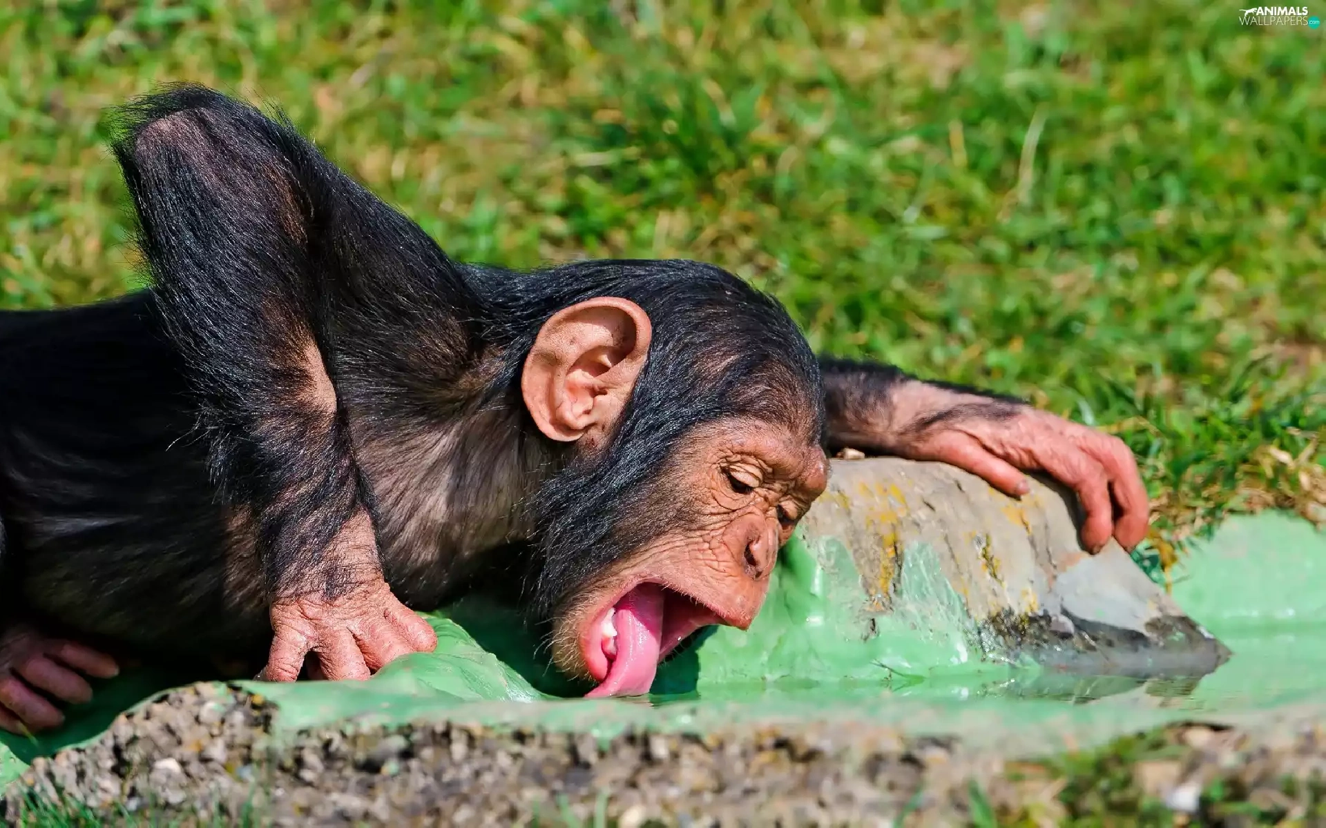 young, Tounge, water, chimpanzee