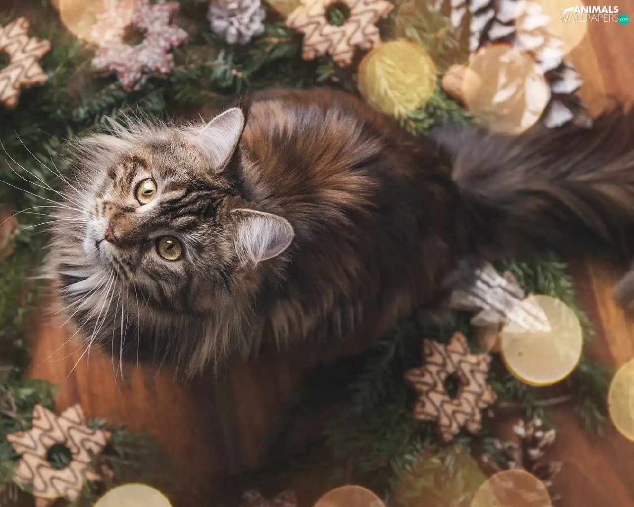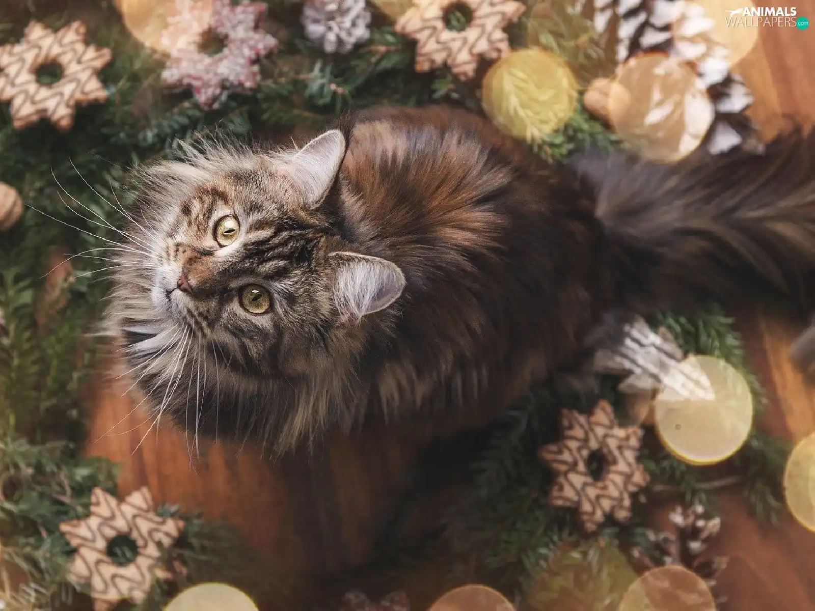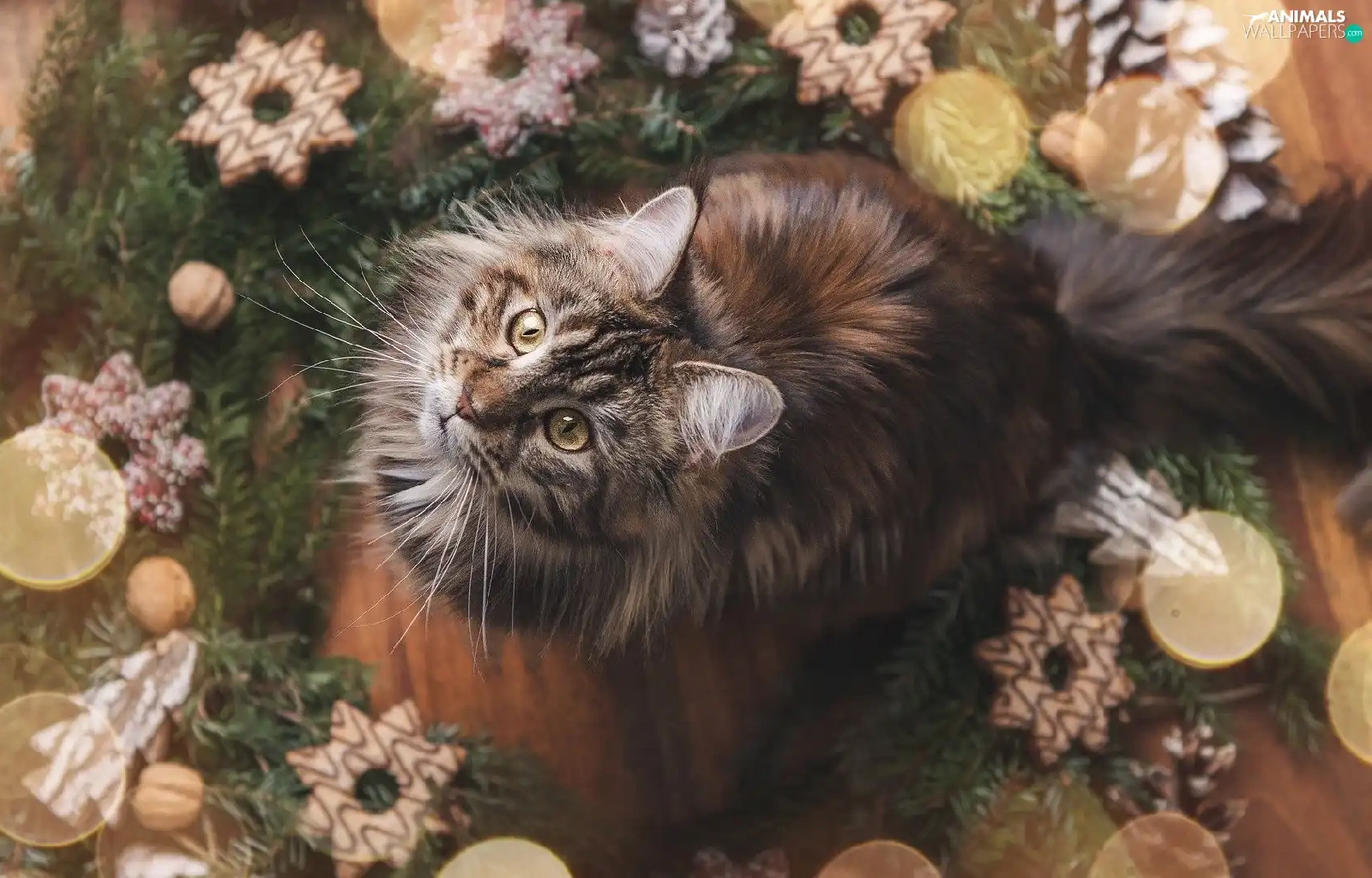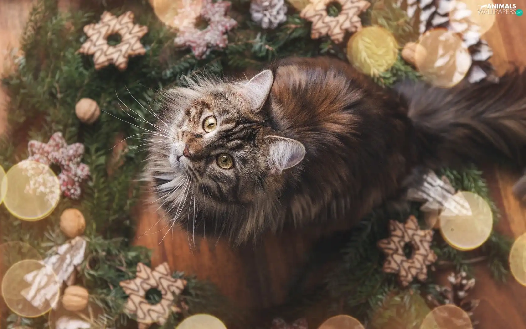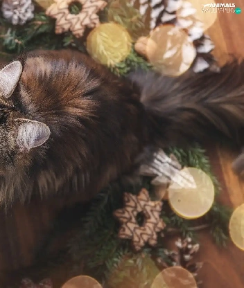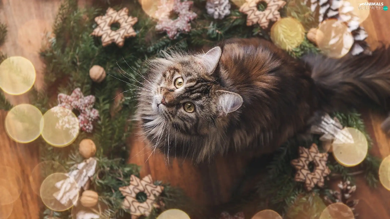 cat, Christmas, decoration, Maine Coon