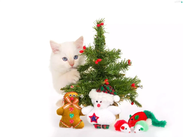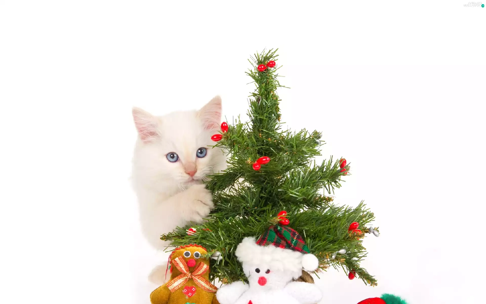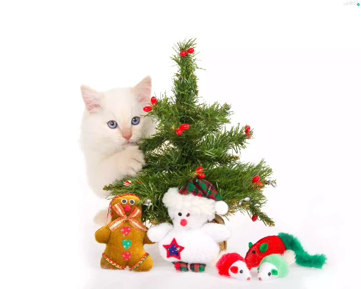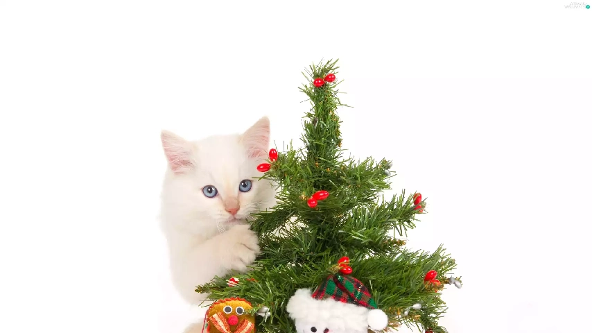 kitten, christmas, gifts, christmas tree