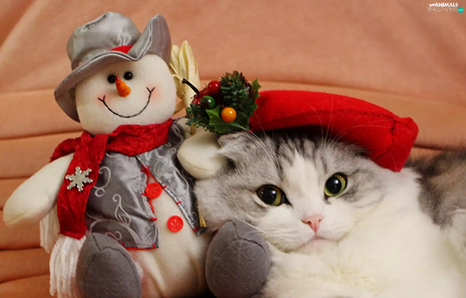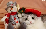 christmas, kitten, Snowman