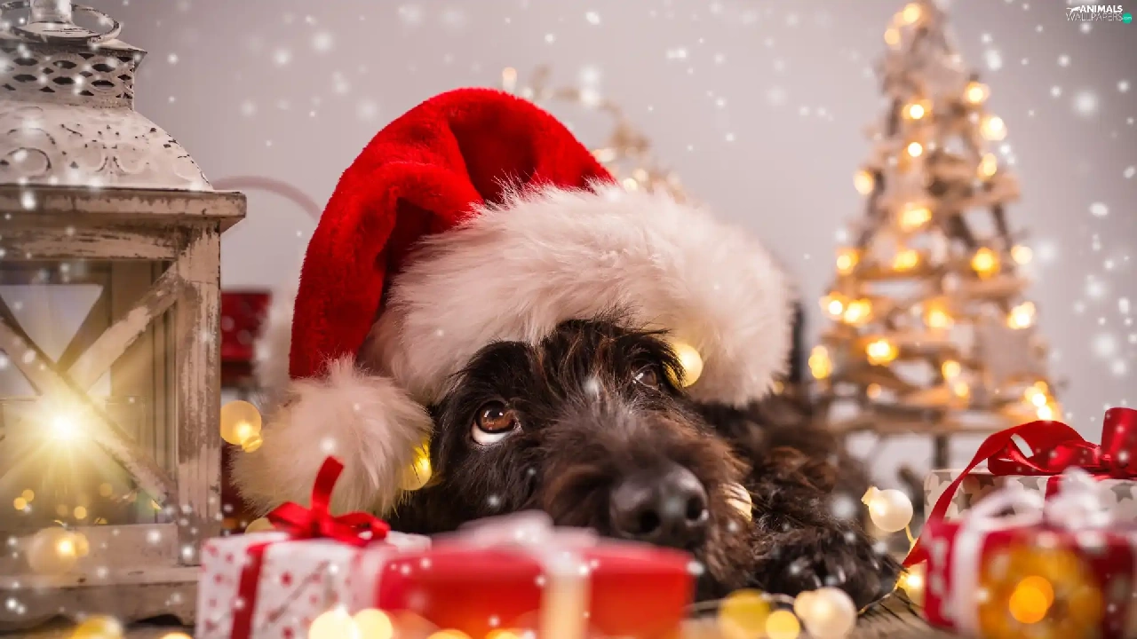 decor, Hat, lantern, Nicholas, dog, Christmas, Thanksgiving