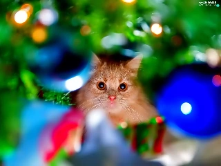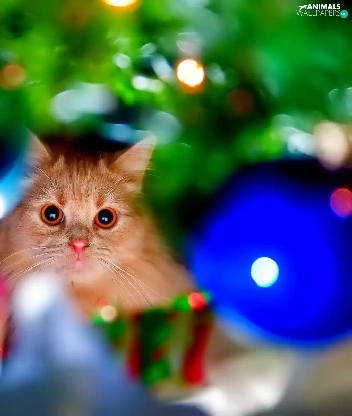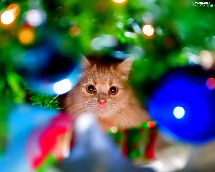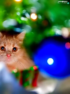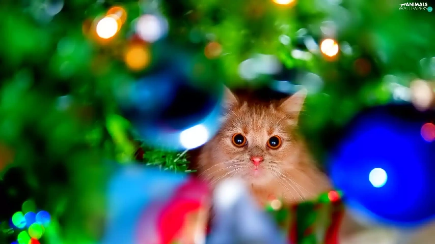 ginger, christmas tree, christmas, kitten