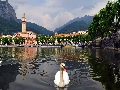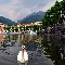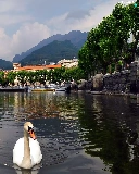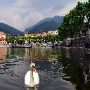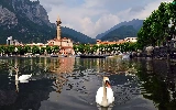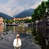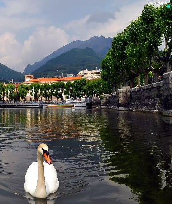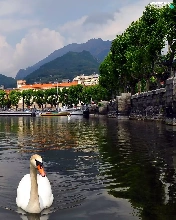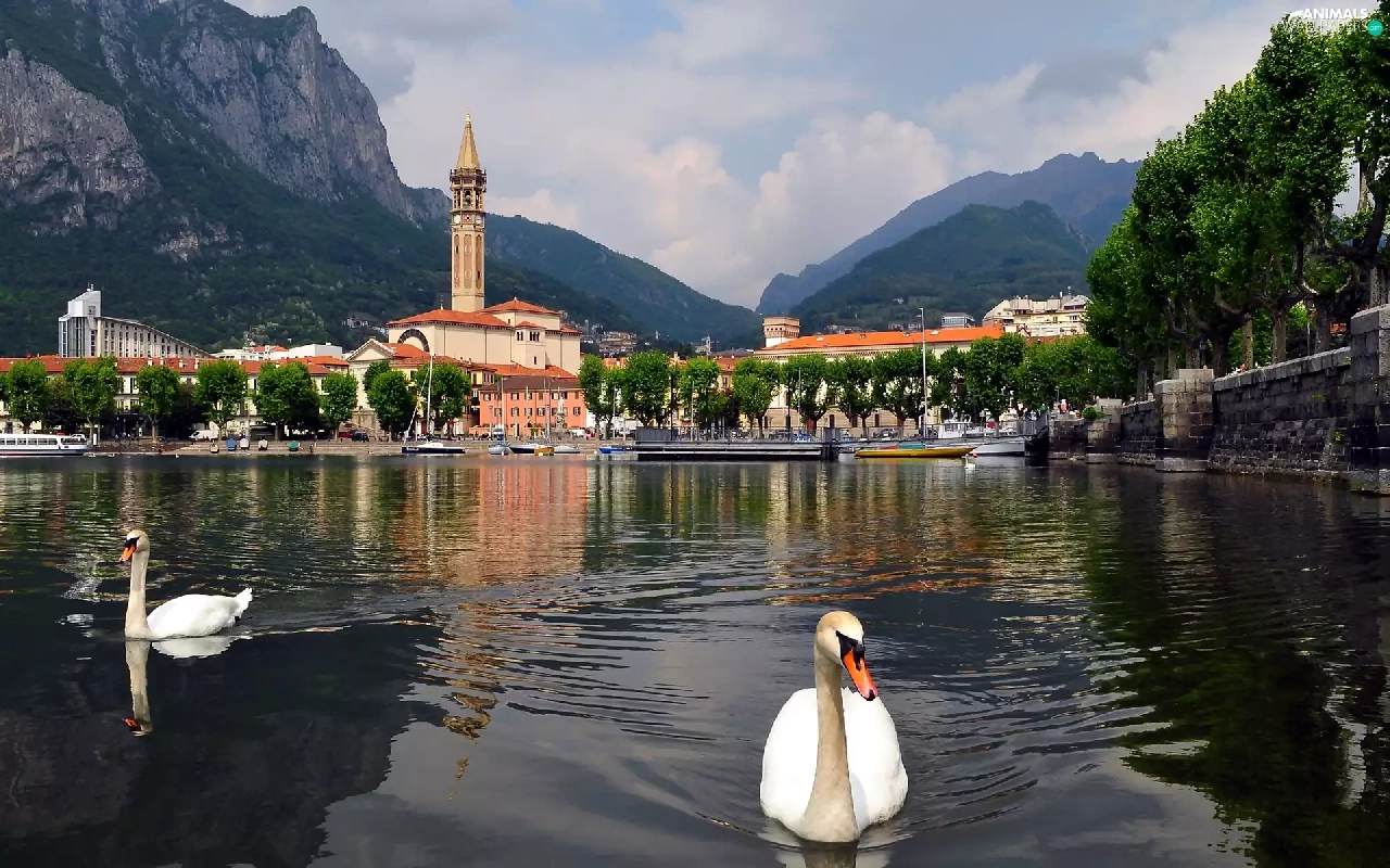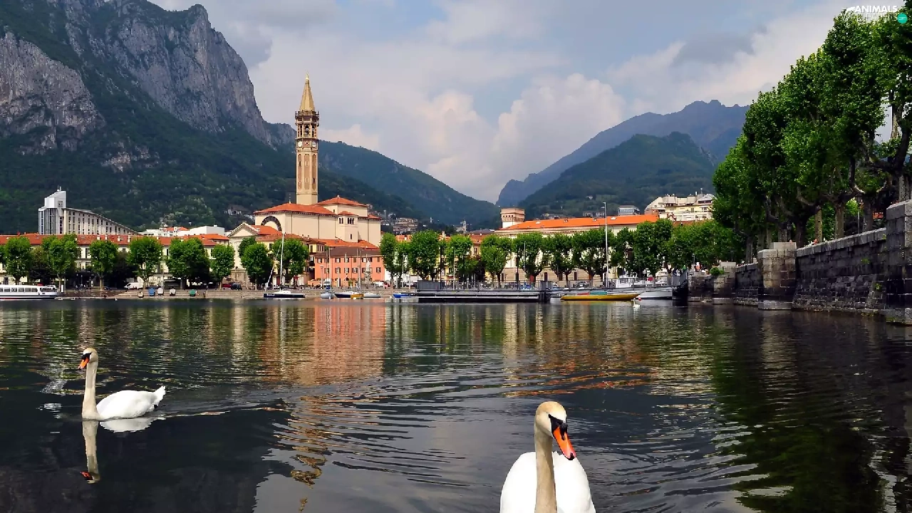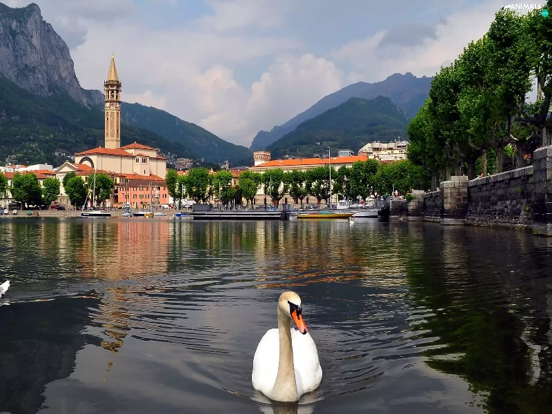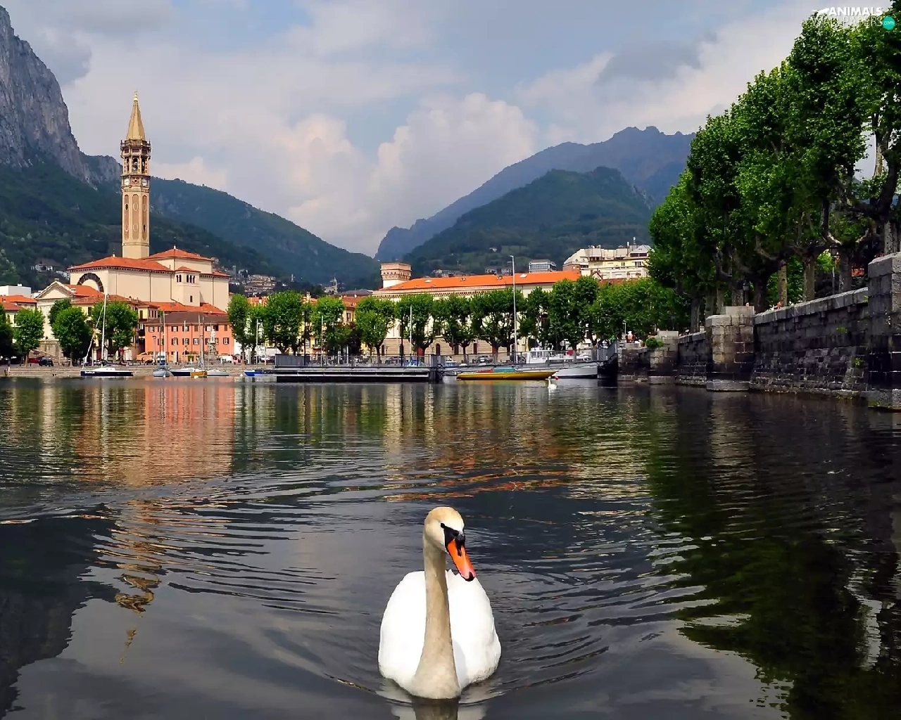 Swan, Lake Como, Church, Mountains, Town, Italy