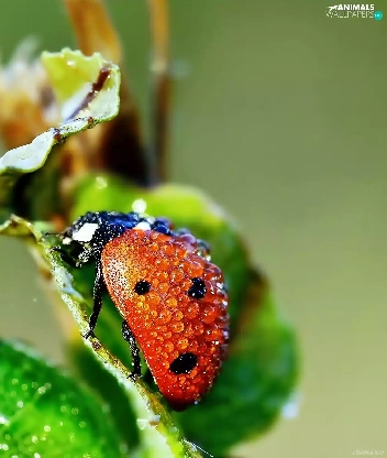 Leaf, Close, drops, water, ladybird