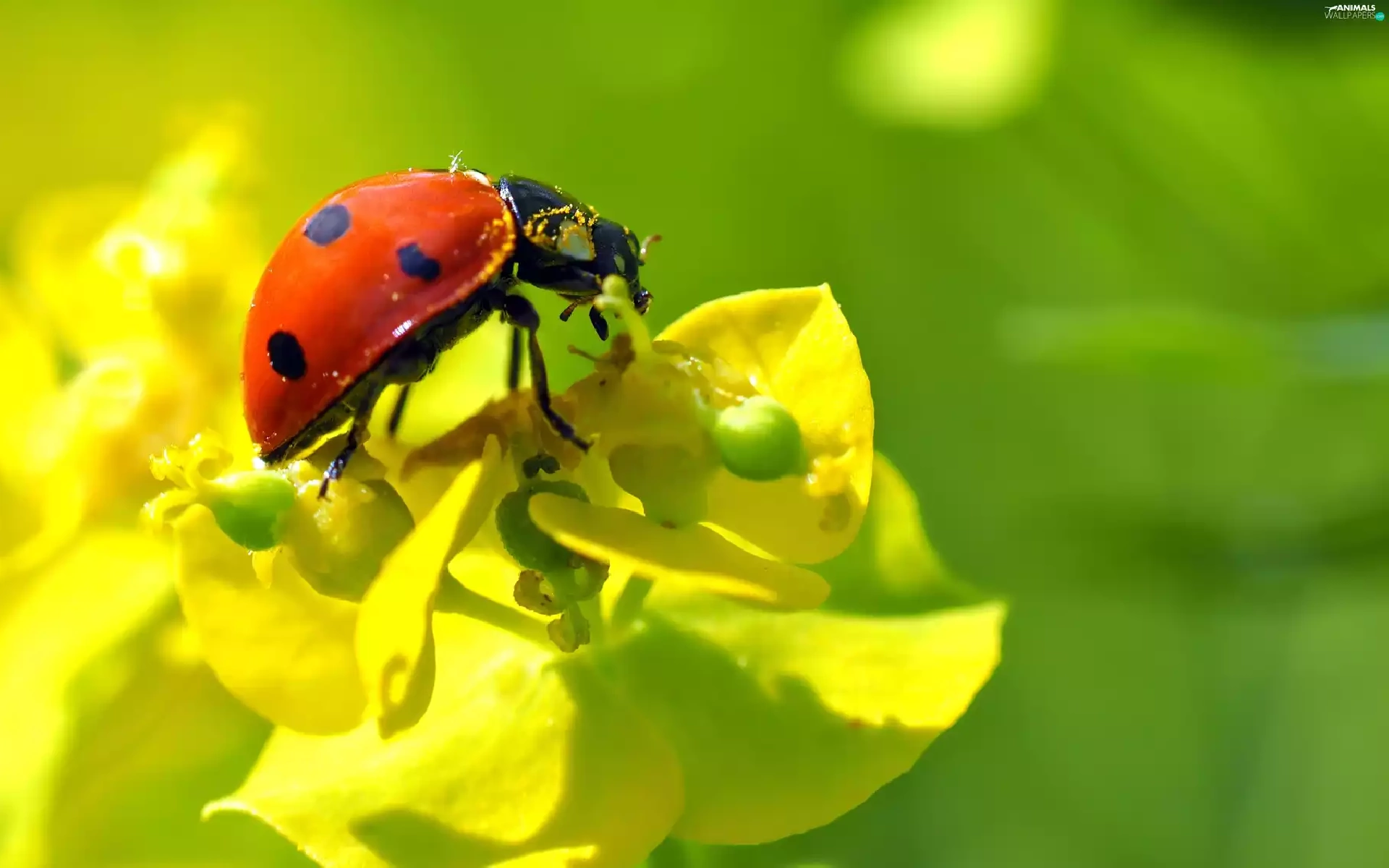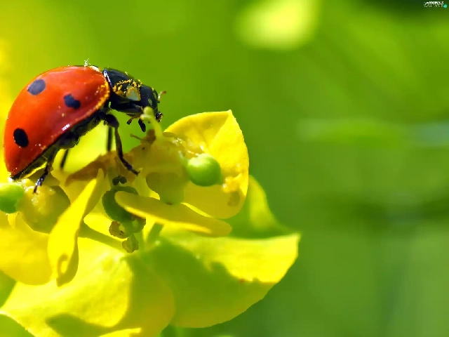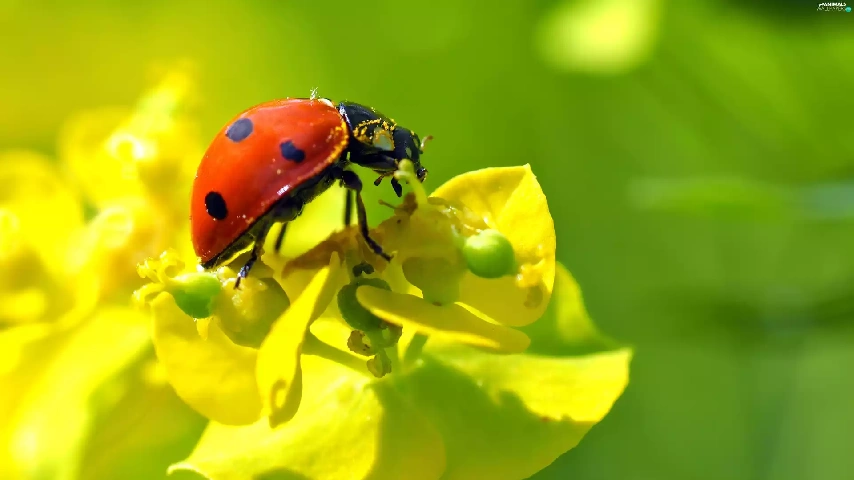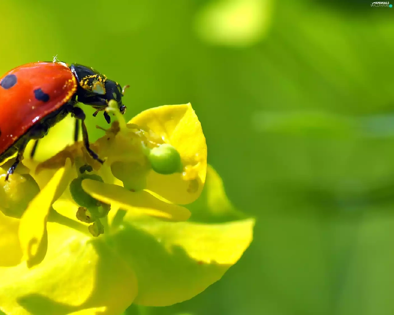 Close, ladybird, Flowers