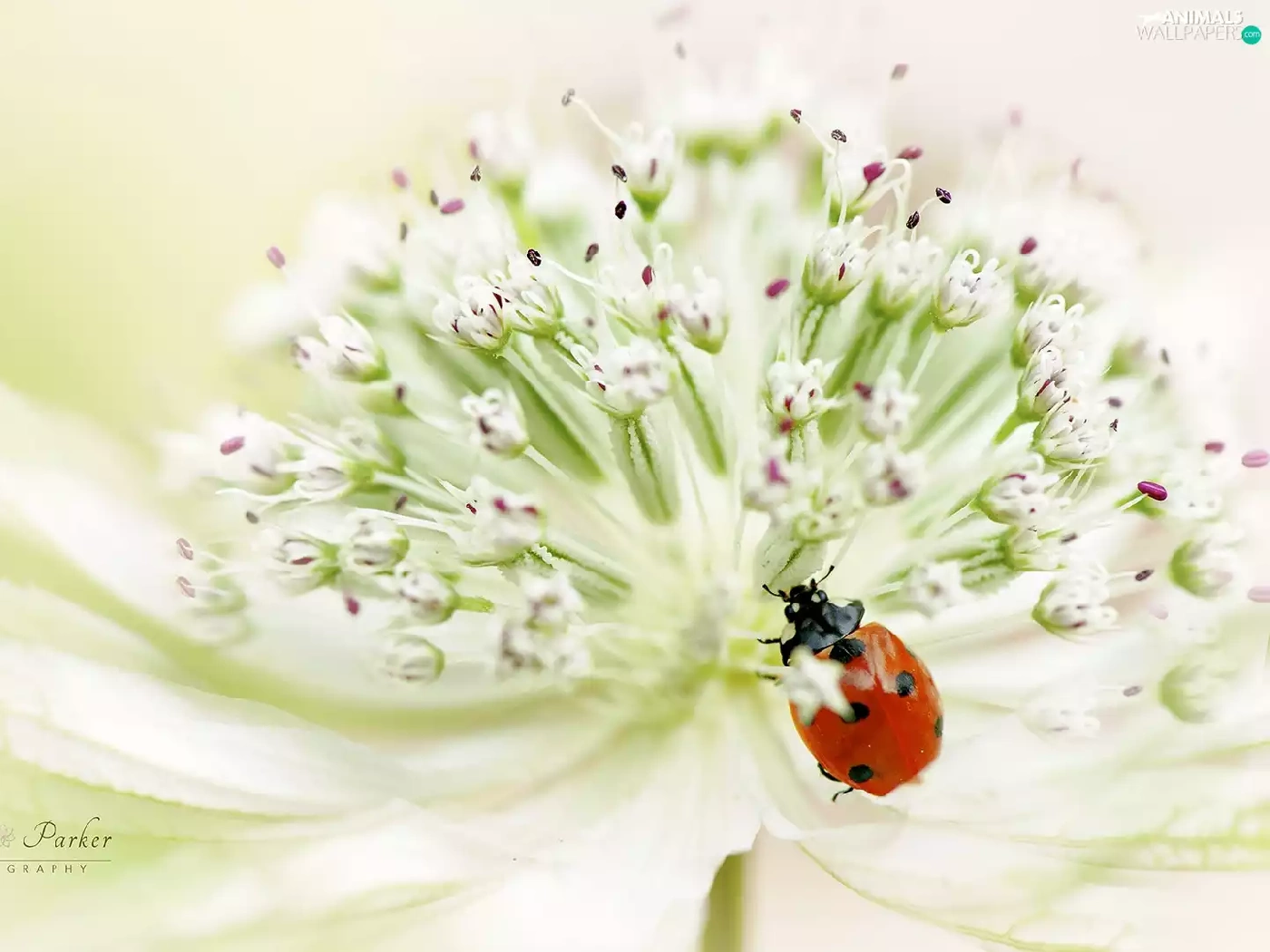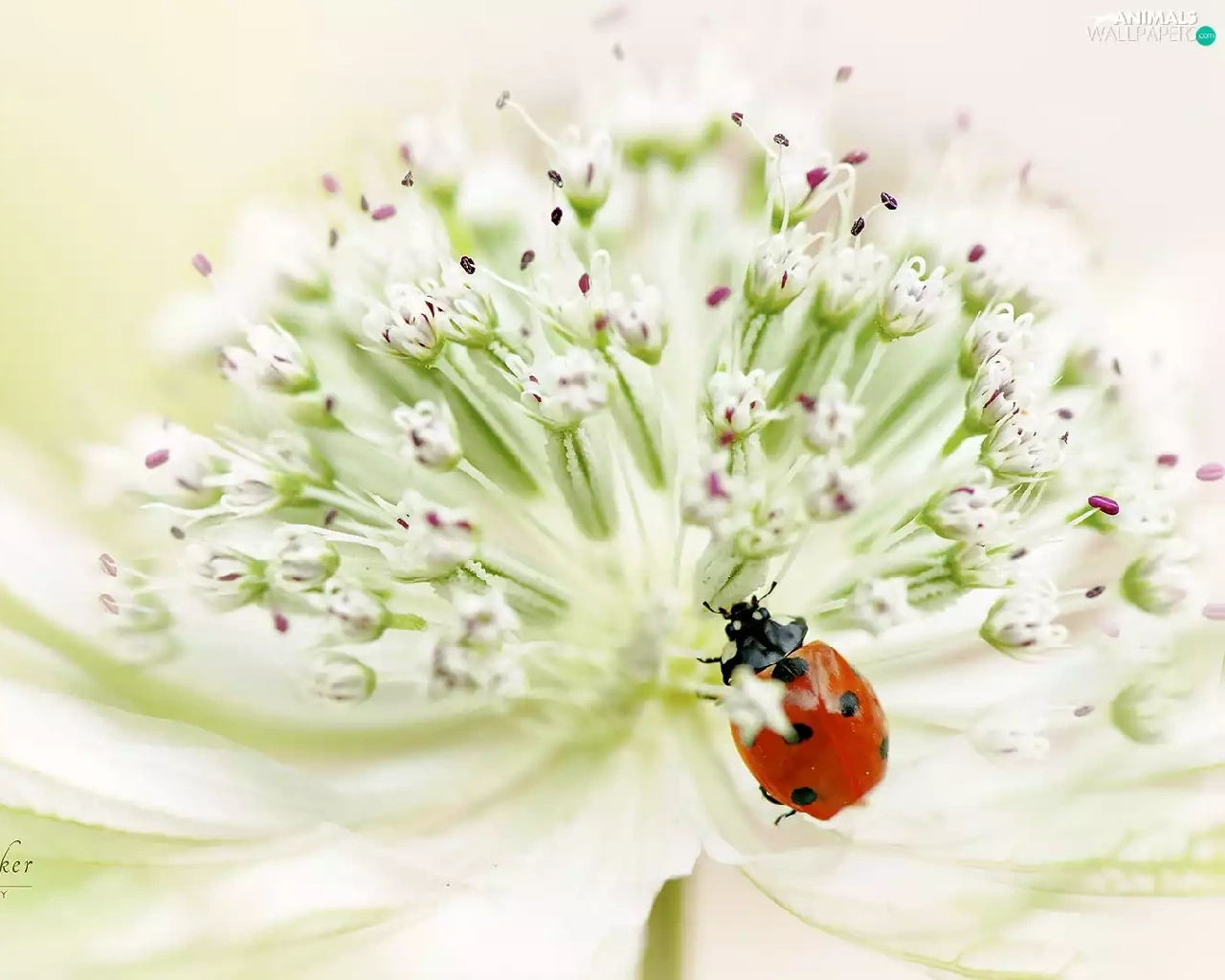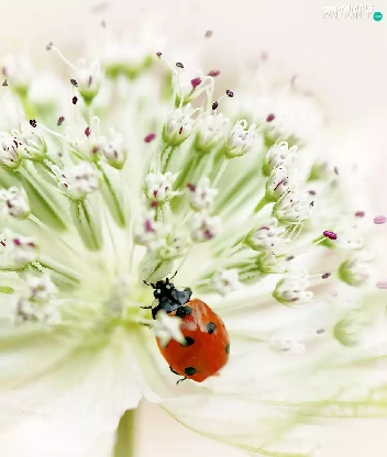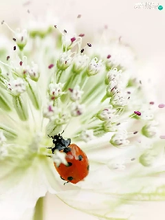 Colourfull Flowers, ladybird, Close, Great Masterwort