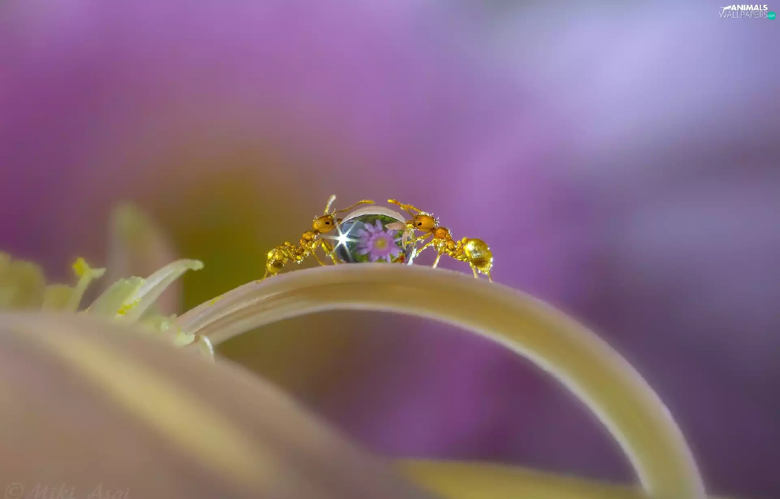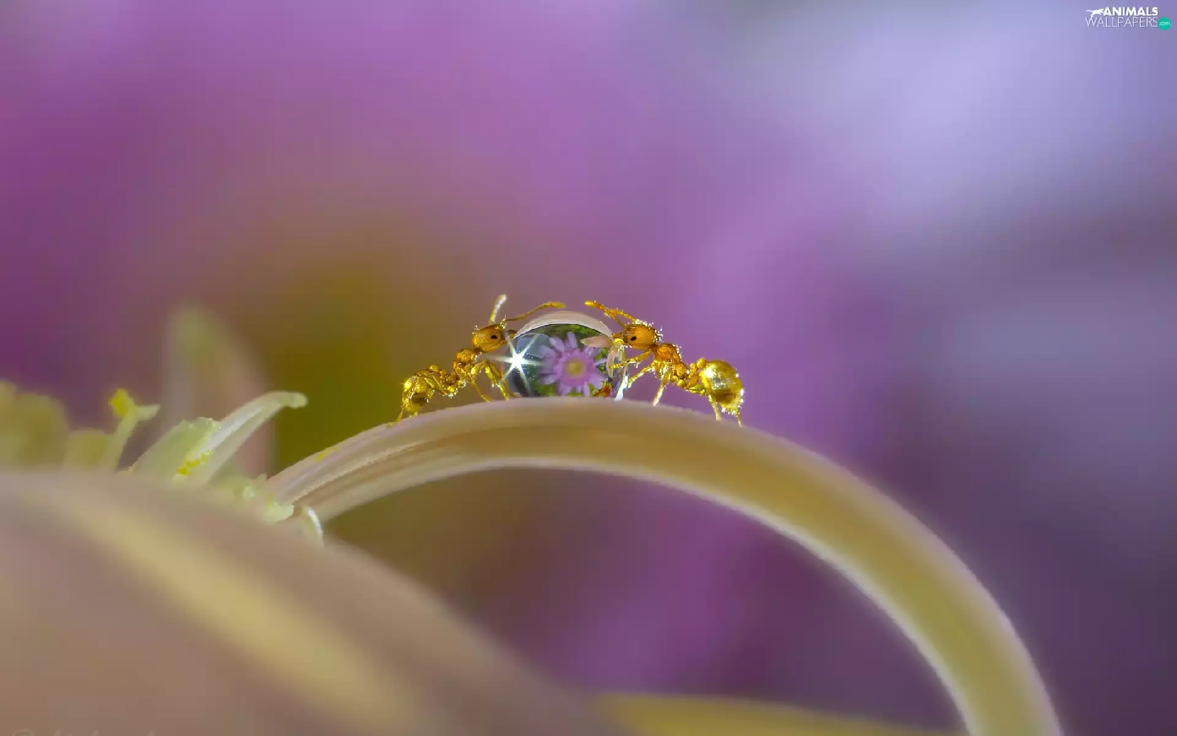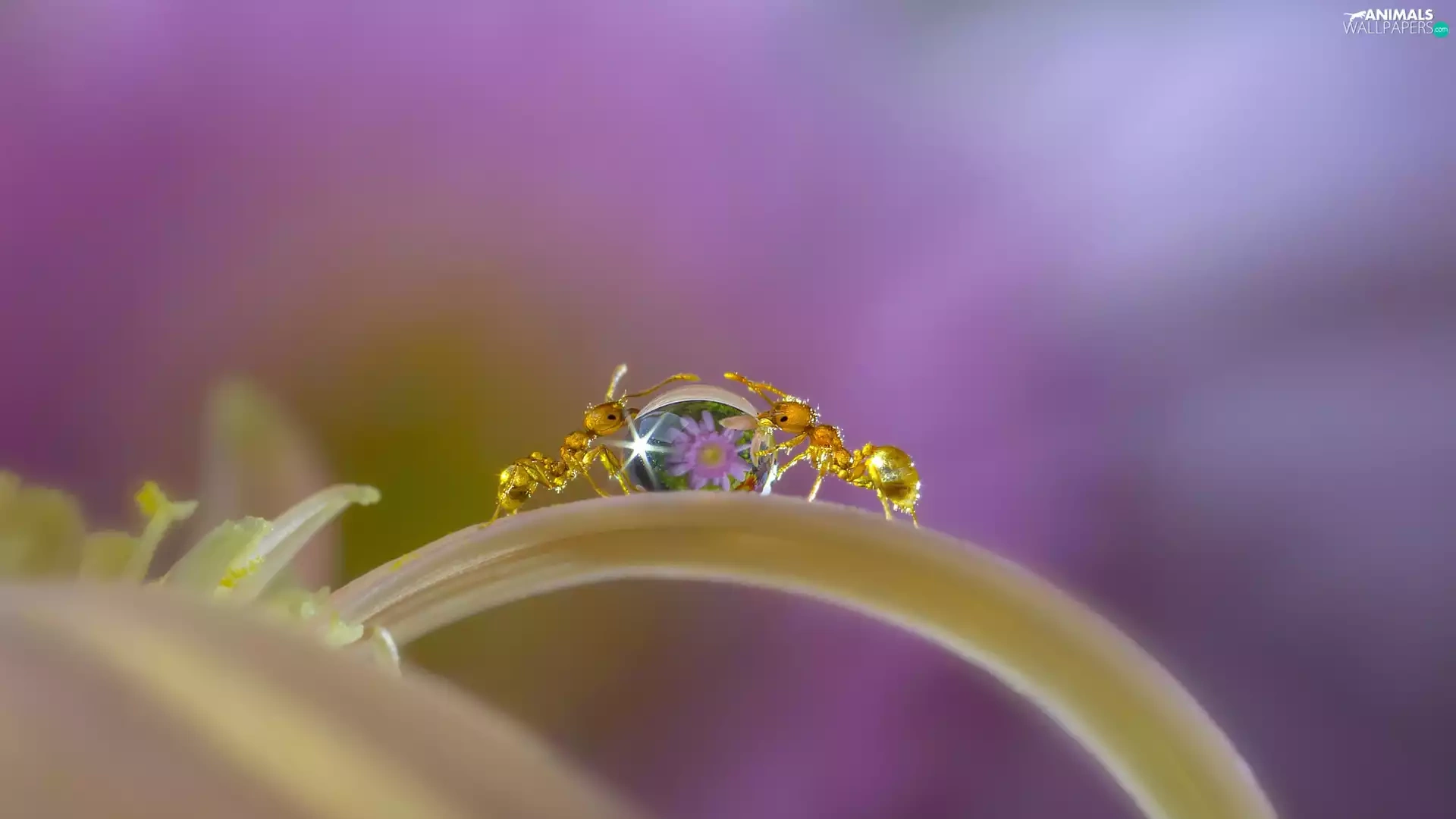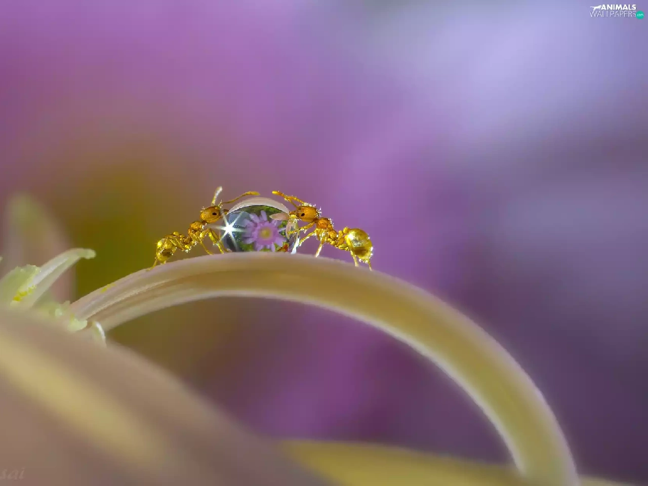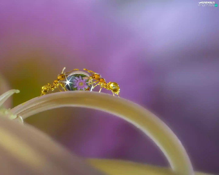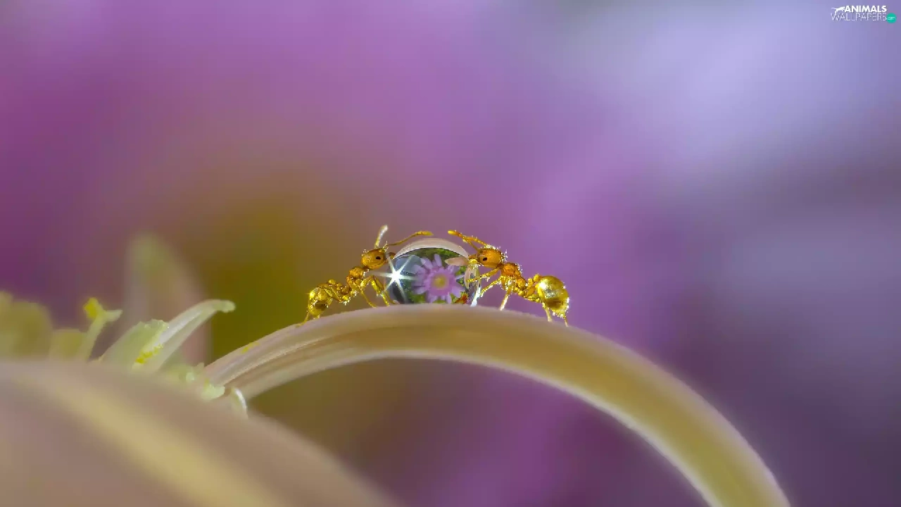 drop, Close, petal, Flowers, ants
