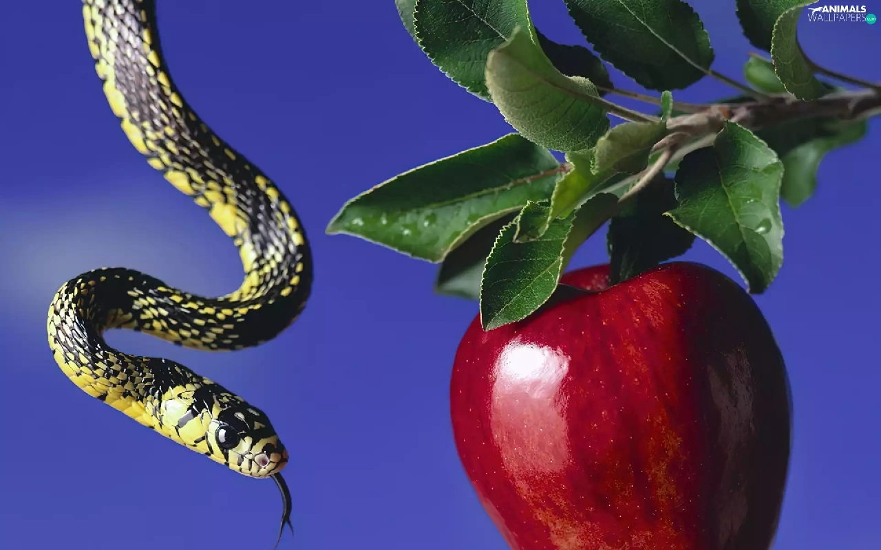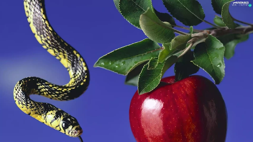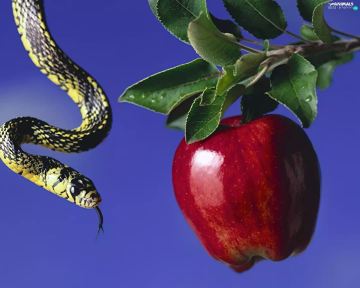 Snake, fruit, Apple, close