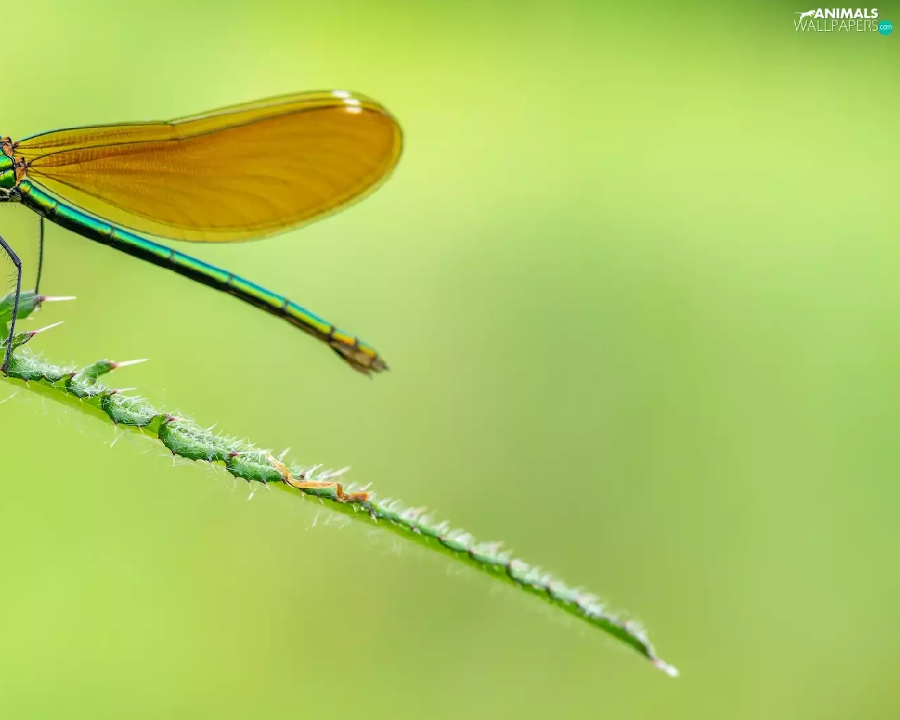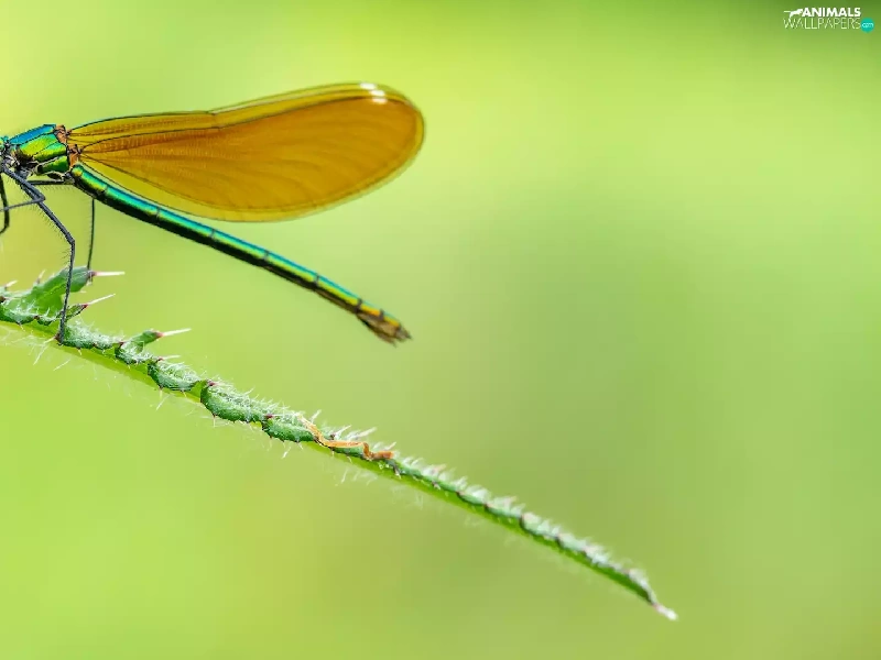 dragon-fly, plant, Close, Calopteryx virgo