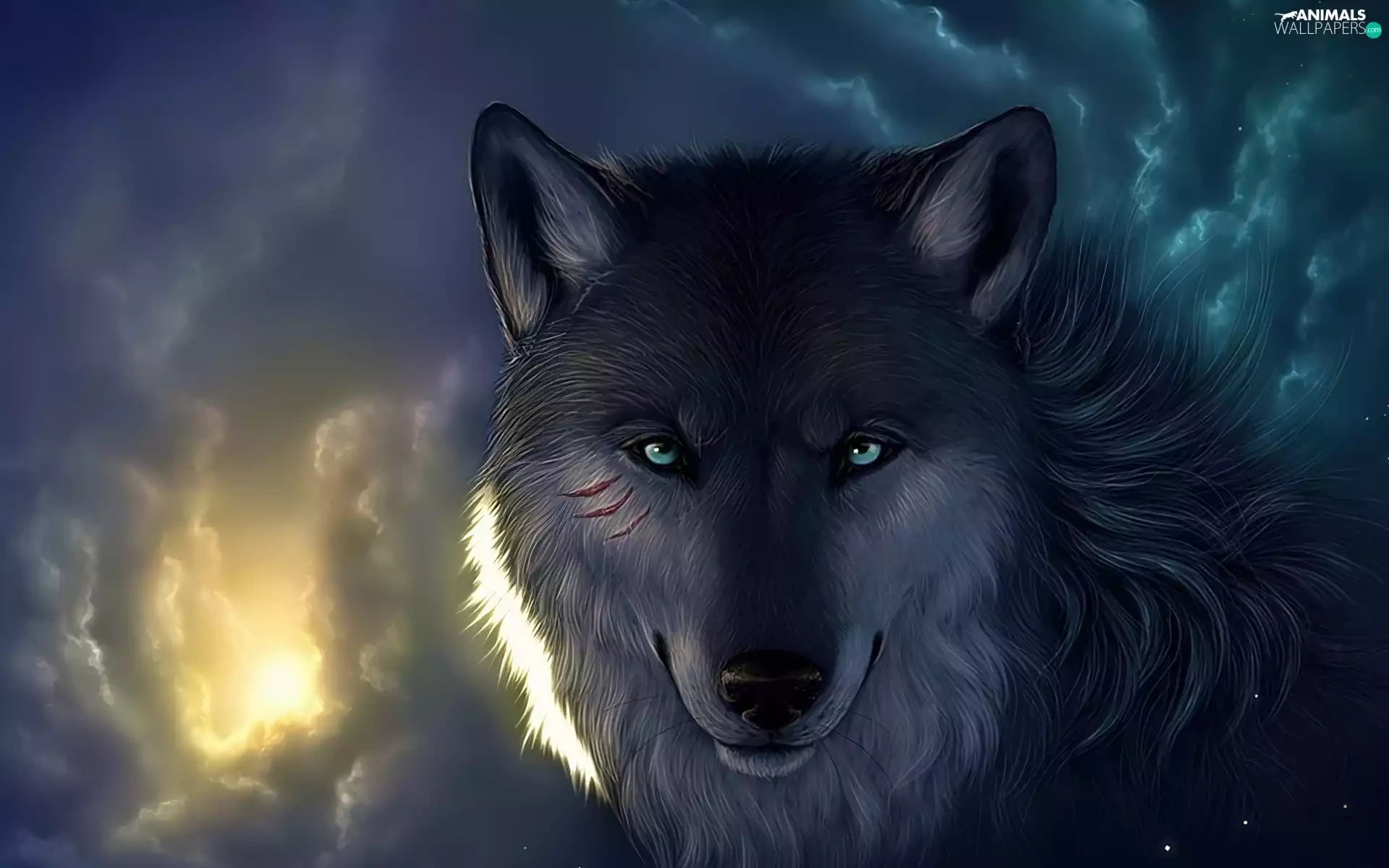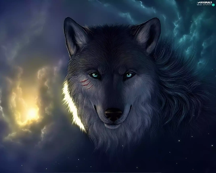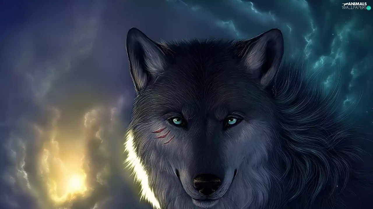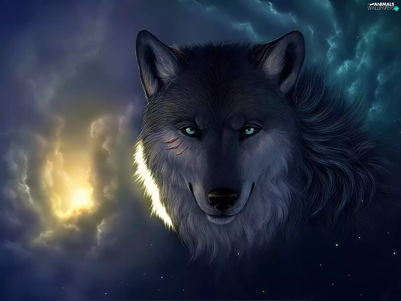 clouds, Wolf, Eyes