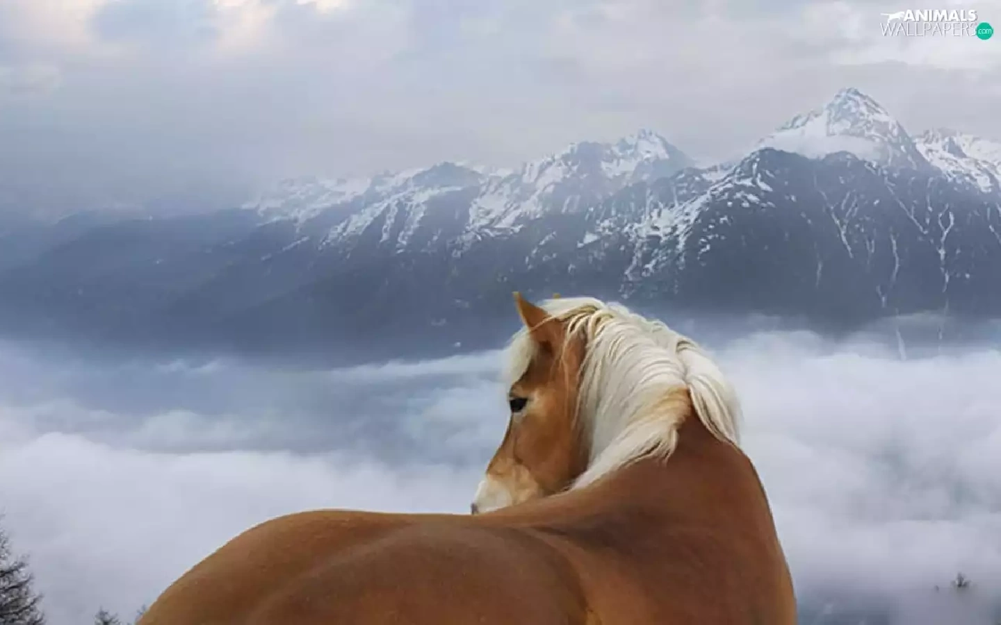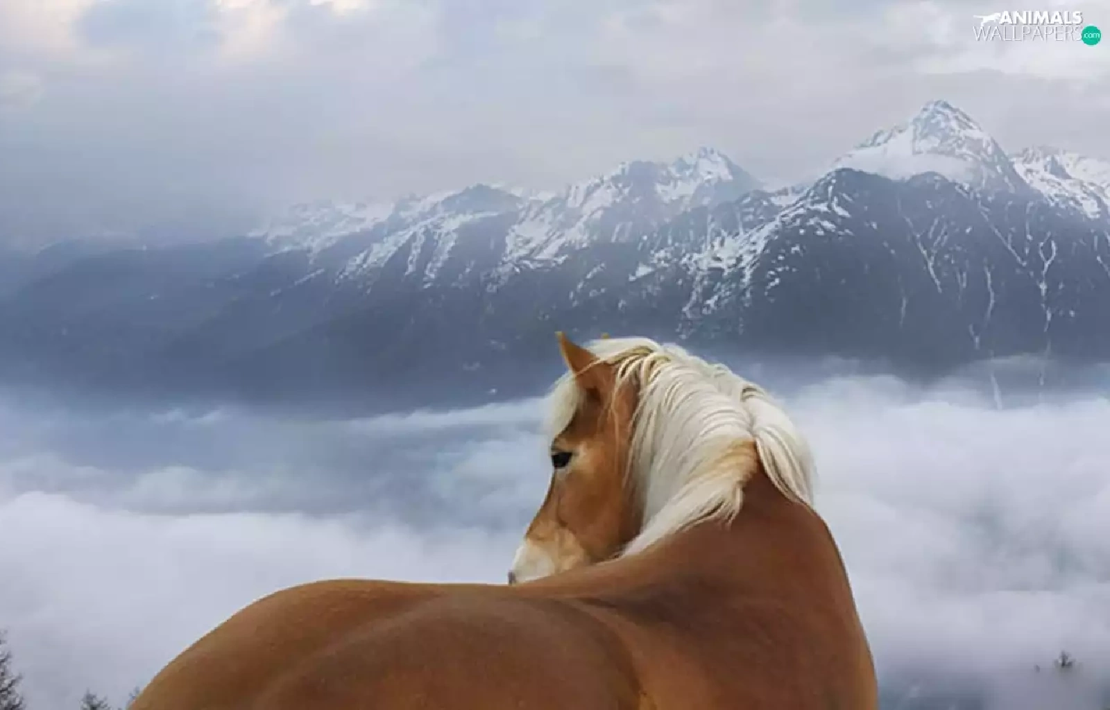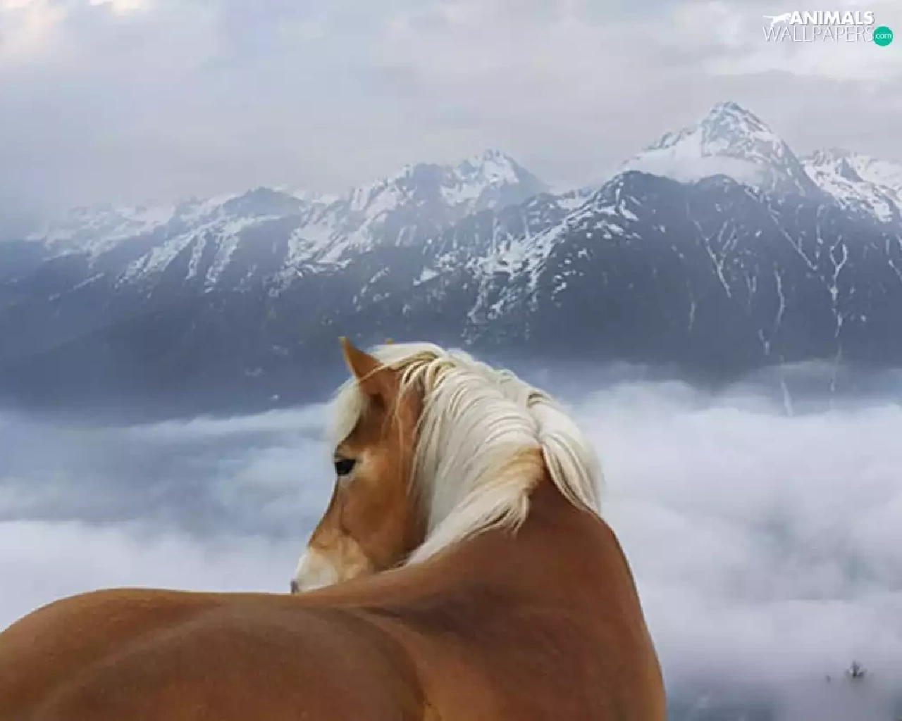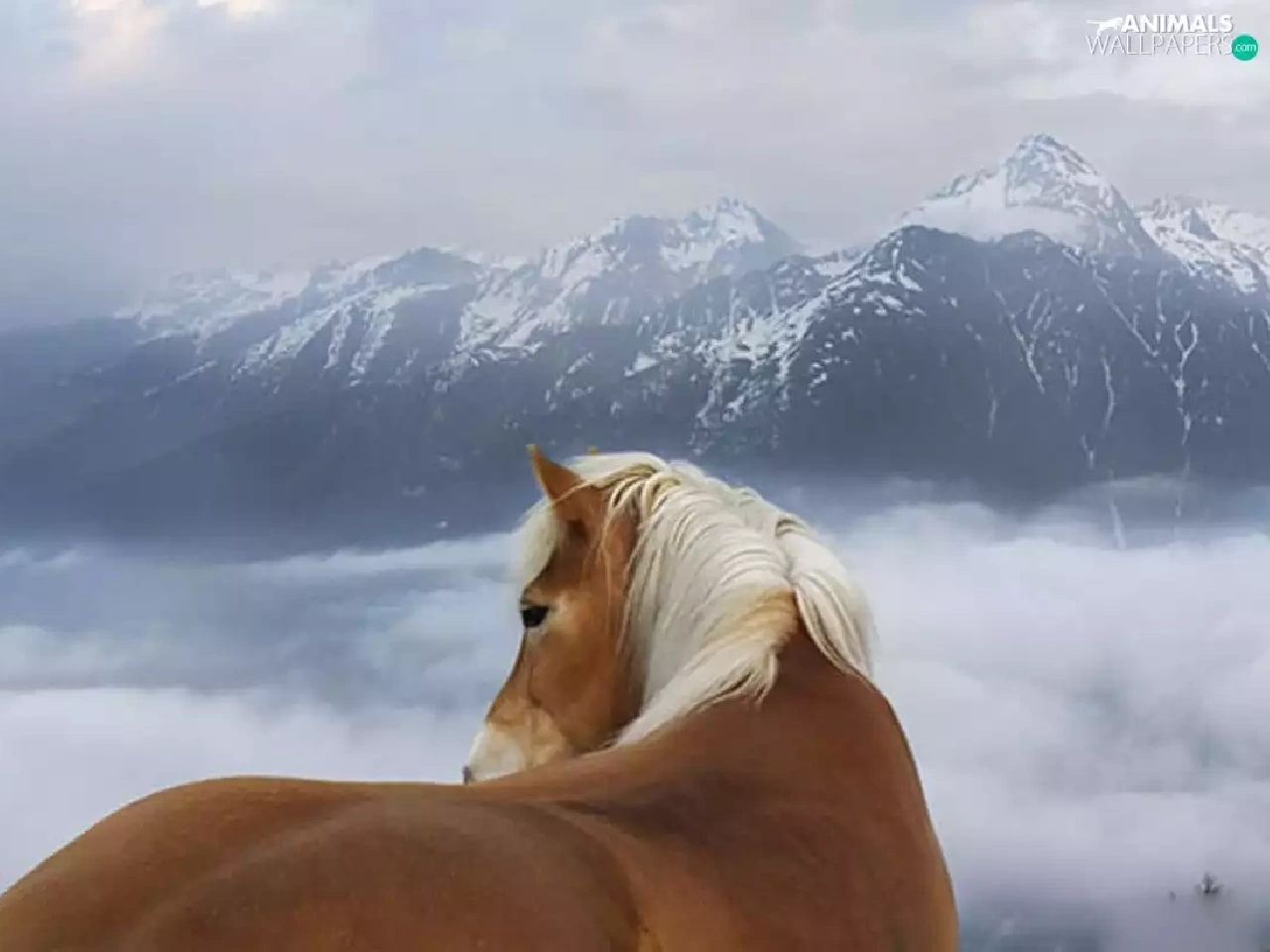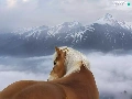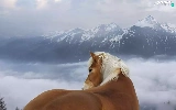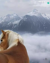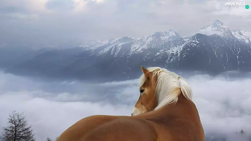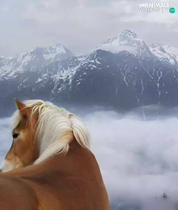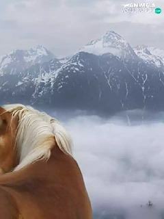 clouds, Mountains, Horse