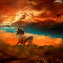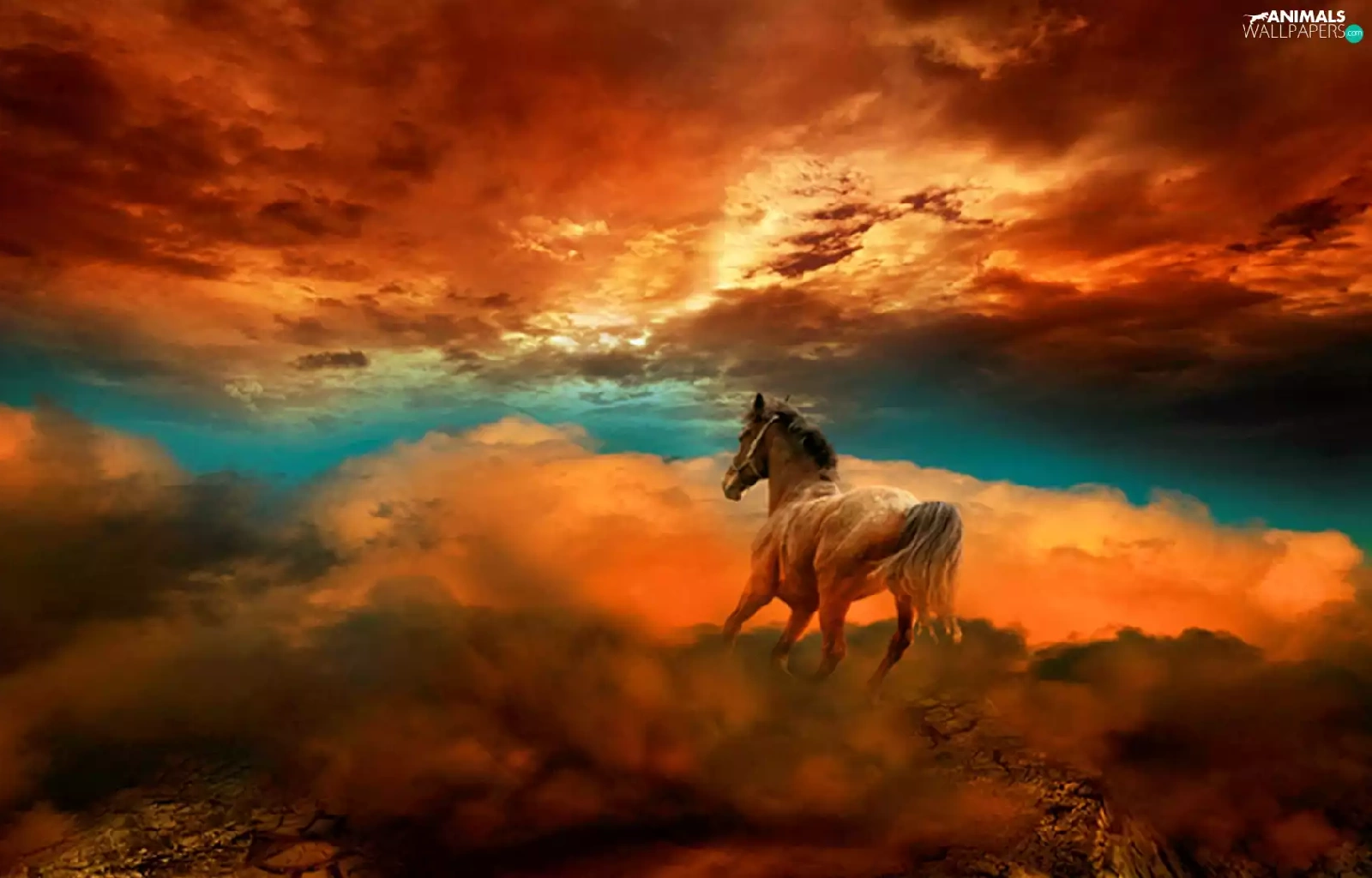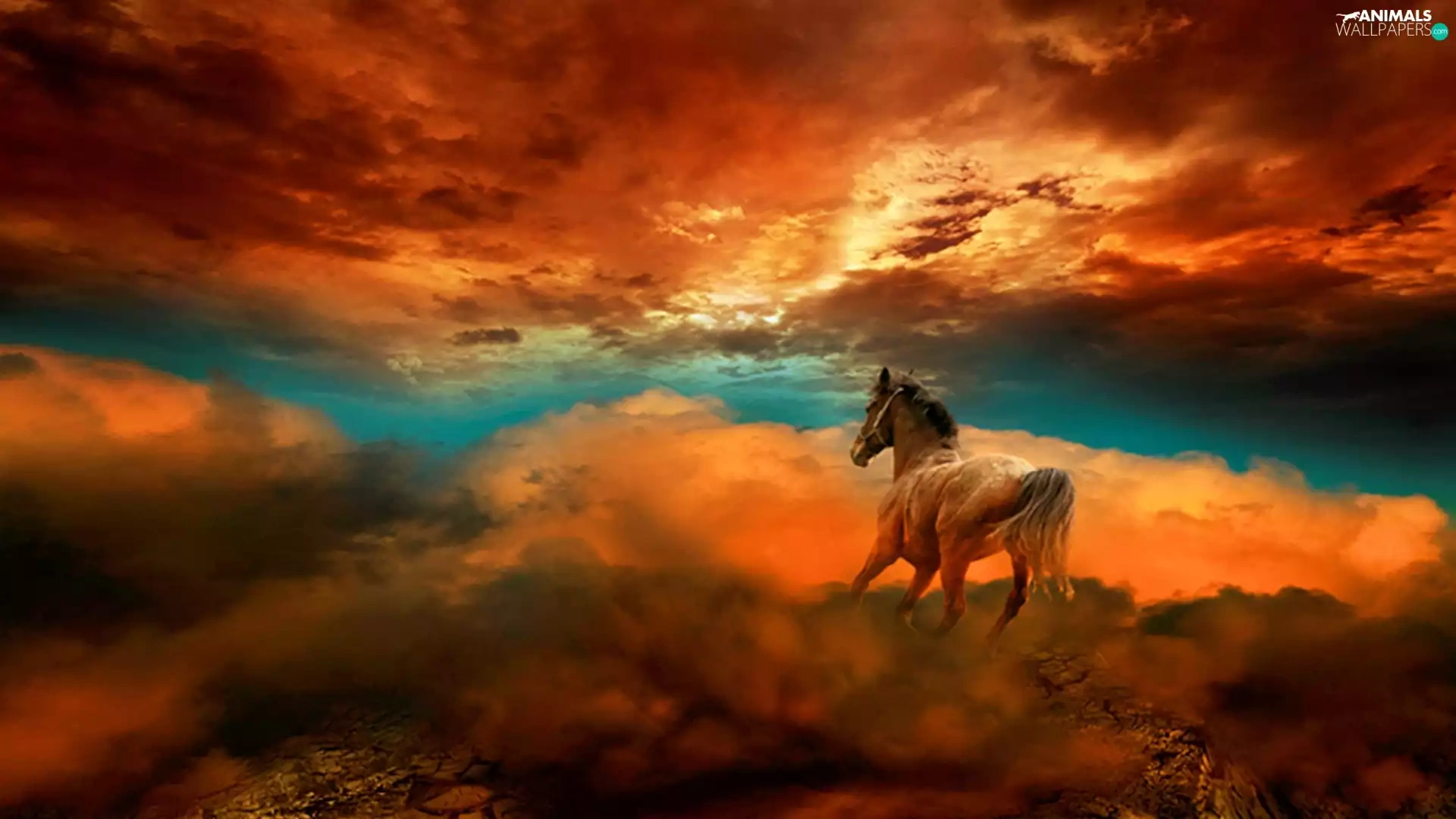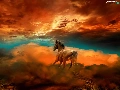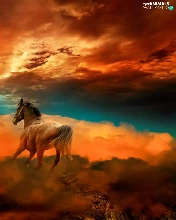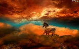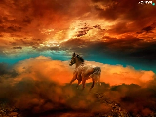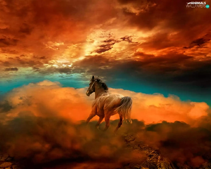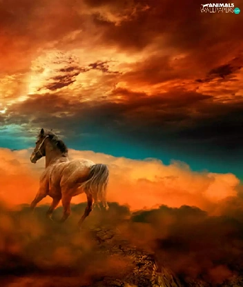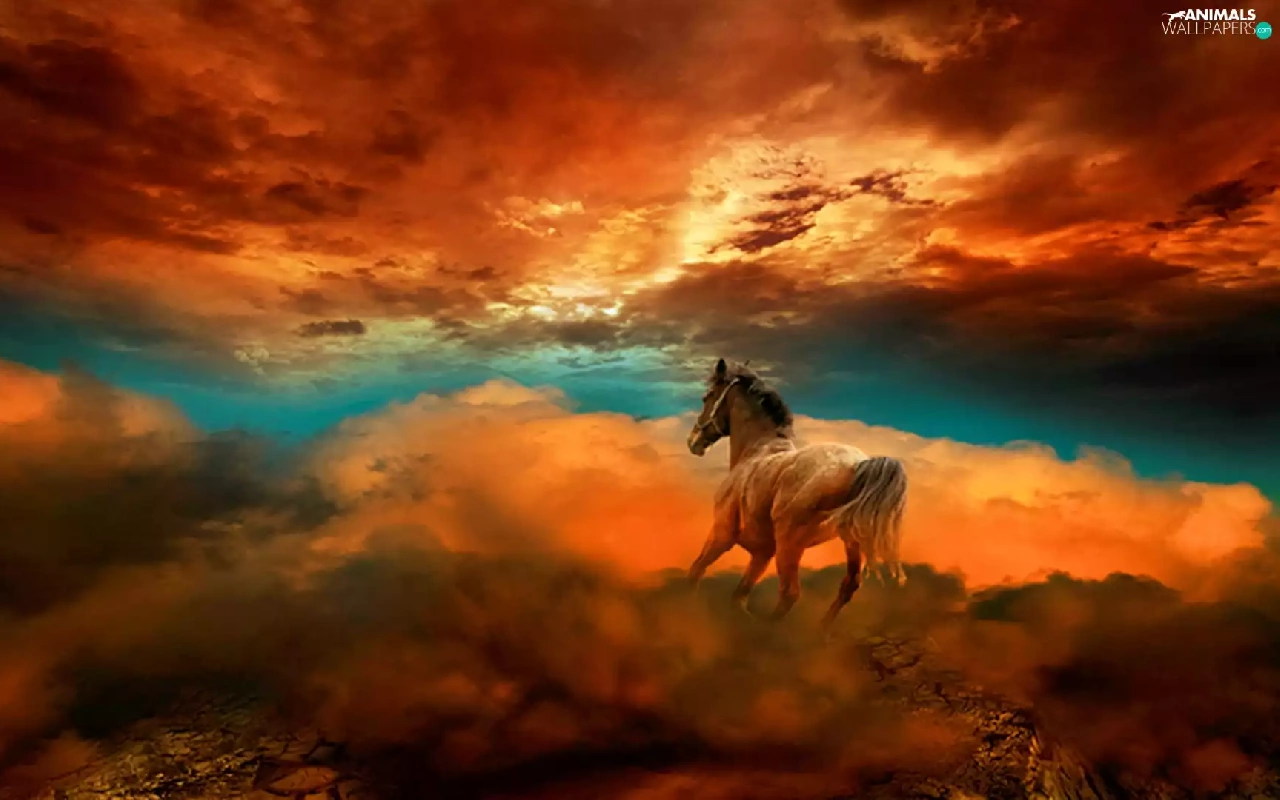 Horse, west, sun, clouds