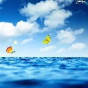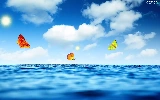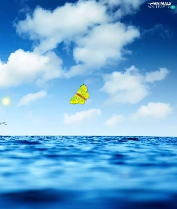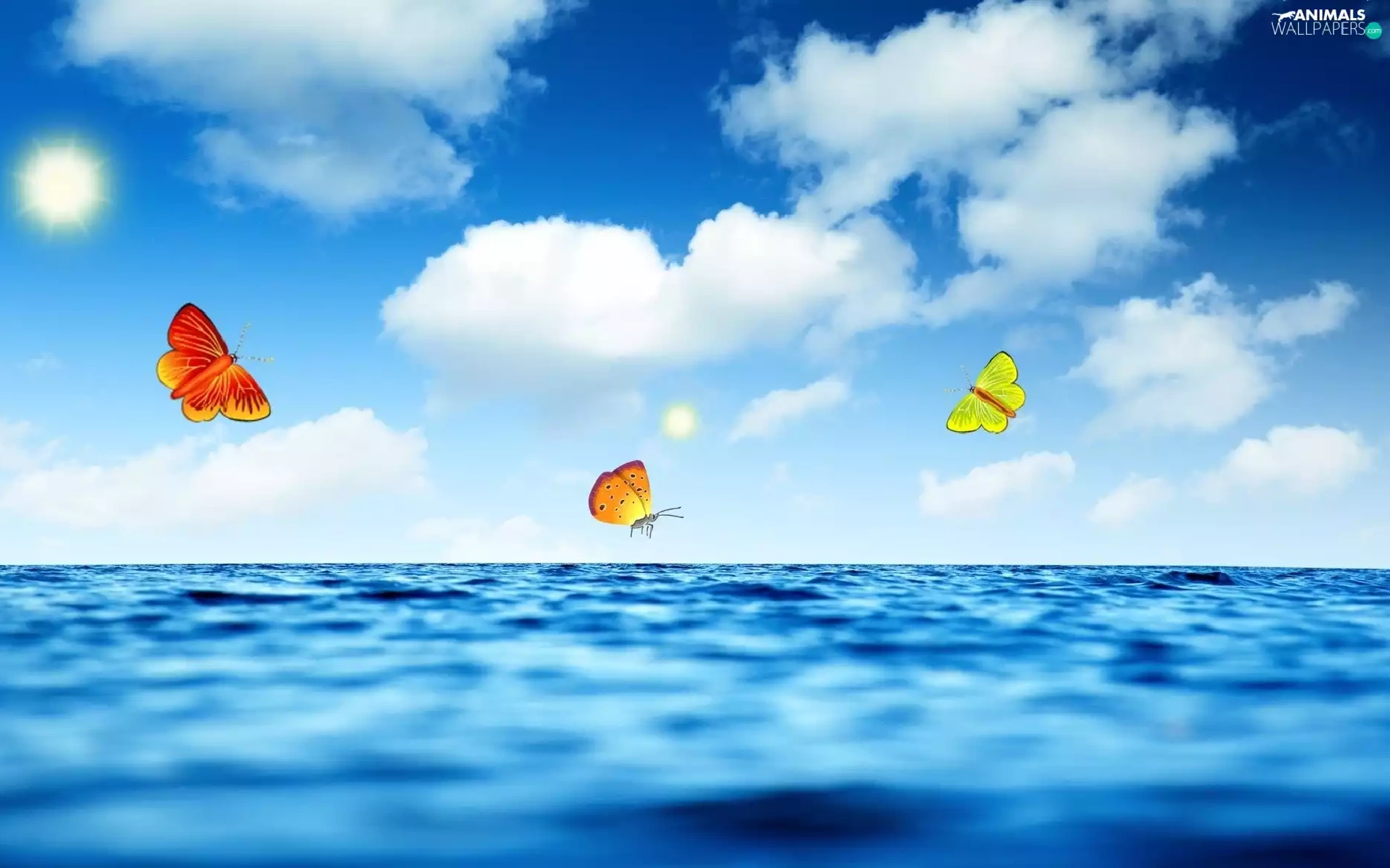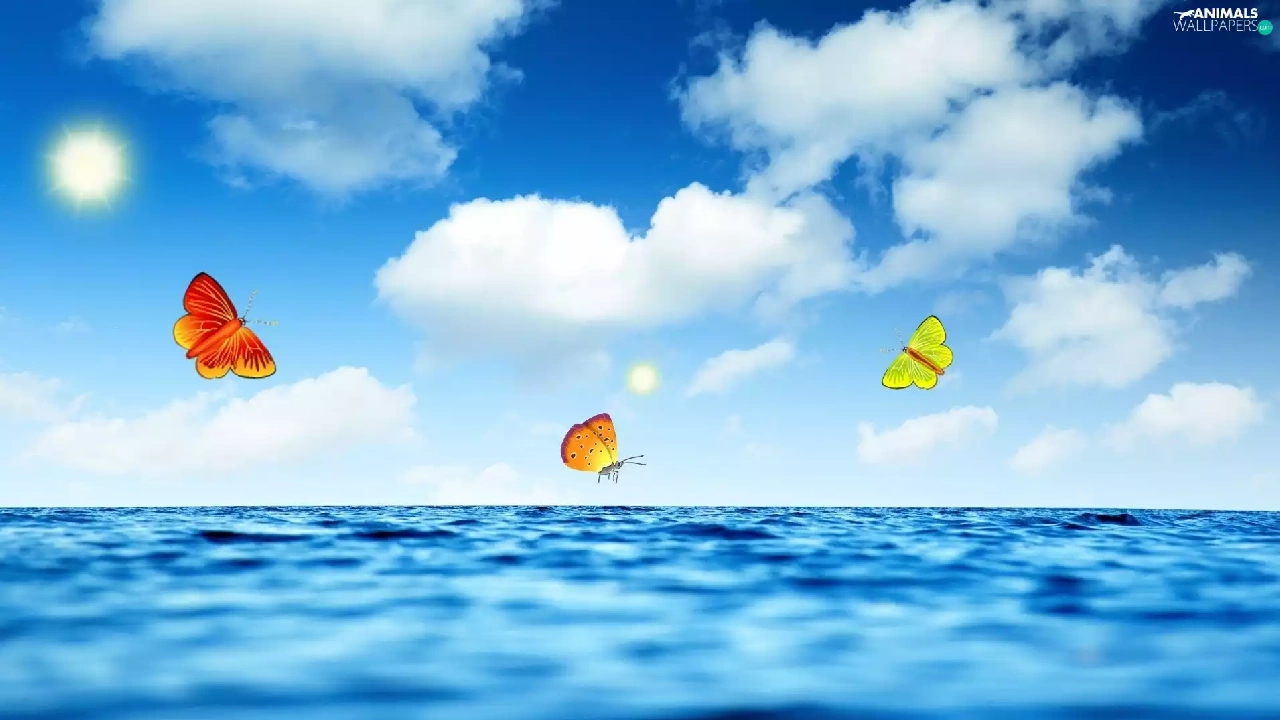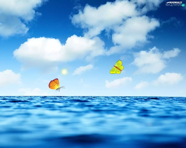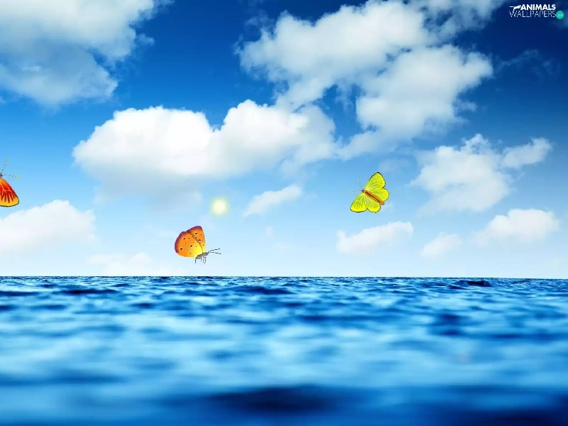 sea, sun, butterfly, clouds