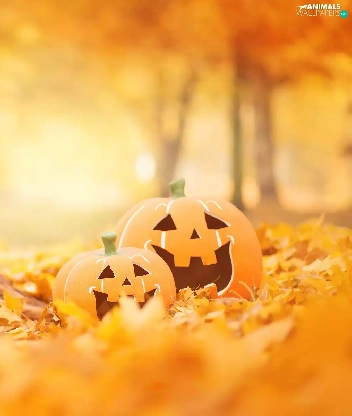 Leaf, pumpkin, English Cocker Spaniel, autumn, dog