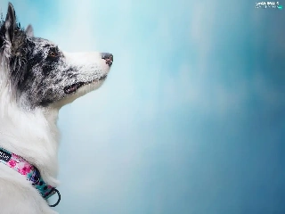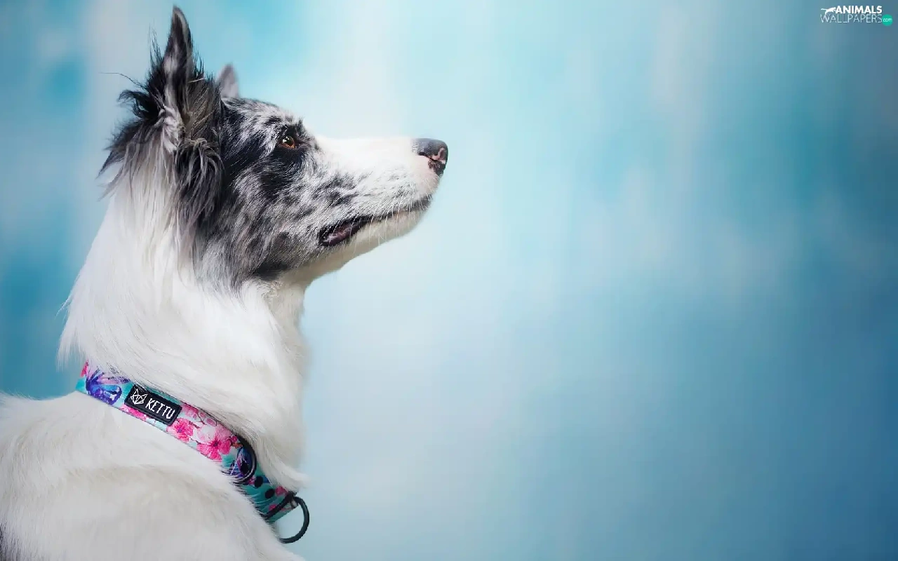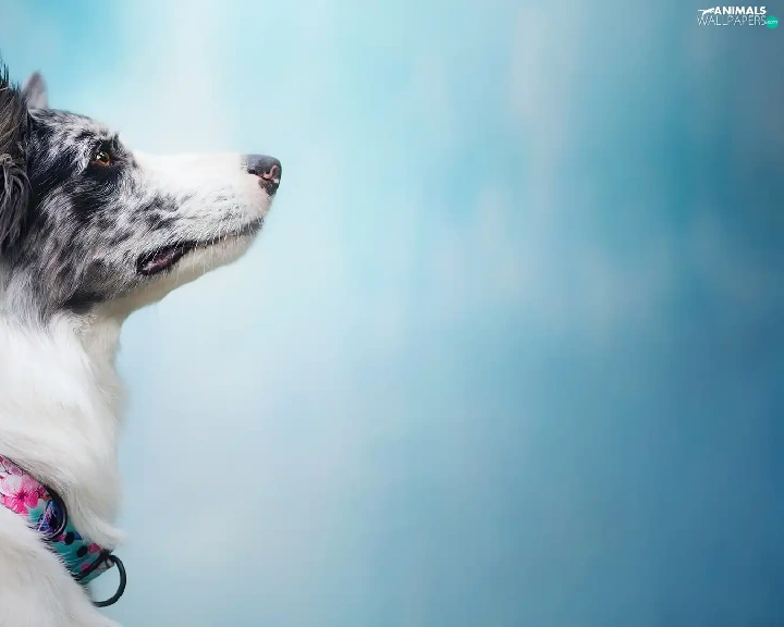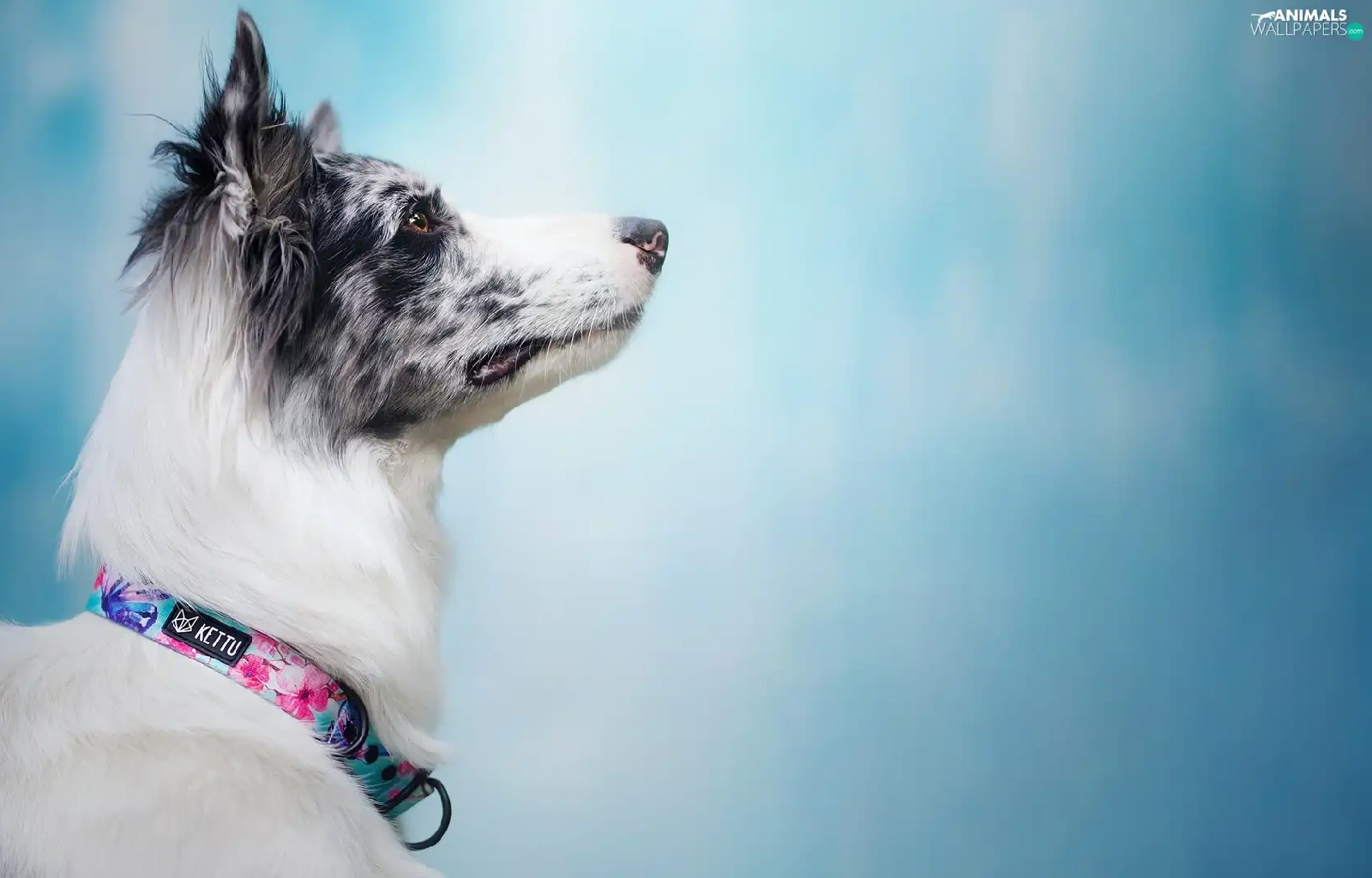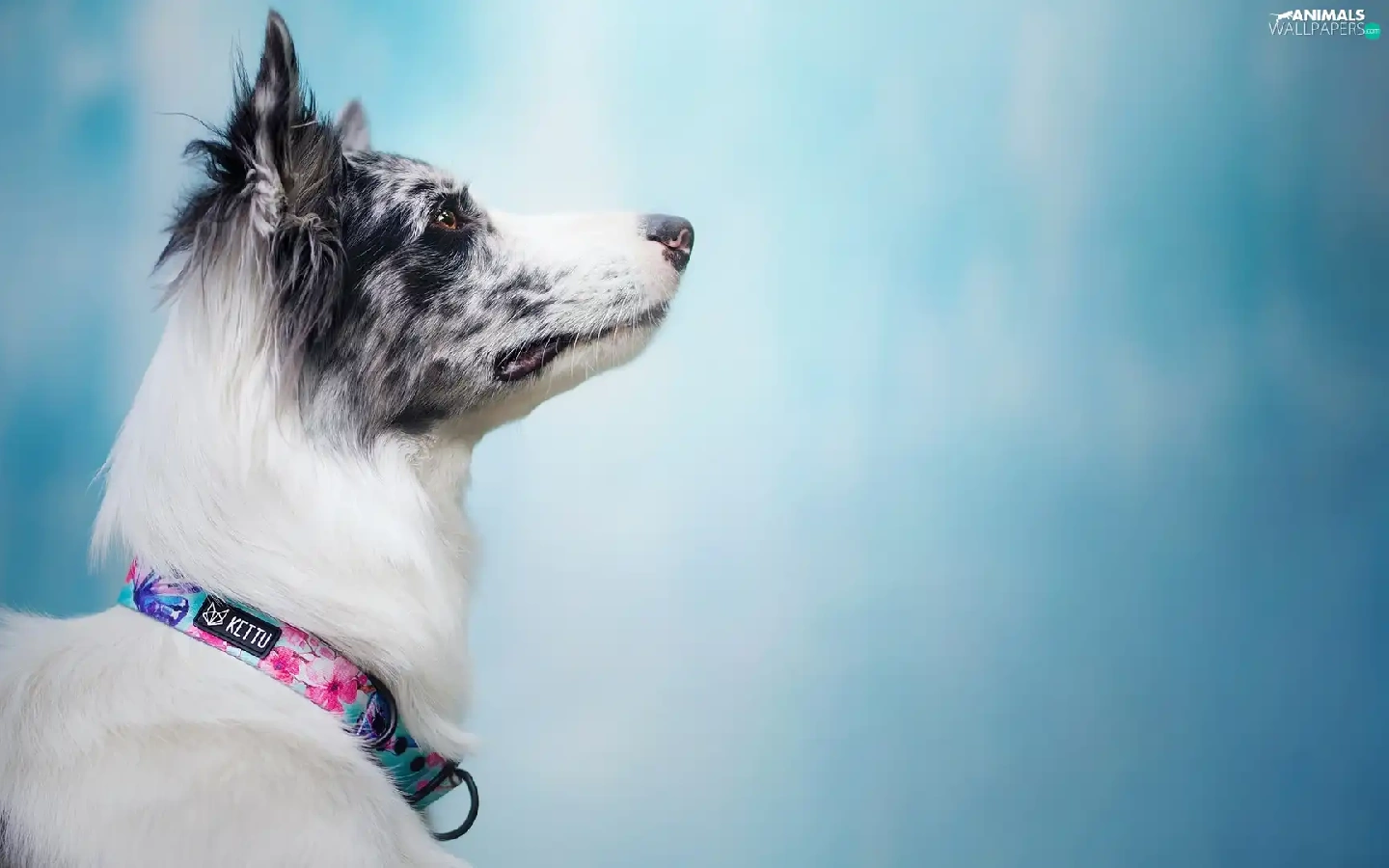muzzle, dog, blue, background, dog-collar, Border Collie