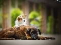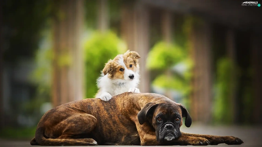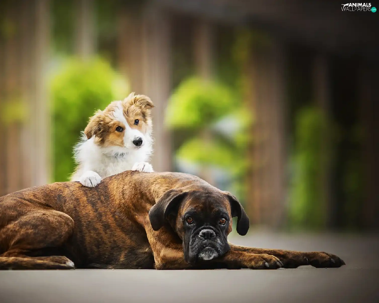 Border Collie, Puppy, Dogs, boxer, Two cars