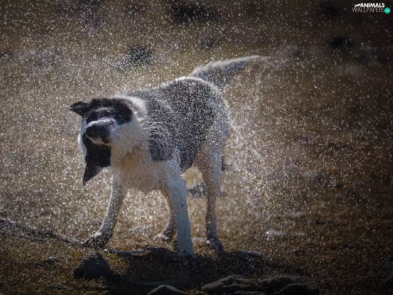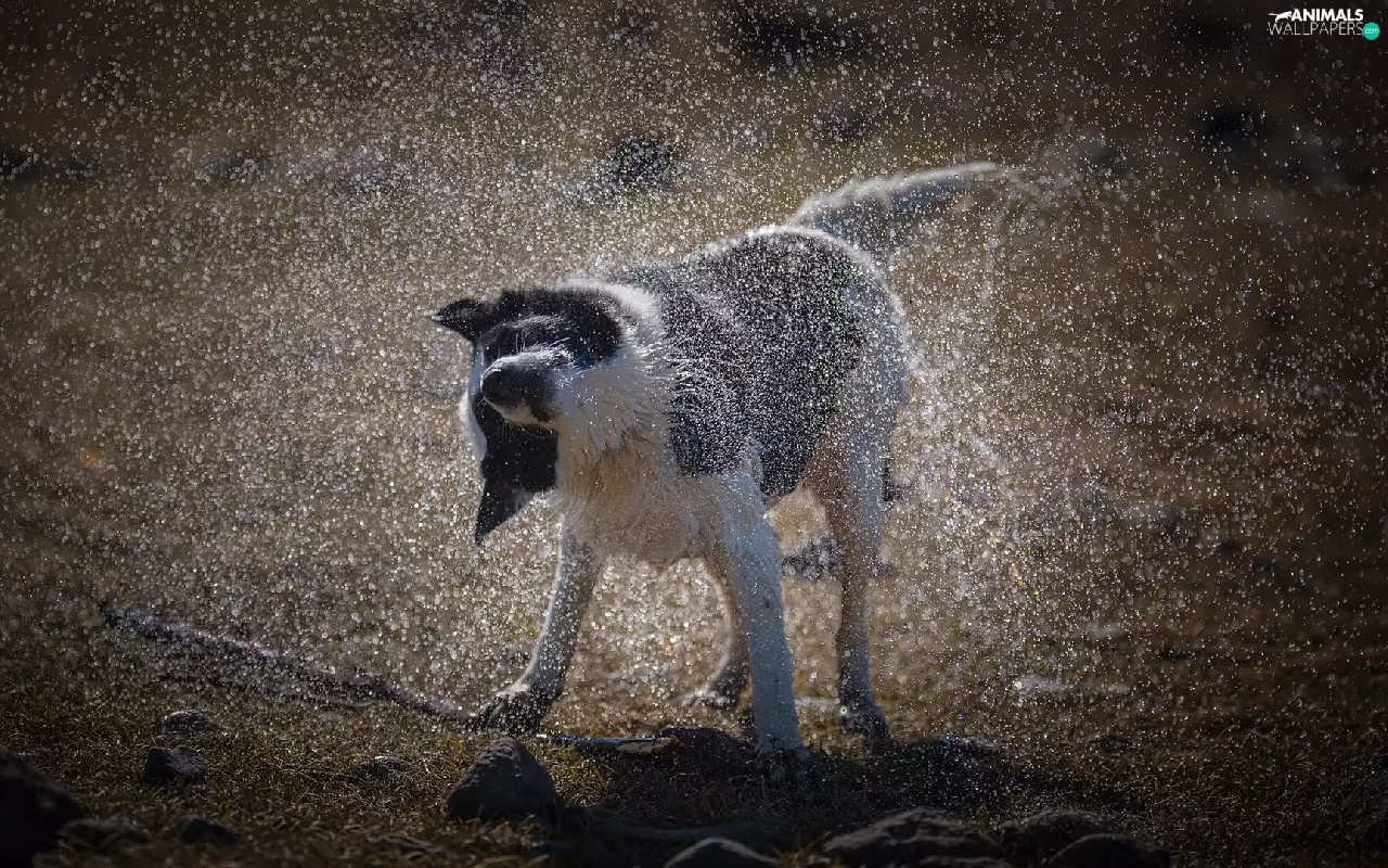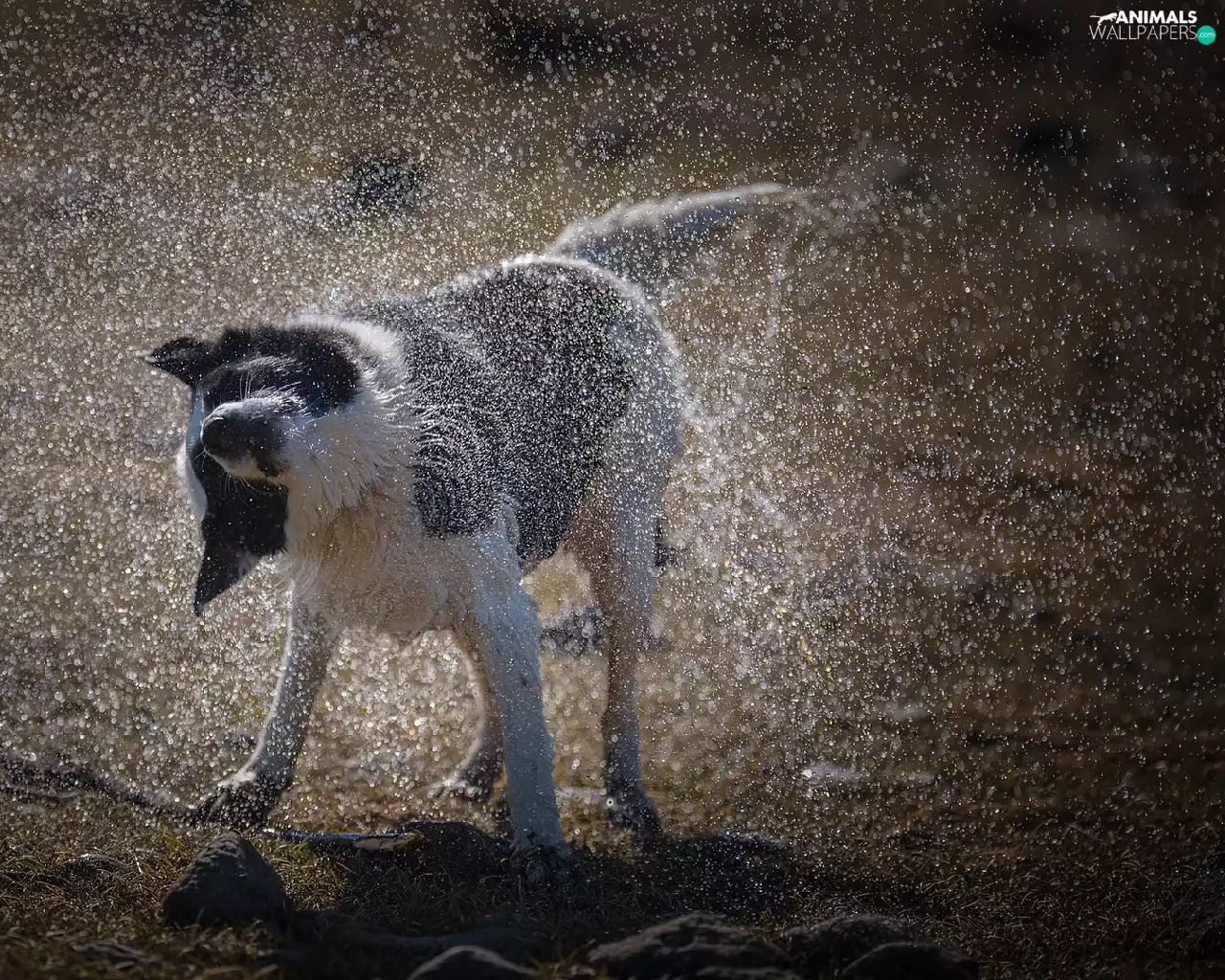 drops, water, Border Collie, spray, dog